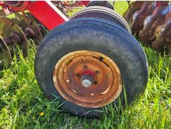 front: 9 inch spacing wavy 21 inch discs, rear: 9 inch spacing wavy 21 inch discs, floating hitch, scrapers, duals main frame, 6.70-15 main frame tires