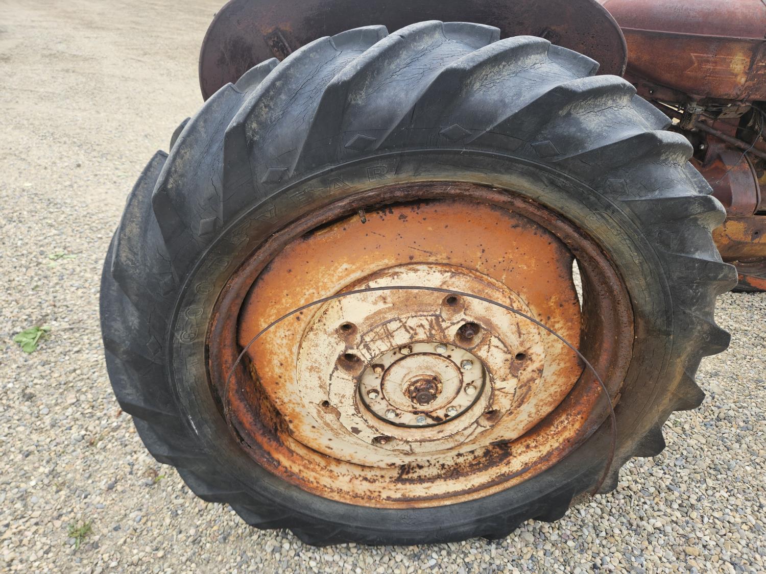 2.5 L 4 cylinder gas engine, 4 speed manual transmission, open station platform, 540 PTO, 6.70-15 front tires, 13.6-38 rear tires