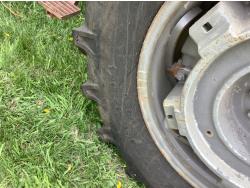 Ezee-On loader, bale forks, Perkins 5.2 4 cylinder diesel engine, 81 PTO HP, 12 speed partial power shift transmission, cab, rear differential lock, joystick, heat, 540 PTO, 3 point hitch, 2 rear hydraulic outlets, 10.00-16 front tires, 18.4X34 rear tires