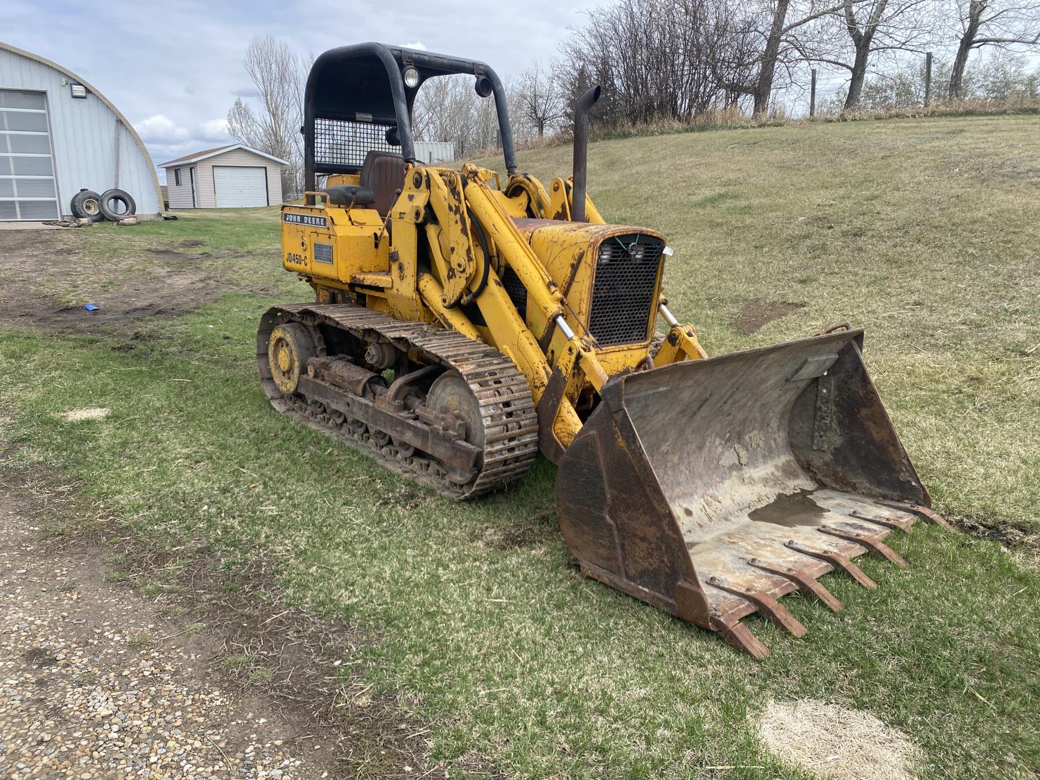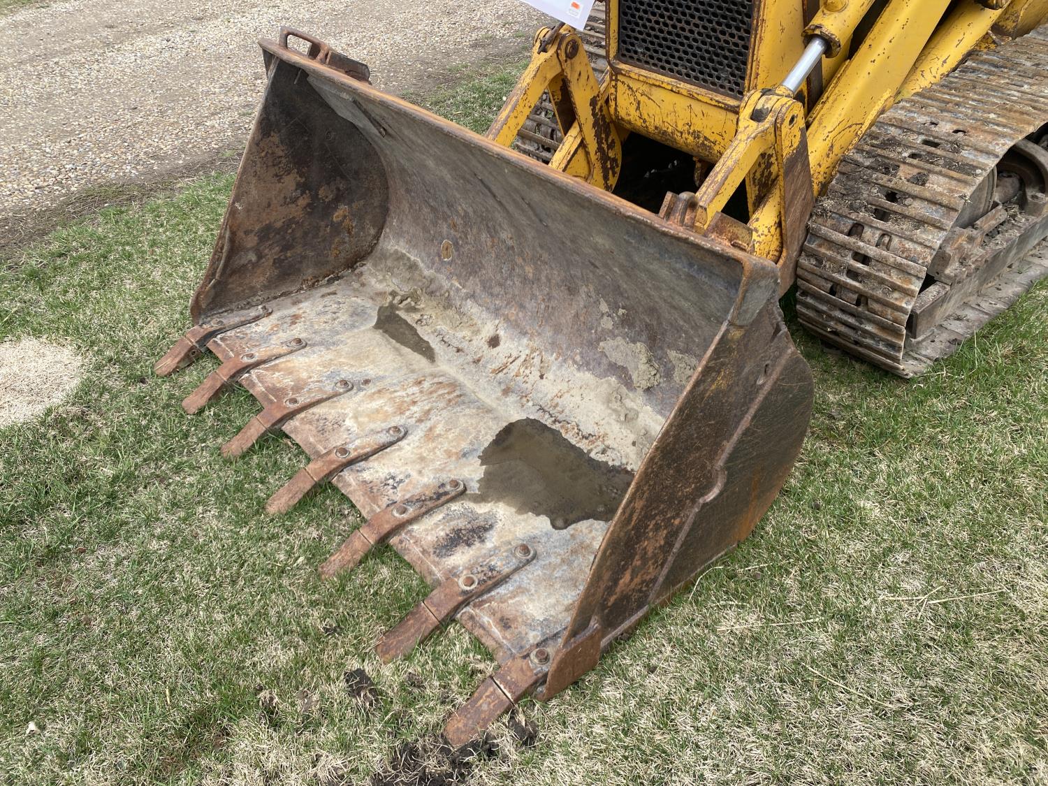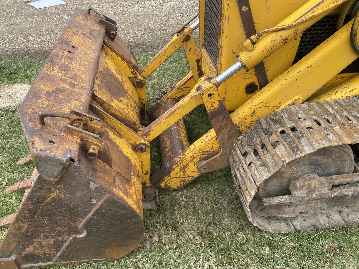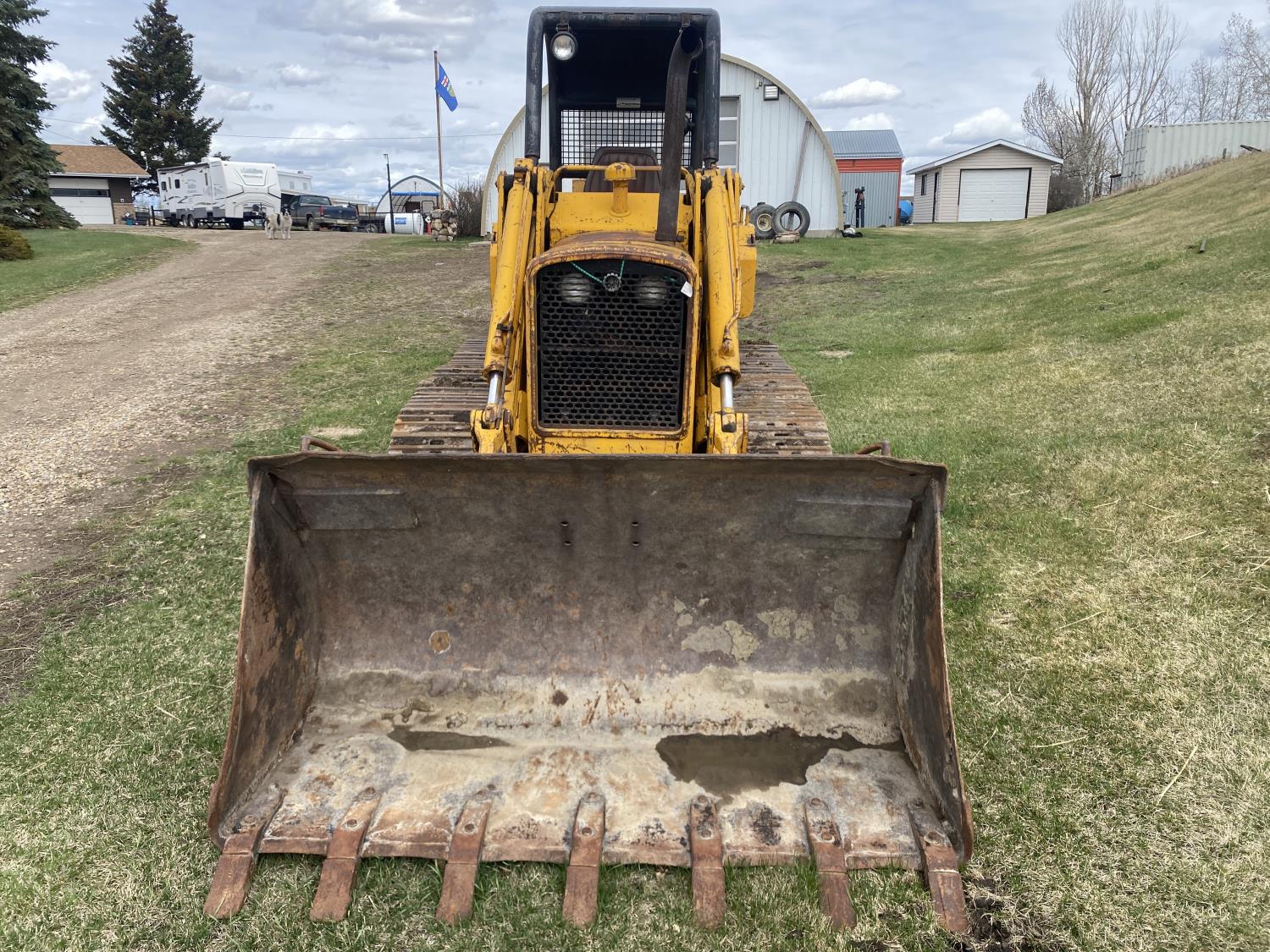 Open station with canopy, diesel engine, electric circulating block heater, 72" bucket, drawbar, 14 inch track pads
