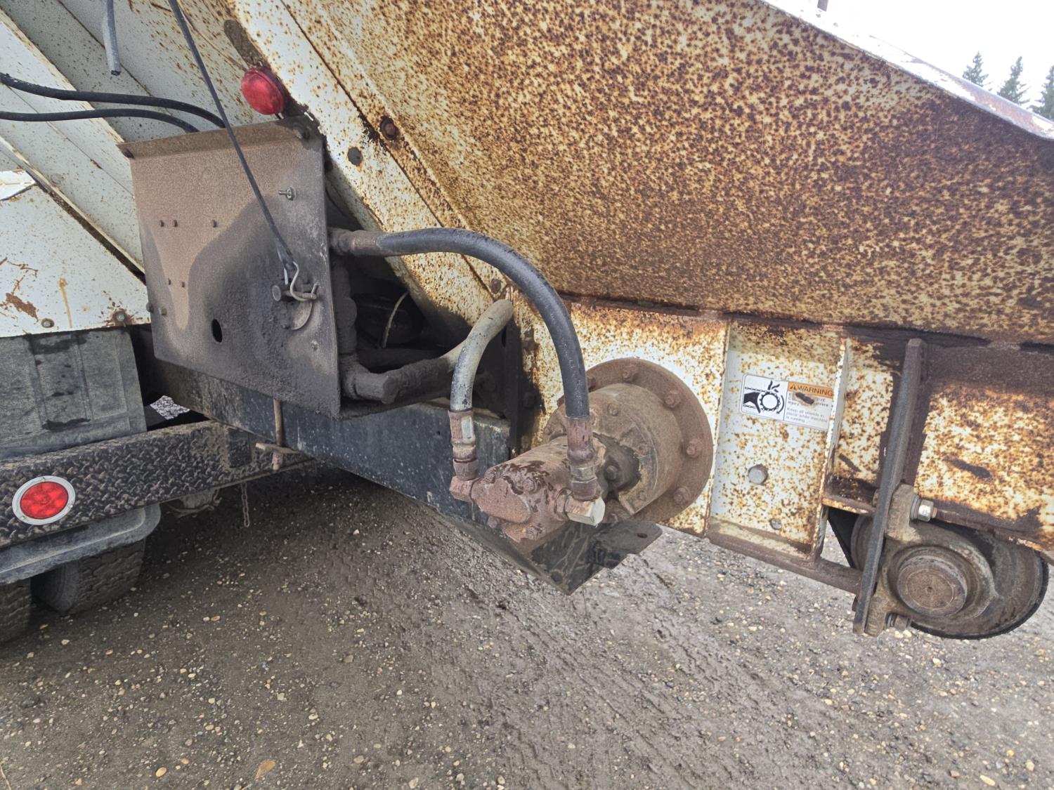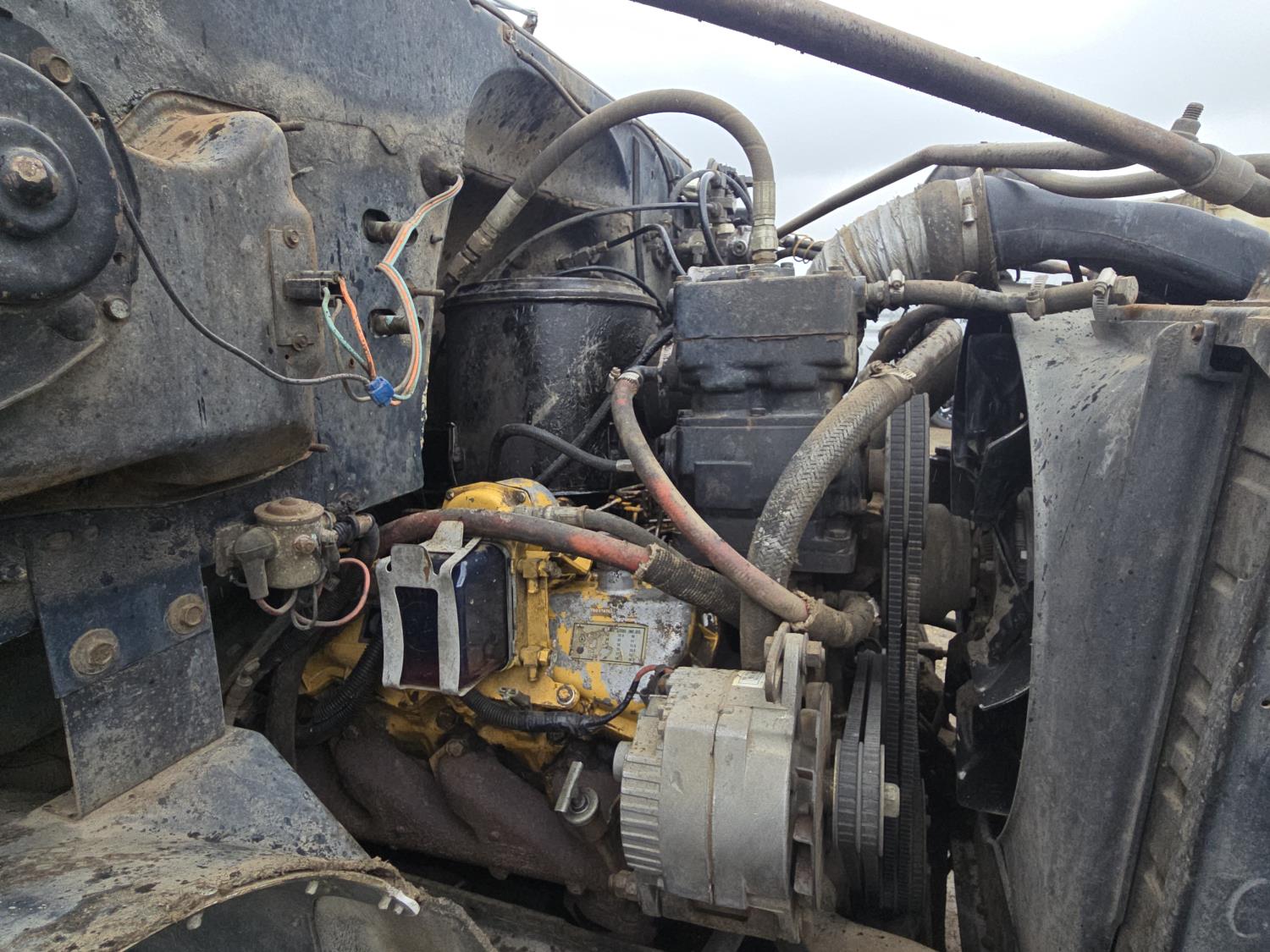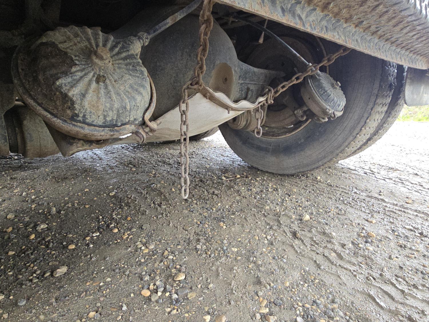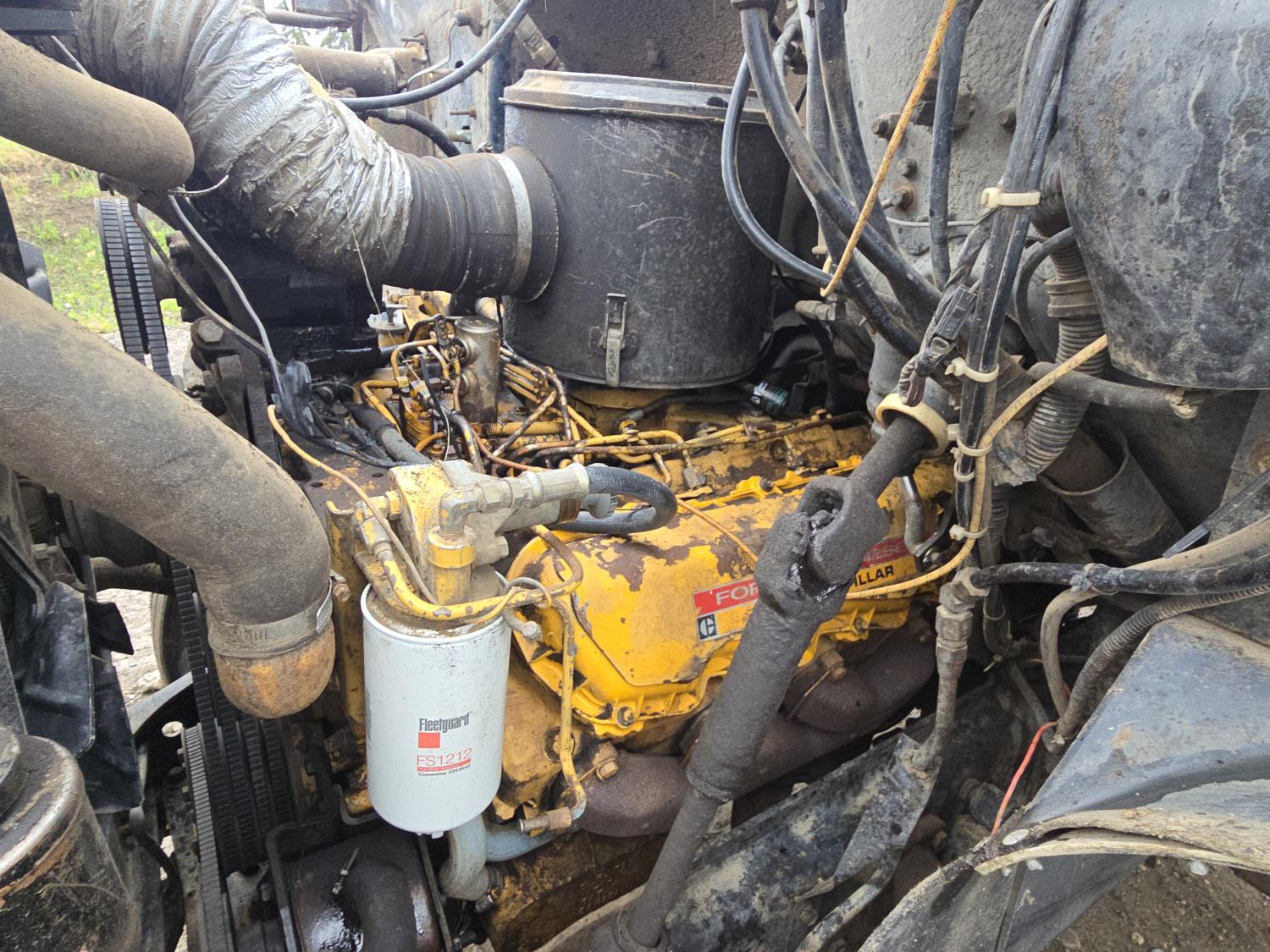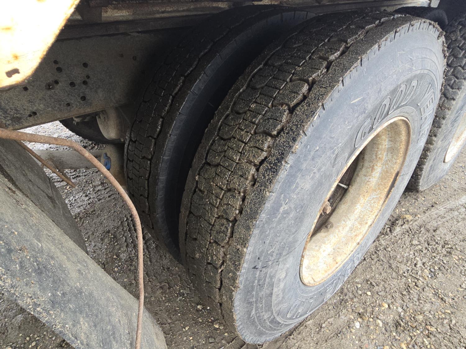Caterpillar 3208 V8 diesel engine, manual transmission, differential lock, PTO, 20 ft potato box, roll tarp, differential lock, 11,000 lb front axle, 34000 lb rears, 11R22.5 tires