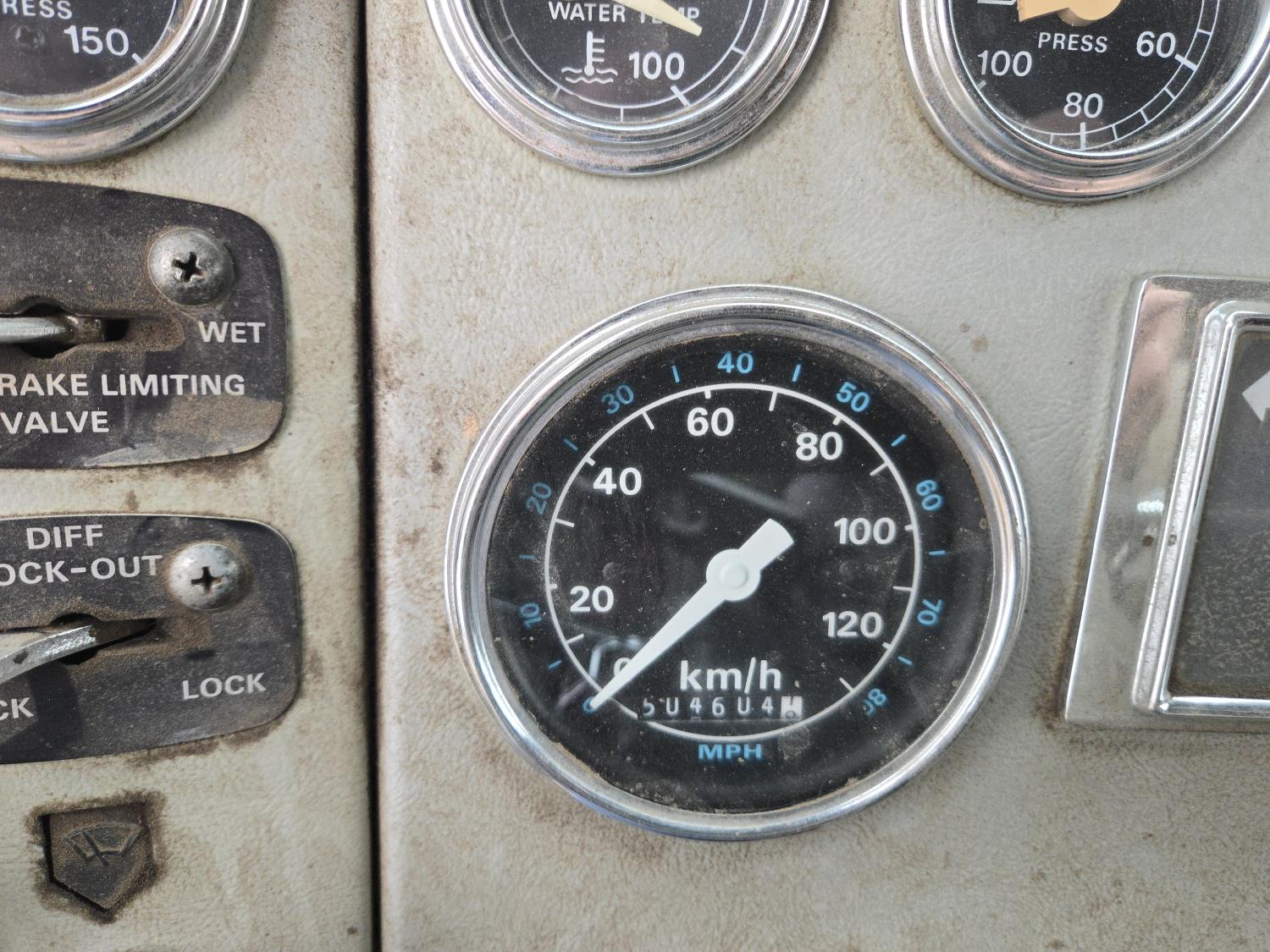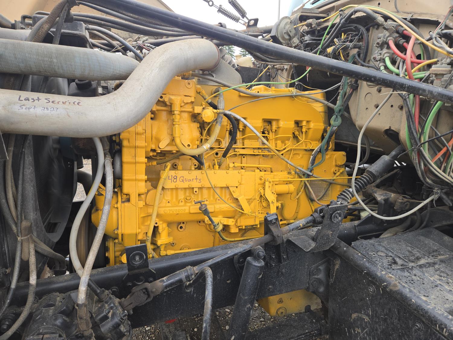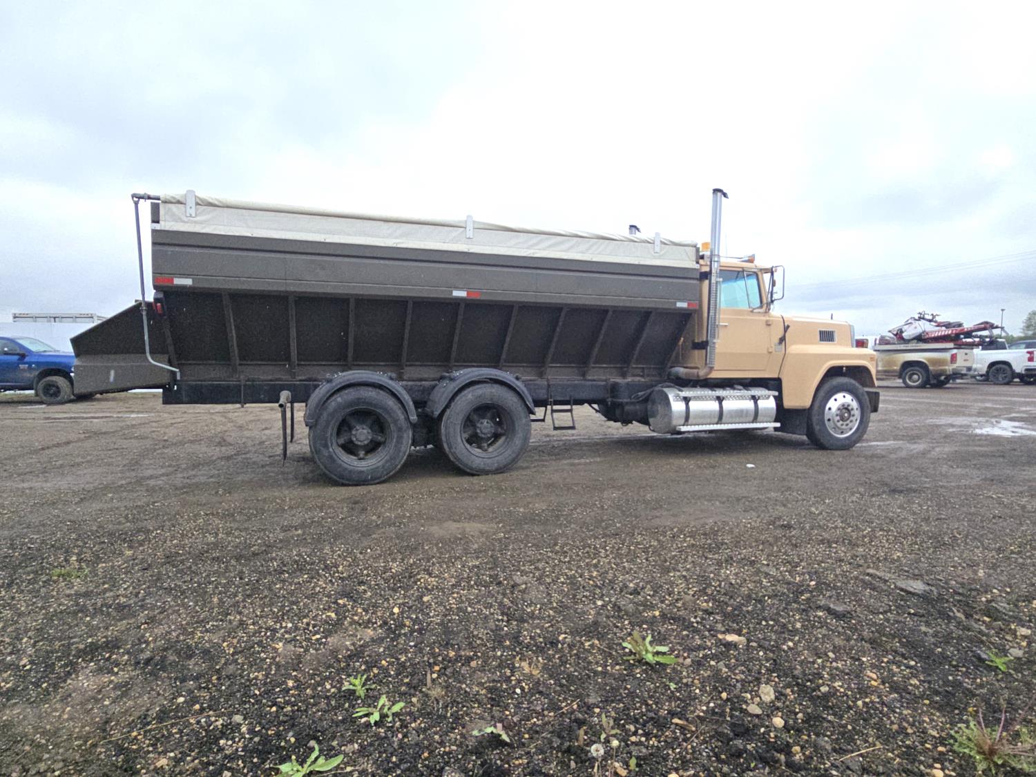 Caterpillar 3046B diesel engine, 8 speed manual transmission, air ride seat, 20 ft potato box, roll tarp, differential lock, 12,000 lb front axle, 44,000 rears, 11R24.5 tires