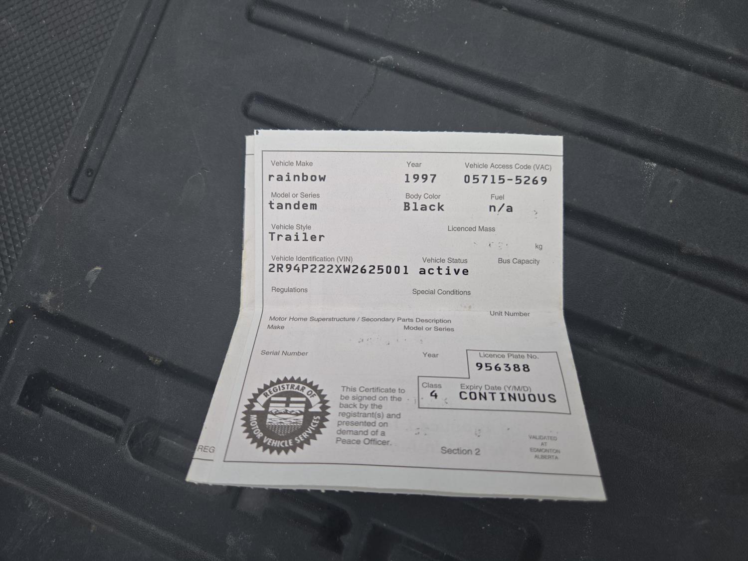 Copy of registration on hand.