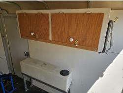 74 inch interior width, 75 inch interior height, ball hitch, side door, barn doors, spring suspension, set up for hauling motorbikes, shelving, pressure washer, tanks, wheel chocks, new tires and rims, 205/75R14 tires
