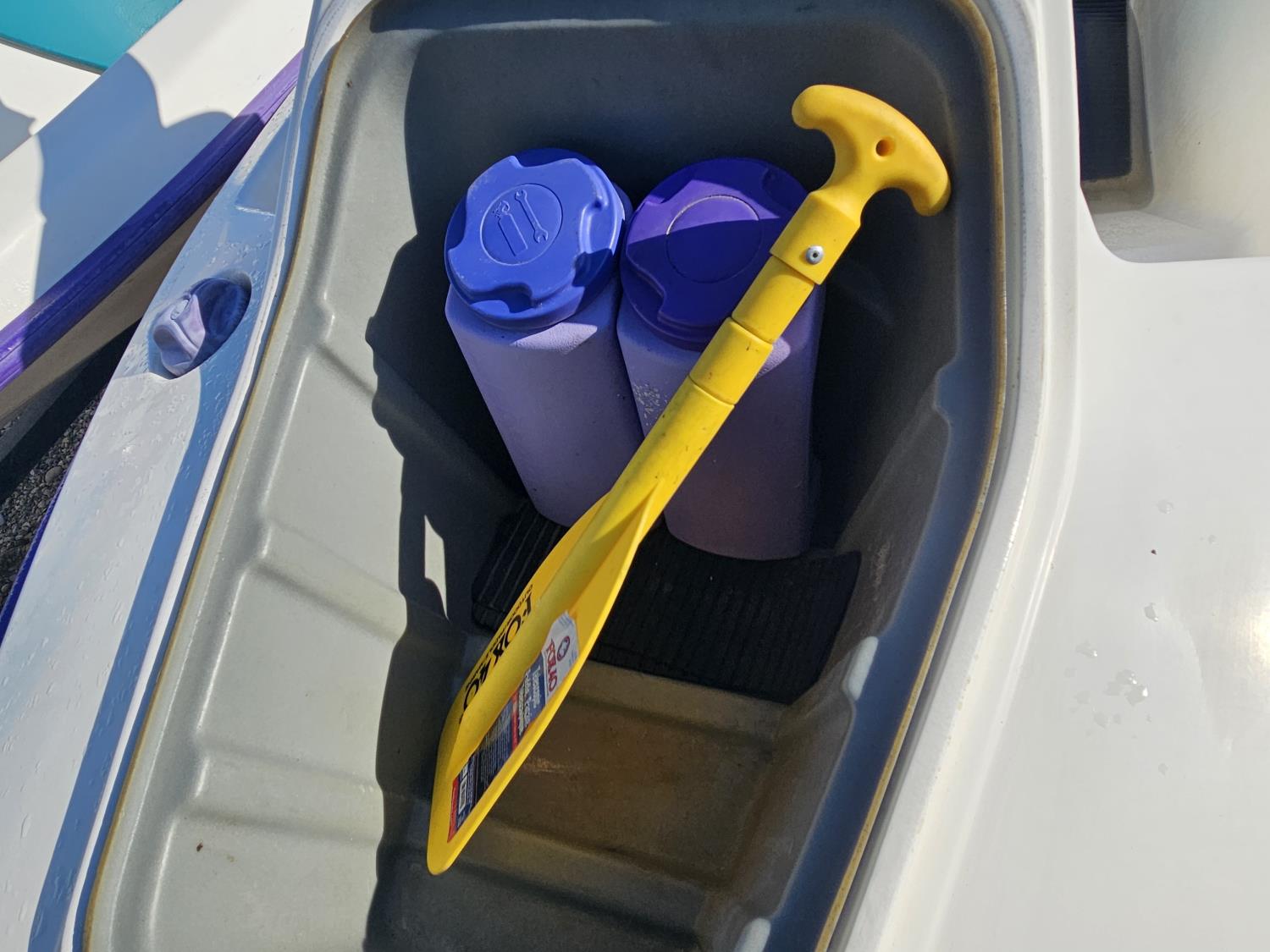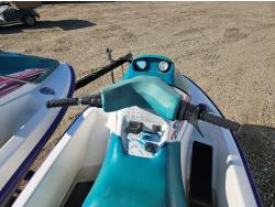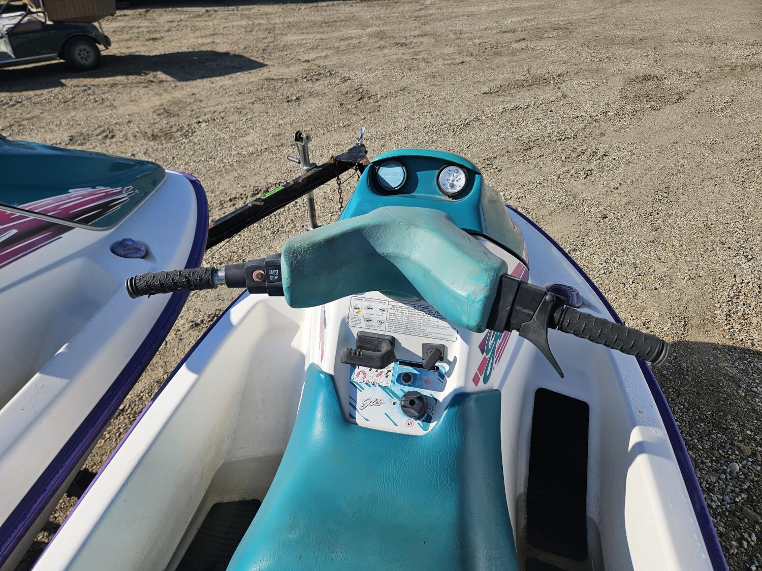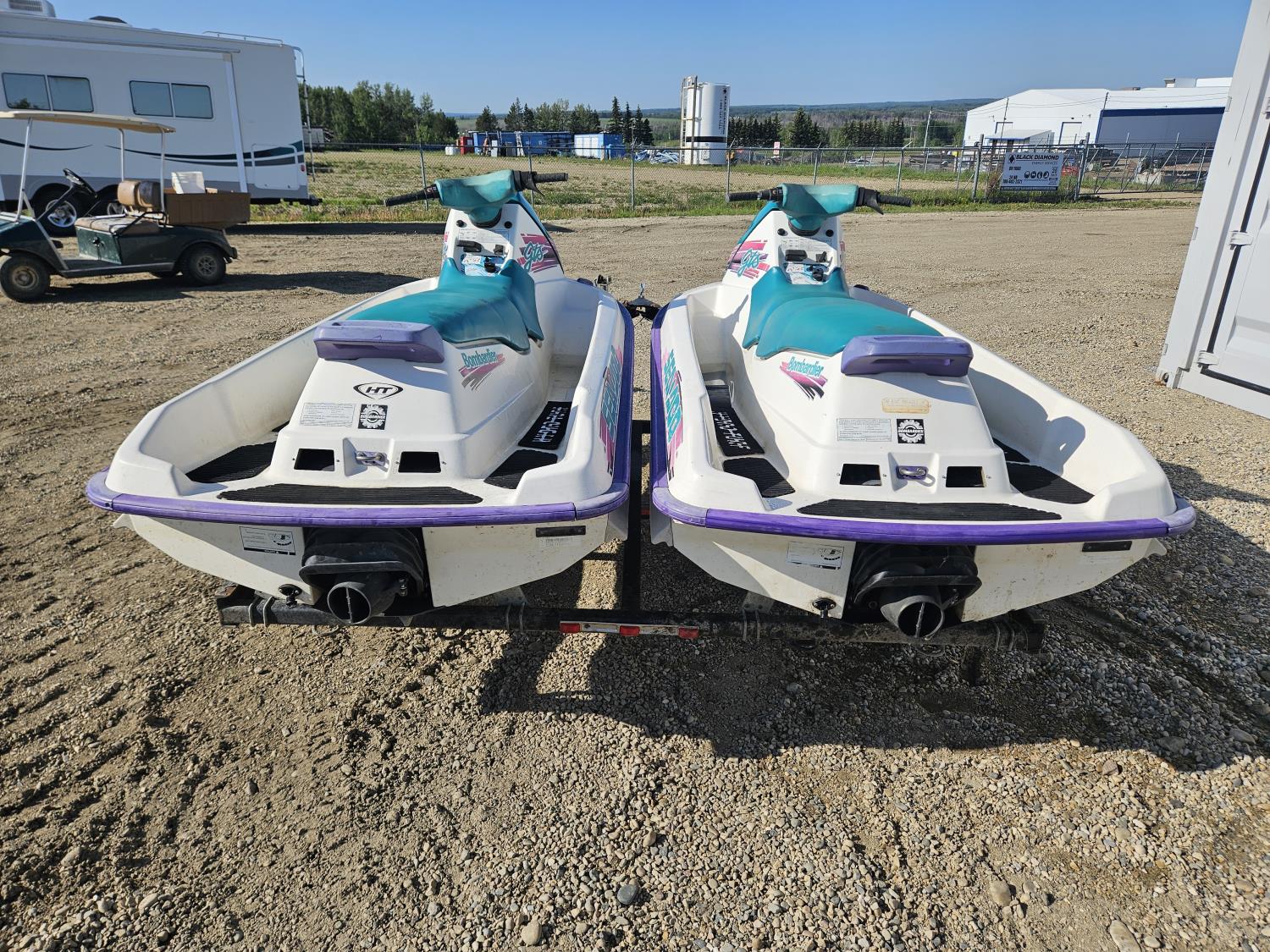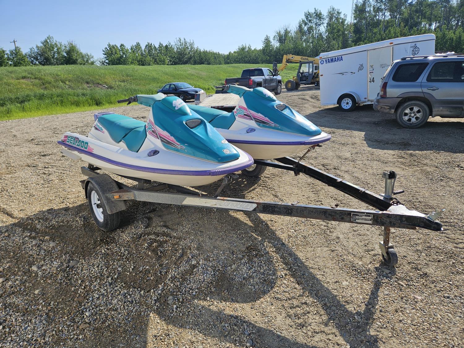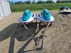 650 cc 2 cylinder 2 stroke gas engines, new batteries, storage compartments, reverse, electric start, owner states both units run well, Long Run 2 place Seadoo trailer, 175/80R13 tires