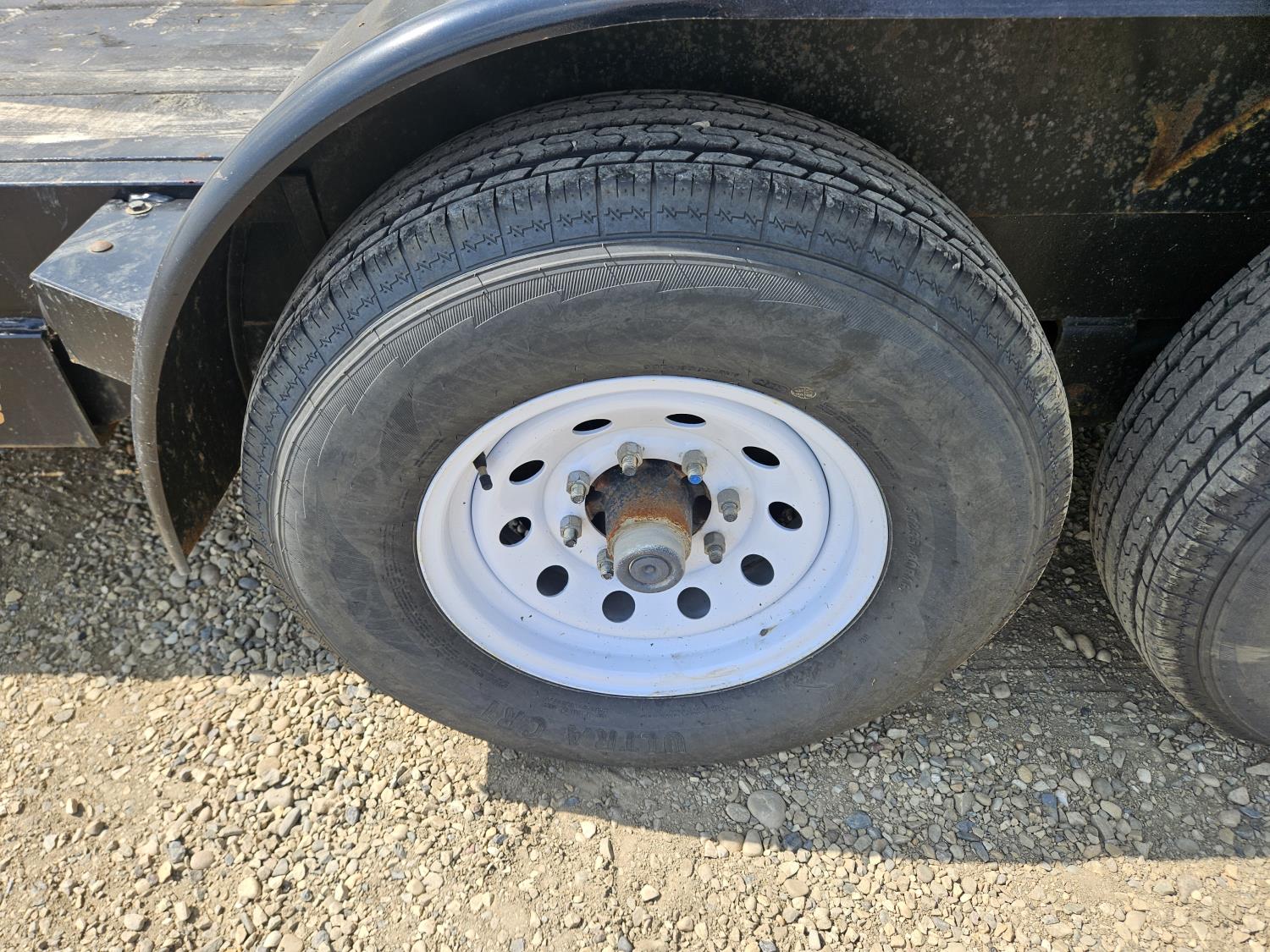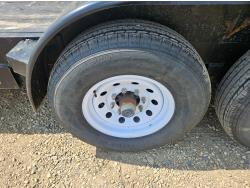 82 inch wide deck, wood deck, slide in ramps, electric brakes, spring suspension, ball hitch, stake pockets, 7000 lb axles, 235/80R16 tires