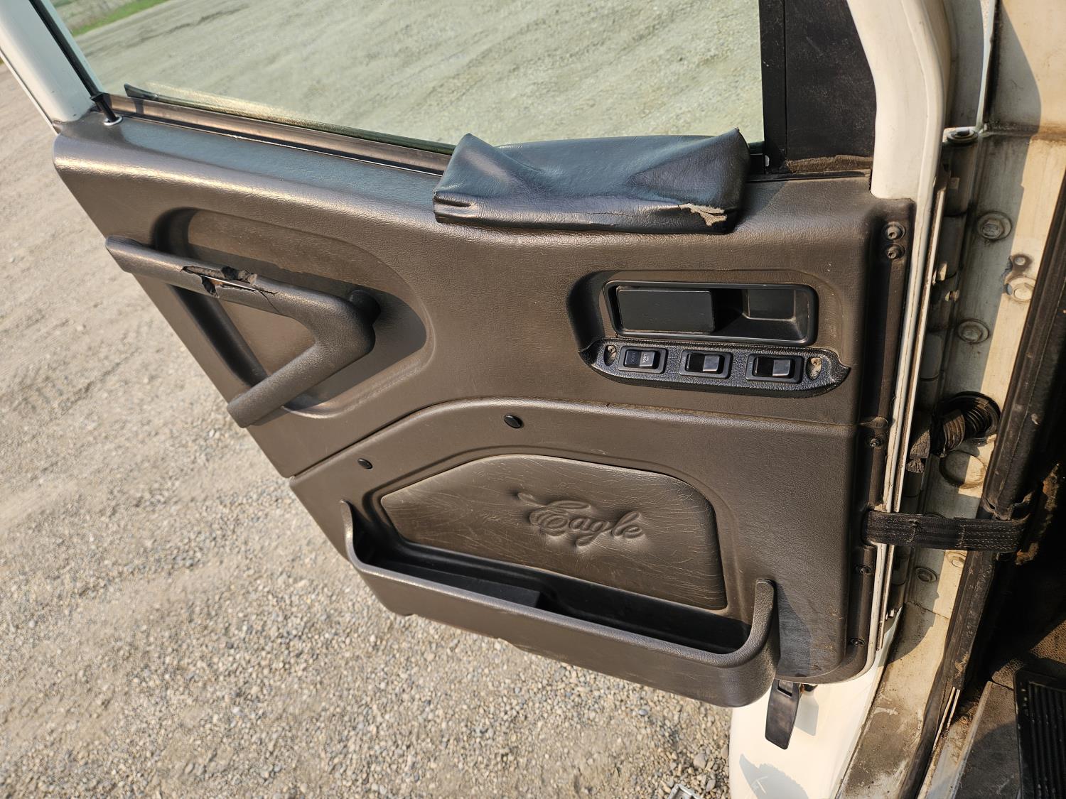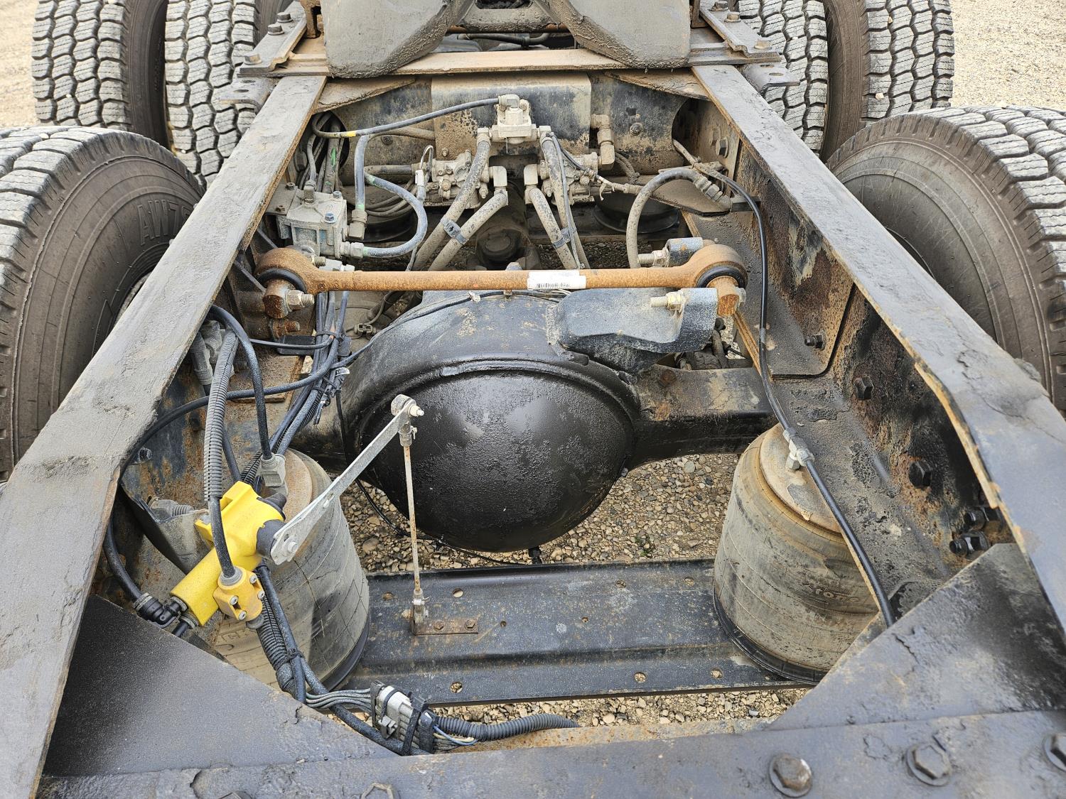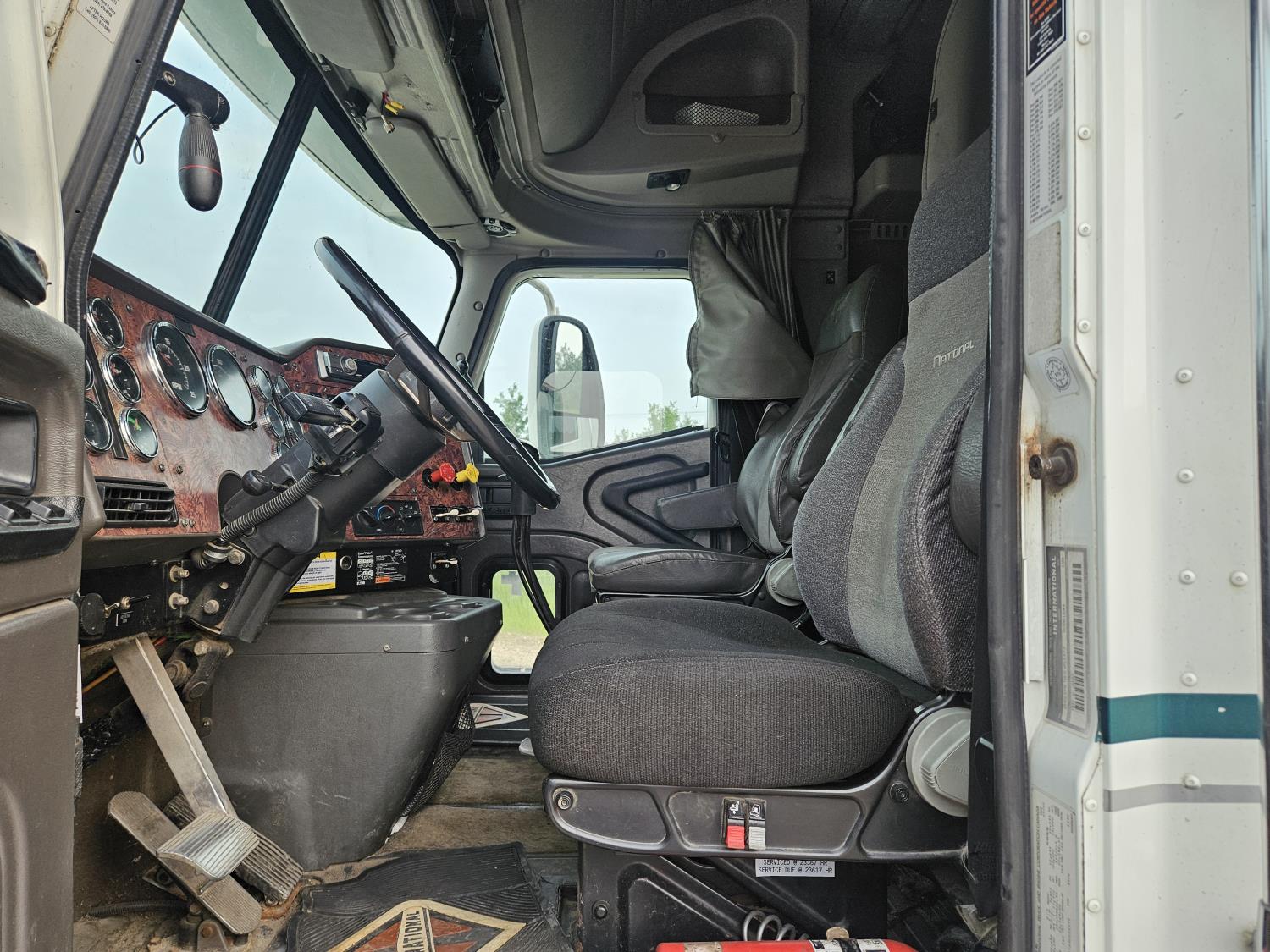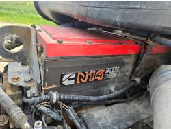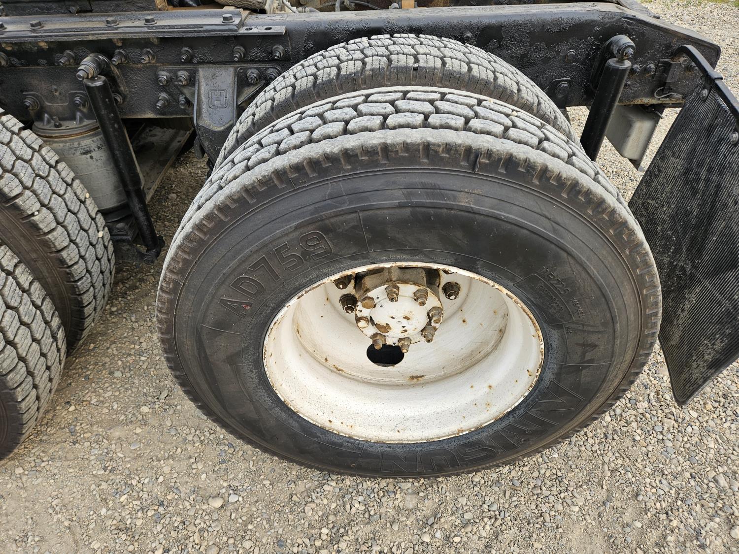 Cummins N14 PLUS 14.0 L 6 cylinder 460 HP diesel engine, engine brake, engine block heater, Eaton Fuller 18 speed manual transmission, mid rise sleeper, A/C, cruise control, leather interior, air ride driver seat, radio, air ride suspension, 12,350 lb front axle, 46,000 lb rear axles, diff lock, 199 inch WB, 11R22.5 front tires, 11R22.5 rear tires