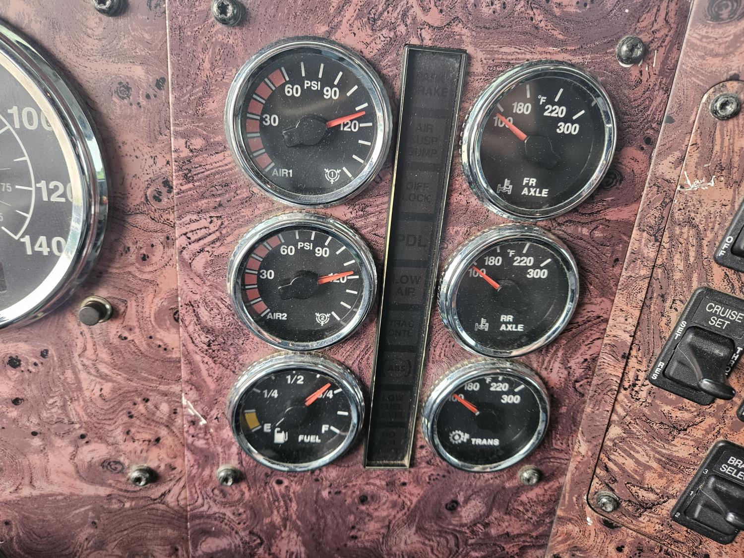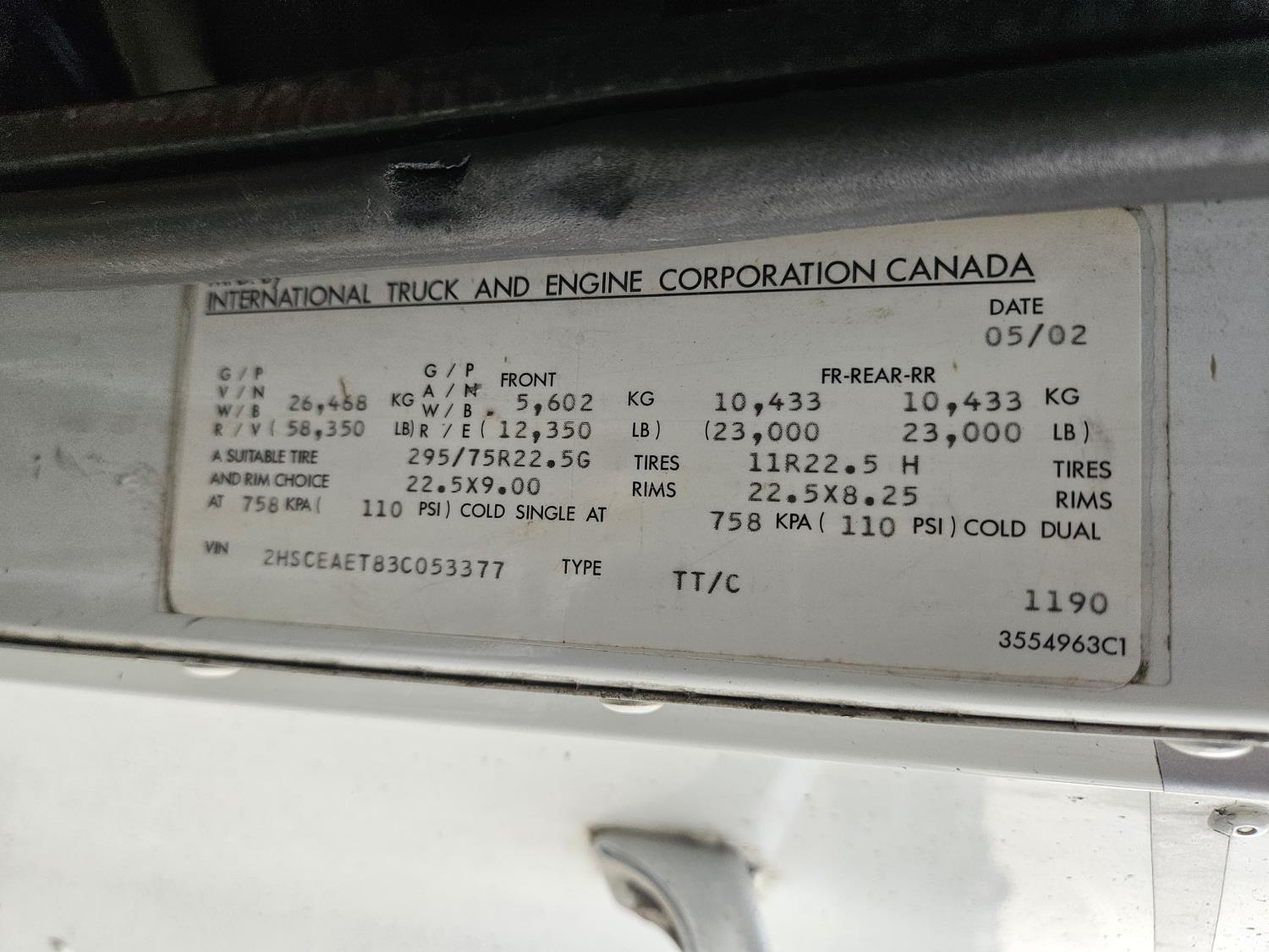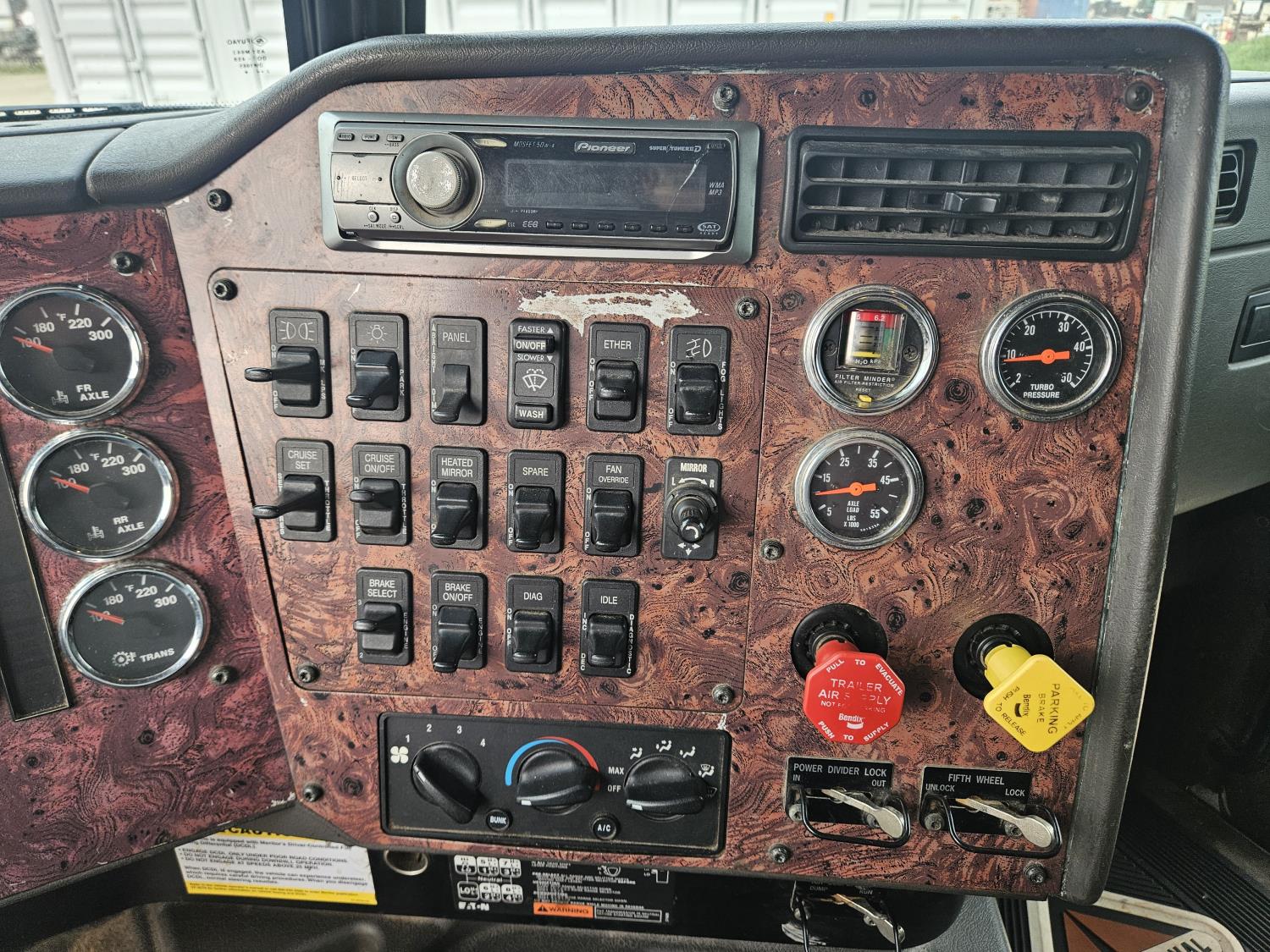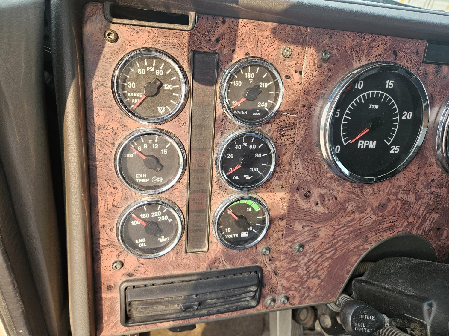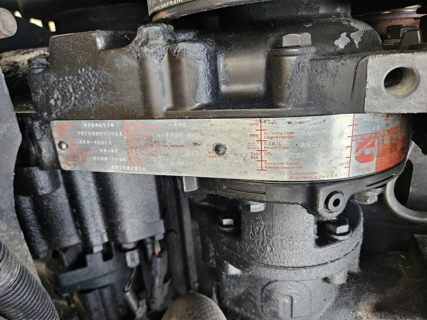 Cummins N14 PLUS 14.0 L 6 cylinder 460 HP diesel engine, engine brake, engine block heater, Eaton Fuller 18 speed manual transmission, mid rise sleeper, A/C, cruise control, leather interior, air ride driver seat, radio, air ride suspension, 12,350 lb front axle, 46,000 lb rear axles, diff lock, 199 inch WB, 11R22.5 front tires, 11R22.5 rear tires