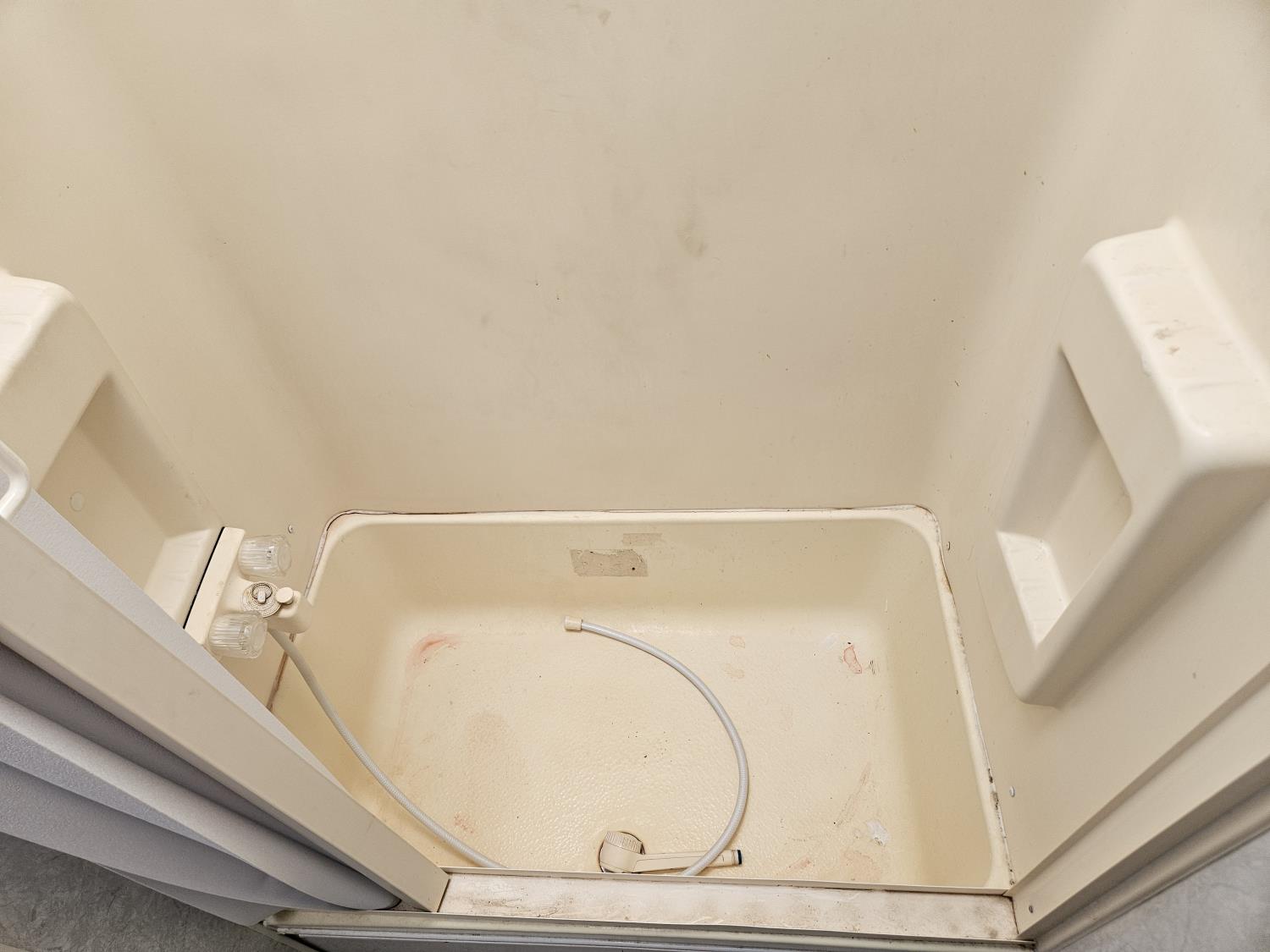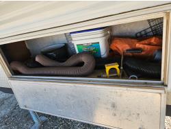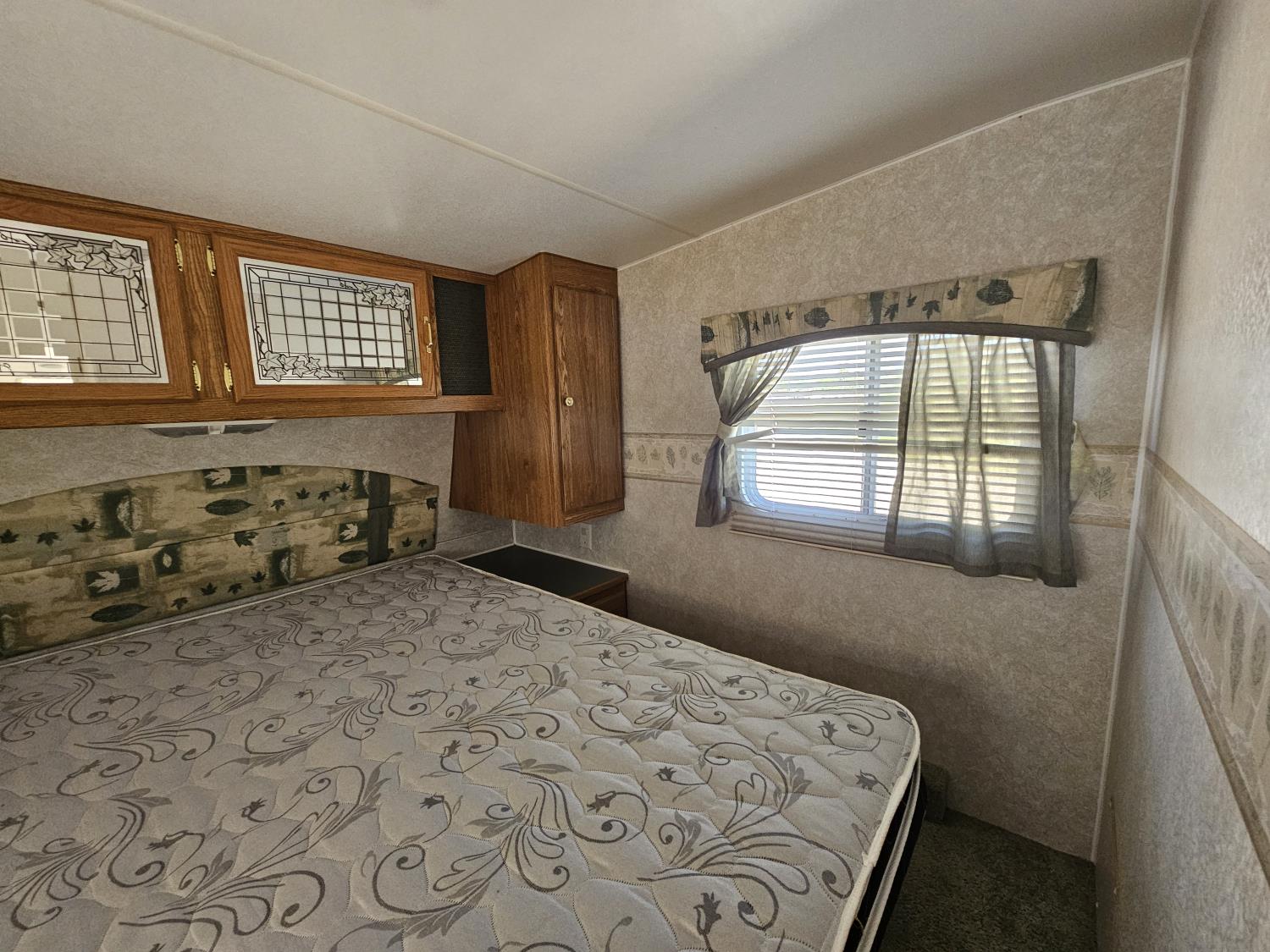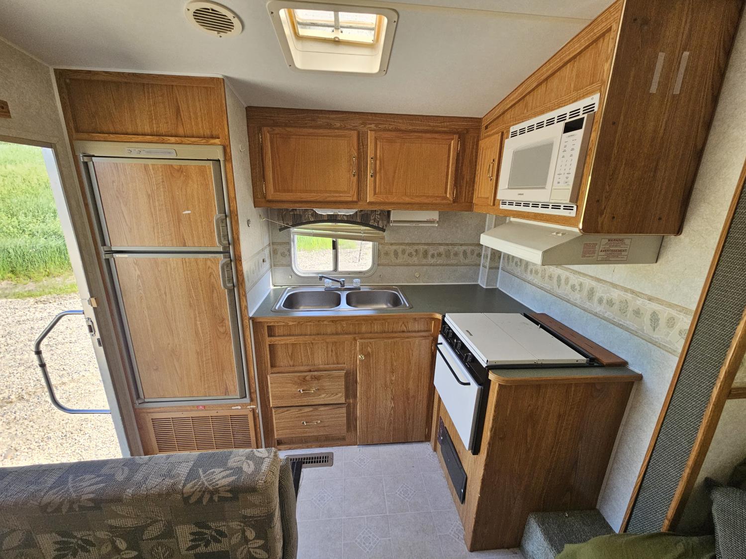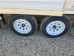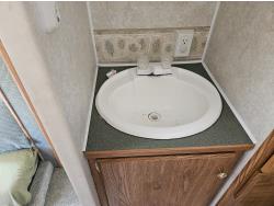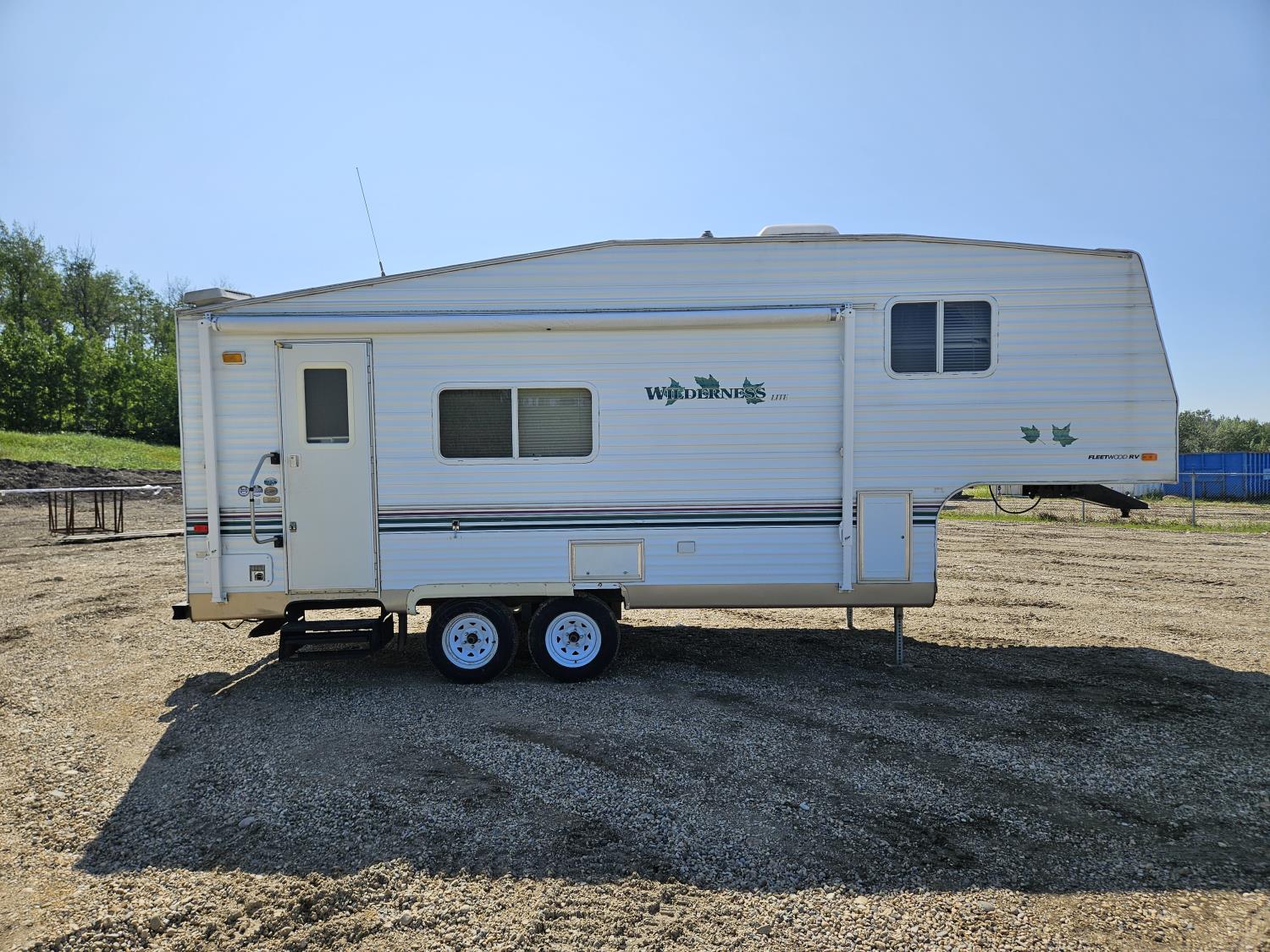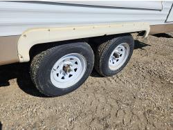 Sleeps 6, stove, fridge, microwave, full bath, outdoor shower, 1 slide, manual awning, spring suspension, storage compartments, propane tanks, new water pump, 4 new rims and tires, owner states half ton towable, 205/75R15 tires