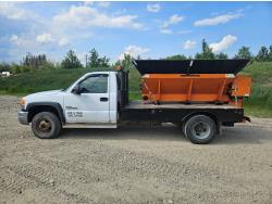 6.6 L, V8, diesel, automatic transmission, P/W, P/L, A/C, 119 inch long deck, 84 in wide deck, steel headache rack, Munro sanding spreader unit, Briggs and Stratton gas engine w/ electric start, beacon, 215/85R16 tires