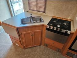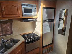 Sleeps 8, stove, fridge, microwave, full bath, master bedroom, bunk beds, A/C, 1 slide, manual awning, spring suspension, electric brakes, stereo, storage cabinets, sky lights, rear floor and back has water damage, 235/80R16 tires