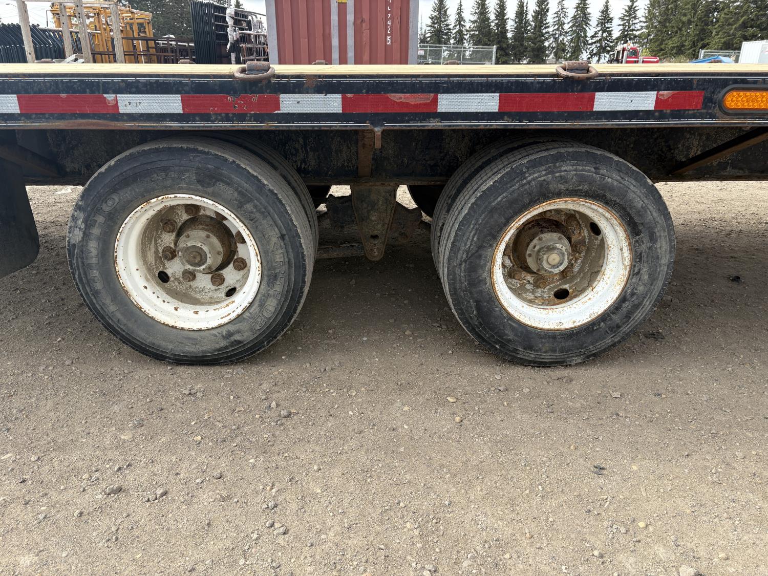 101 inch wide deck, 110 inch upper deck, wood deck, stake pockets, air brakes, new wood decking, 235/75R17.5 tires