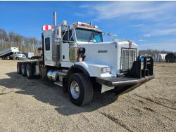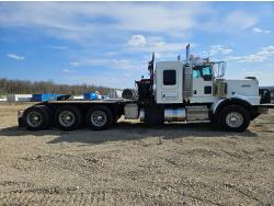 Caterpillar C15 15.2 L 6 cylinder engine, engine brake, positive air shutoff, Eaton Fuller 18 speed manual transmission, flat top sleeper, air ride driver seat, radio, CB radio, steel moose bumper, aluminum tool boxes, chain holders, hydraulic winch, air ride suspension, 18,000 lb front axle, 58,000 lb rear axles, full lockers, 4.33 ratio, all aluminum wheels, 425/65R22.5 front tires, 11R22.5 rear tires