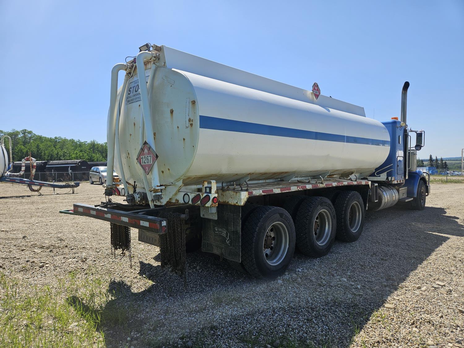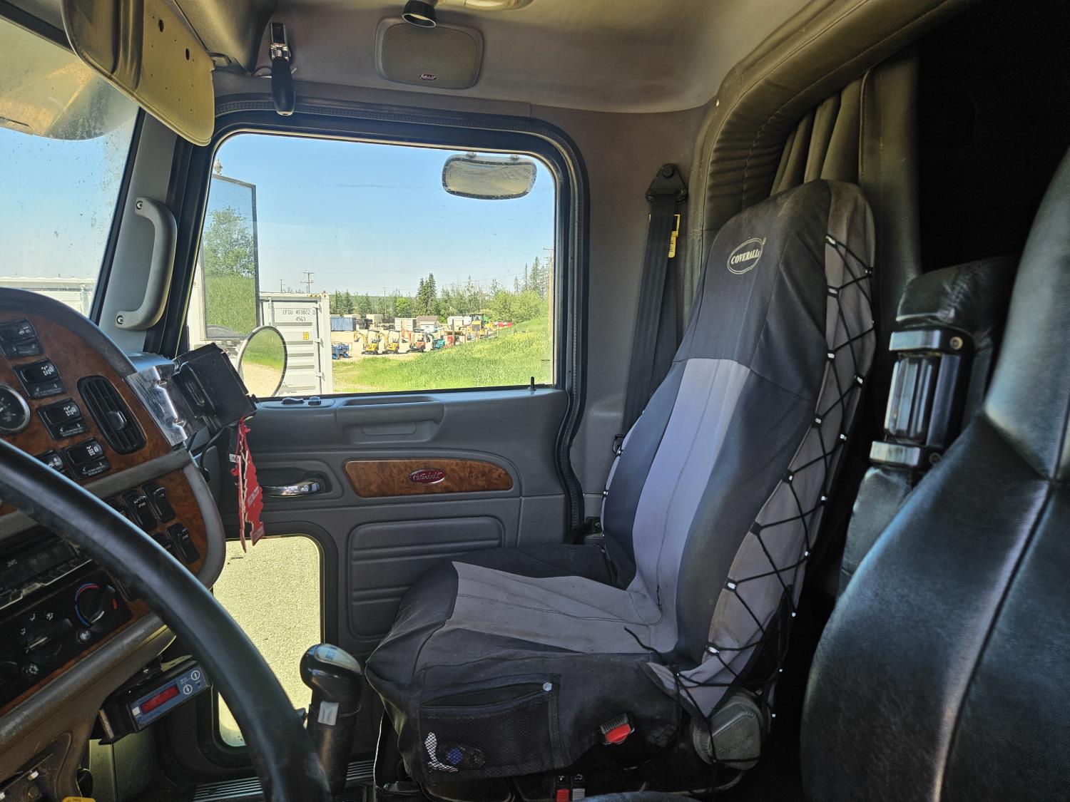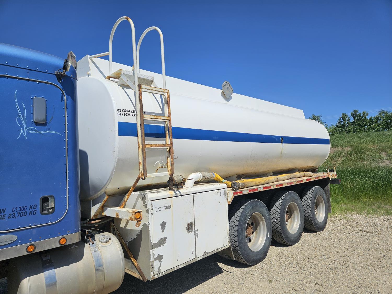 Caterpillar 625 15.2 L 6 cylinder 550 HP diesel engine, engine brake, Eaton Fuller 18 speed manual transmission, flat top 36 inch sleeper, A/C, cruise control, leather interior, radio, CB radio, hydraulic wet kit, aluminum moose bumper, steel tool boxes, hoist, air ride cab, chain holders, hydraulic pump, Wabash 22830 liter 1 compartment tc 406 ms tank, oil cooler, air ride suspension, 20,000 lb front axle, 57,900 lb rear axles, full lockers, all aluminum wheels, 385/65R22.5 front tires, 11R24.5 rear tires
