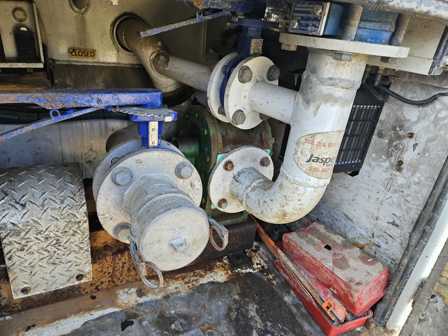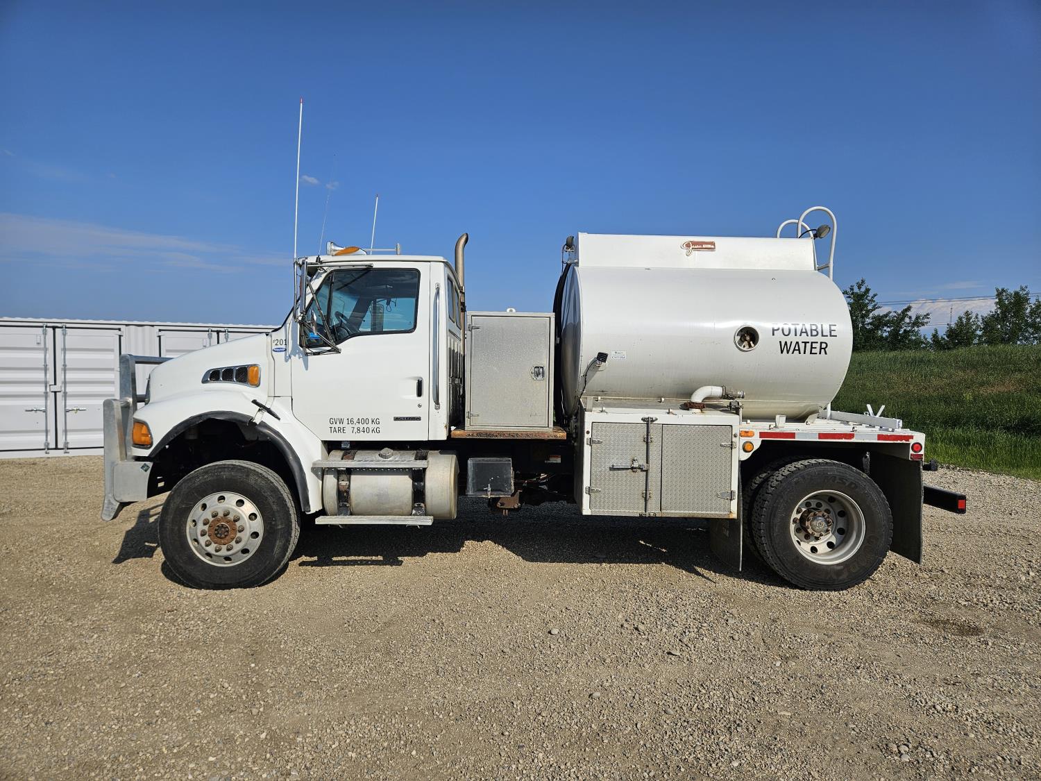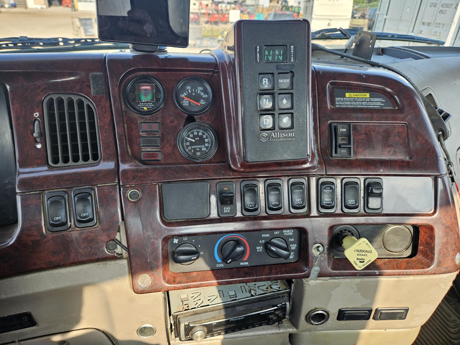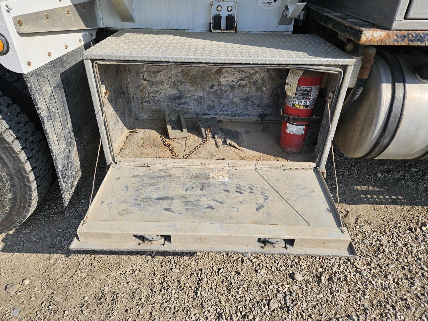 Cummins ISC 8.3 L 6 cylinder 215 HP diesel engine, engine brake, engine block heater, positive air shutoff, Allison automatic transmission, A/C, air ride driver seat, stereo, hydraulic wet kit, aluminum moose bumper, aluminum tool boxes, air ride cab, hydraulic pump, Jasper tank, air ride suspension, 12,000 lb front axle, 21,000 lb rear axles, diff lock, all aluminum wheels, 11R22.5 tires