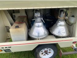 Kubota D1105 tier 4 engine, additional dual fuel filters, remote mount, Stanford 8Kva 240V 1 phase continuous generator, Murphy gauge shutdown panel, enviro spill containment, pintle hitch, winch up mast with 4 lights, ST175/80R13 tires