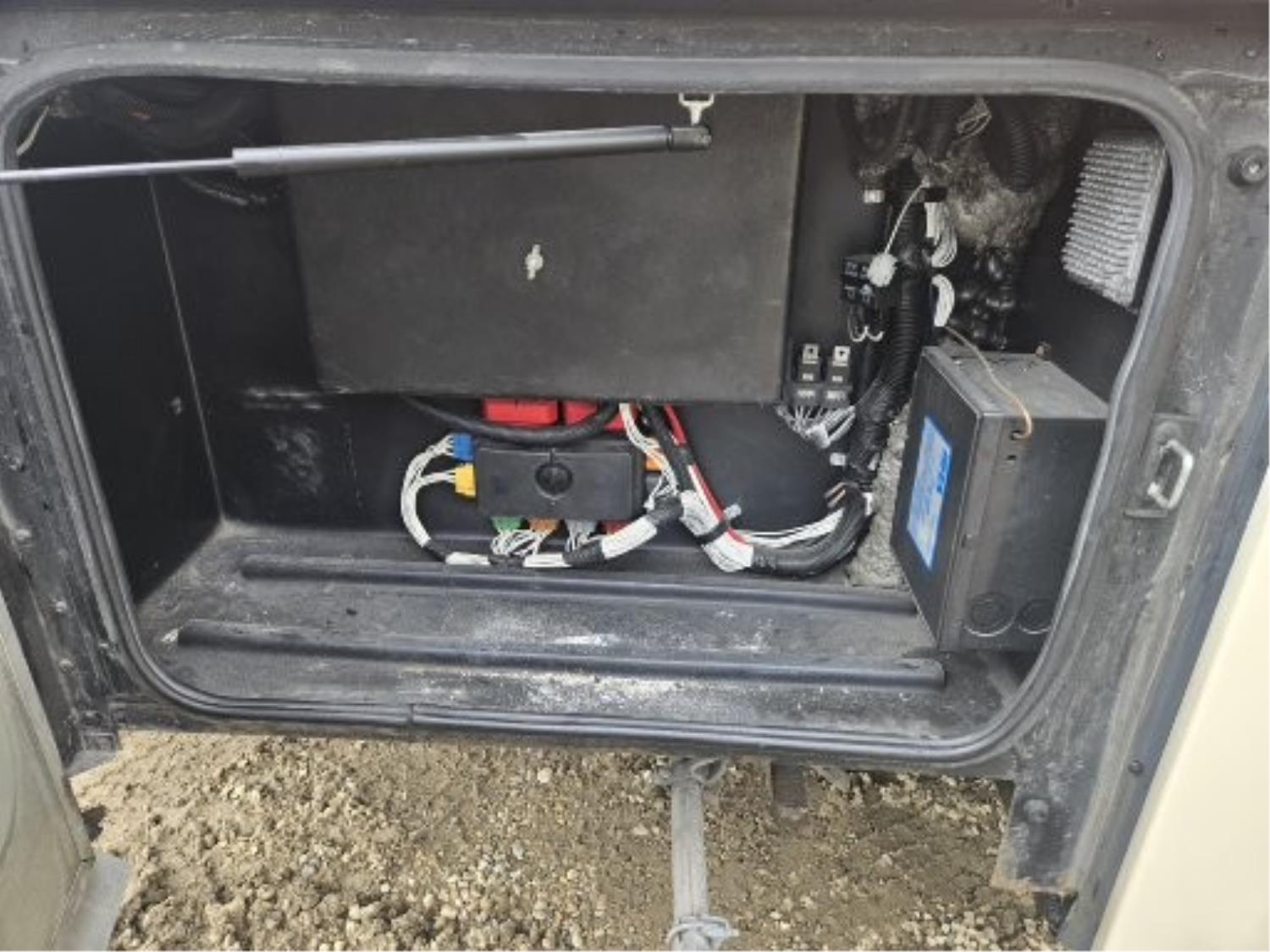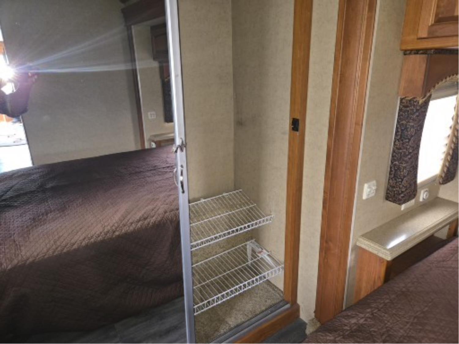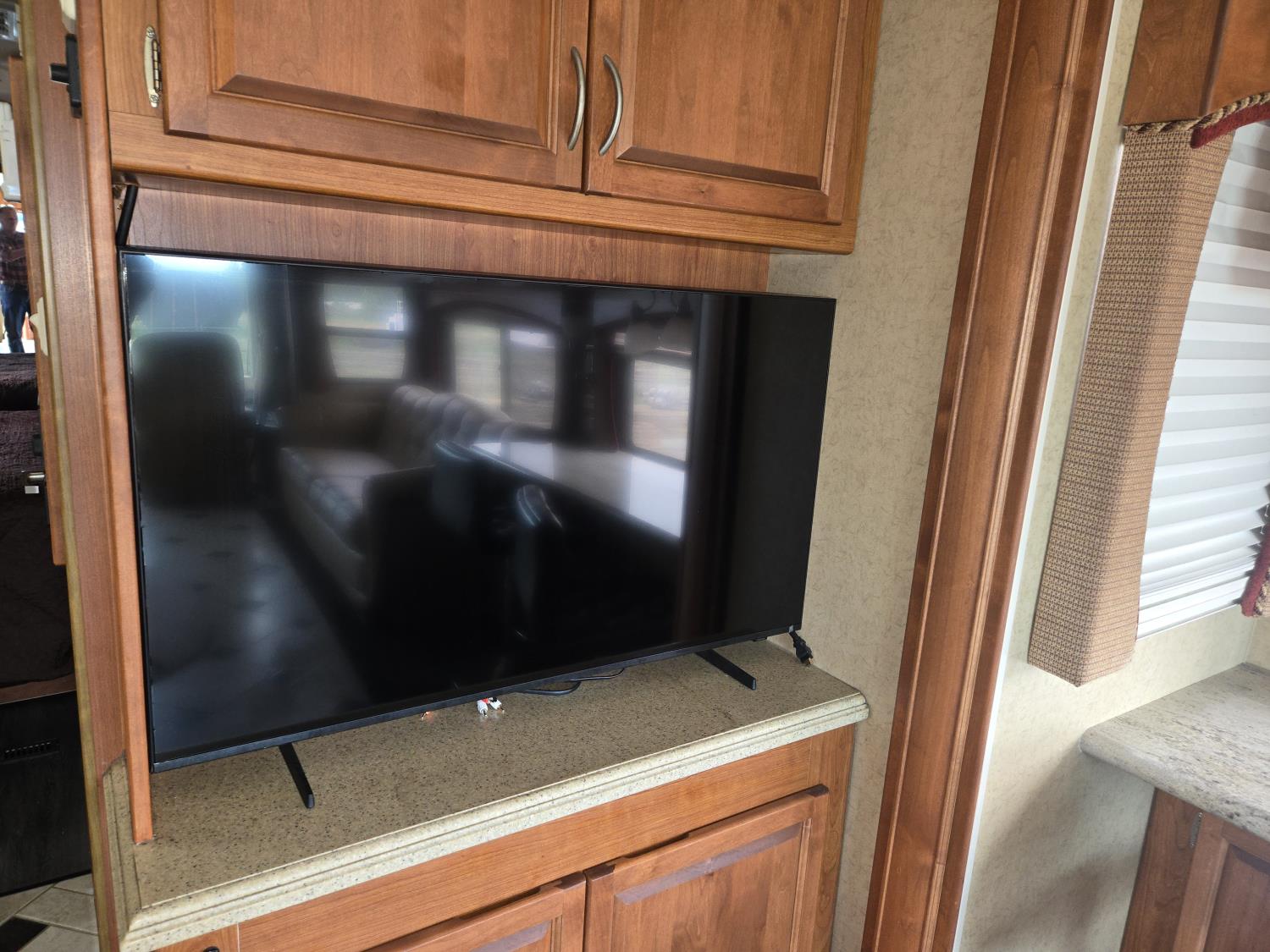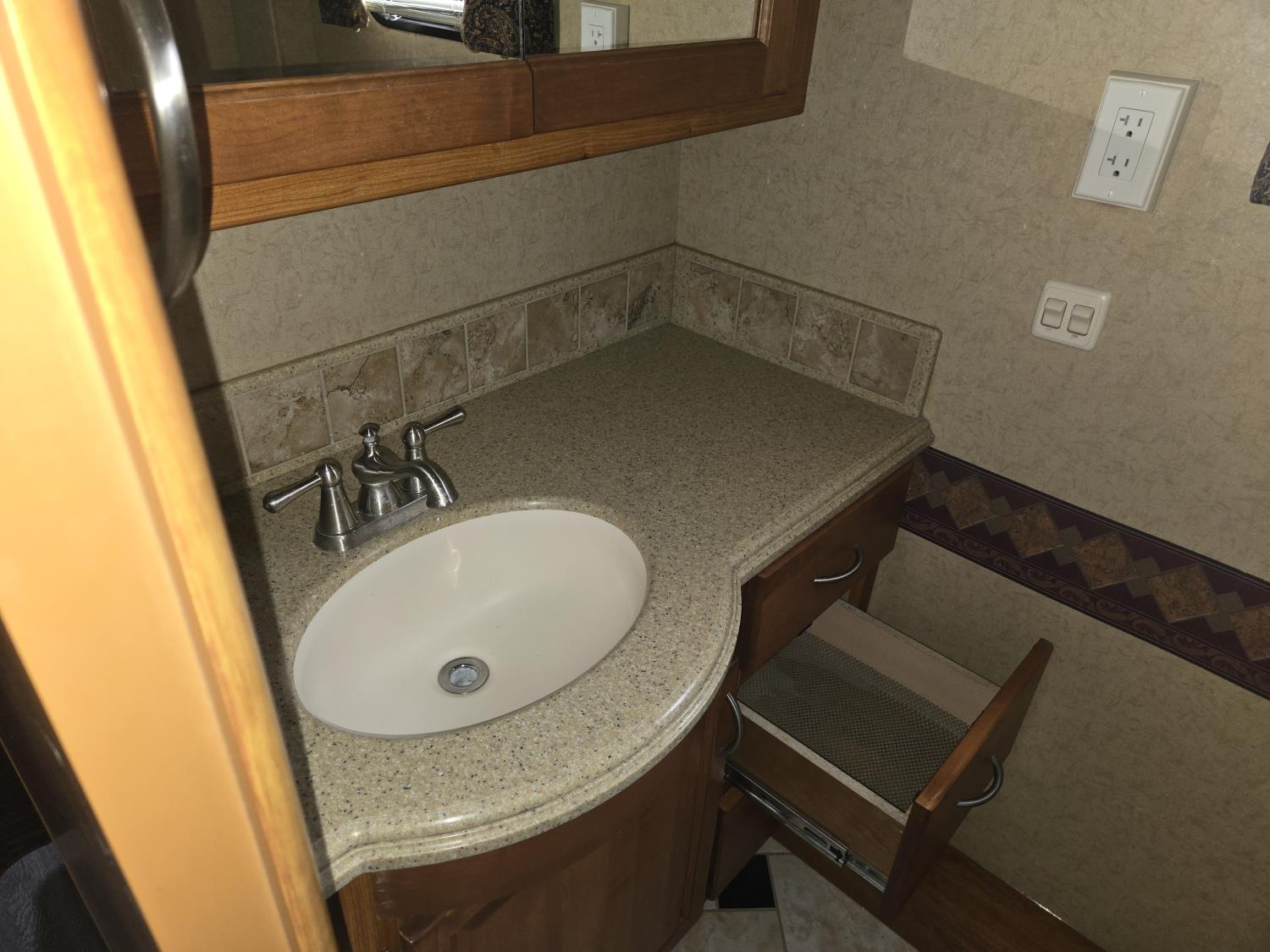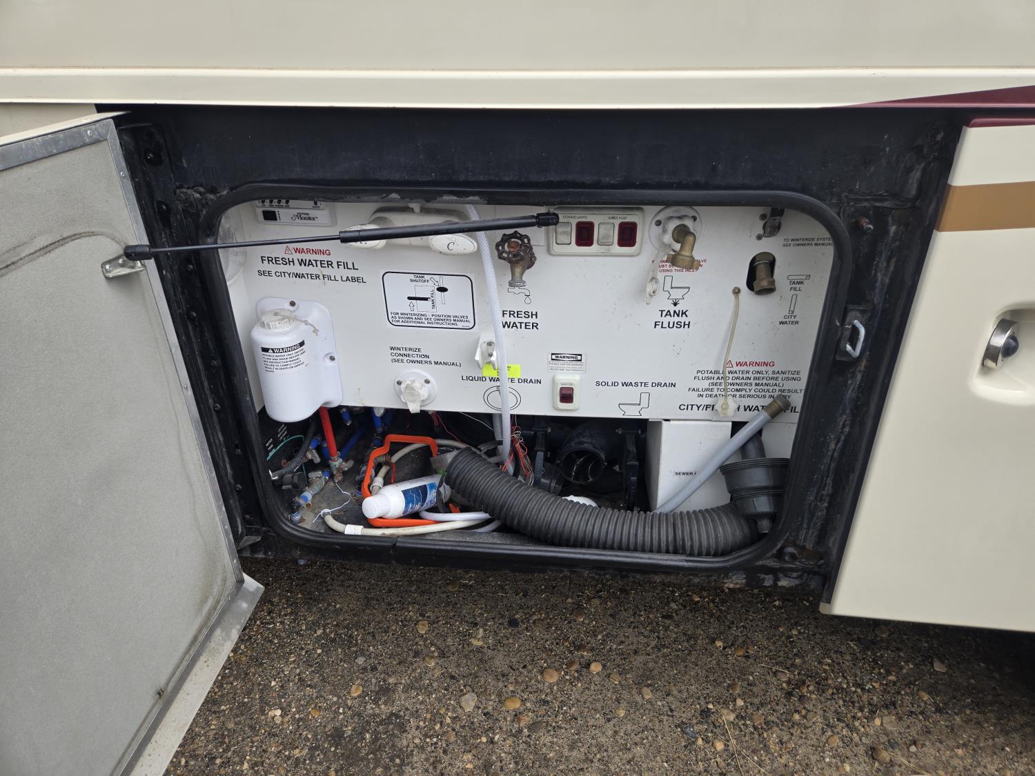 Cummins 400 HP engine, Allison transmission, (4) slides, (1) main awning, (4) smaller awning over windows and door, Onan 8000 watt quiet diesel generator with 2377 hrs, fridge with freezer, stove top, microwave, full washroom, rear bedroom with queen bad, vacuum, (2) AC units, (2) TV's, aluminum wheels, 11R22.5 tires