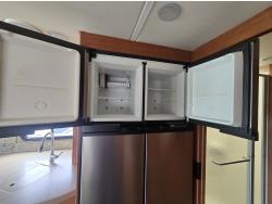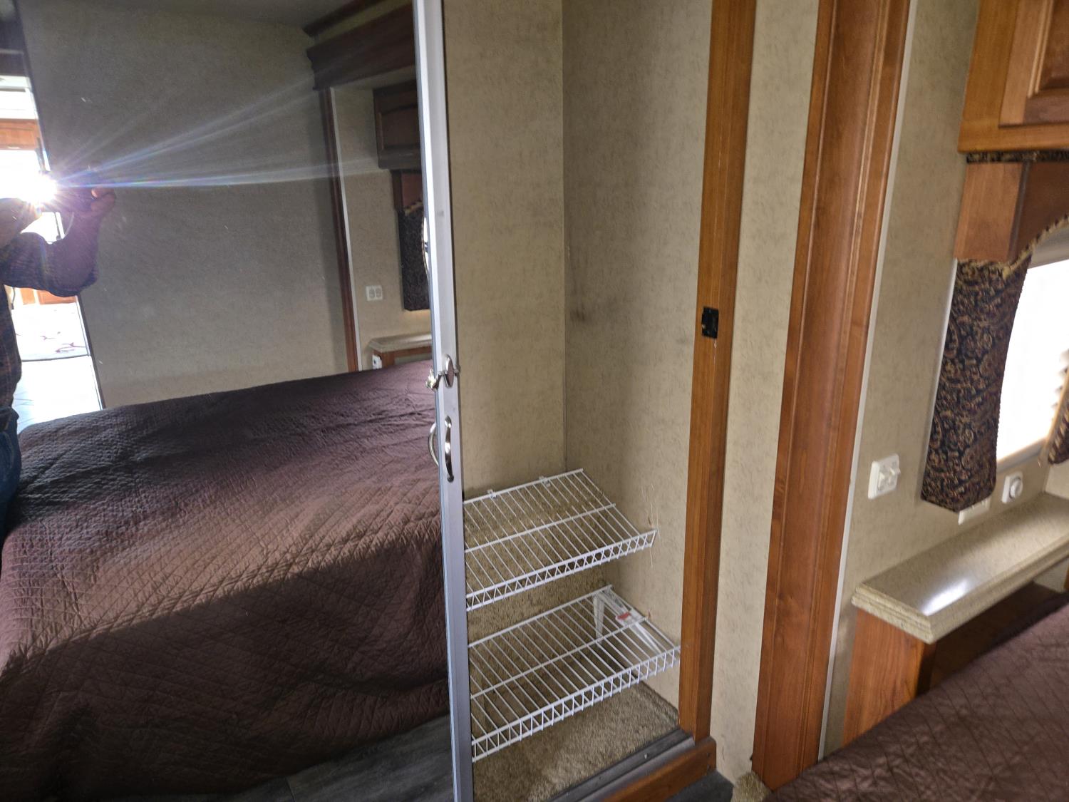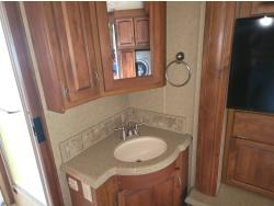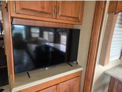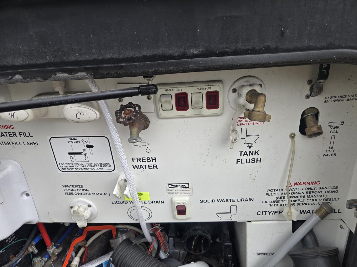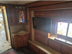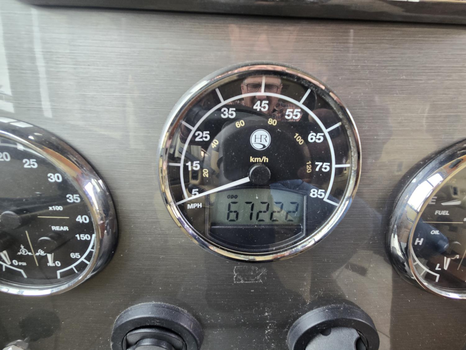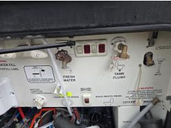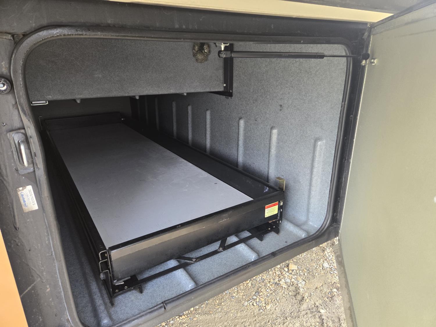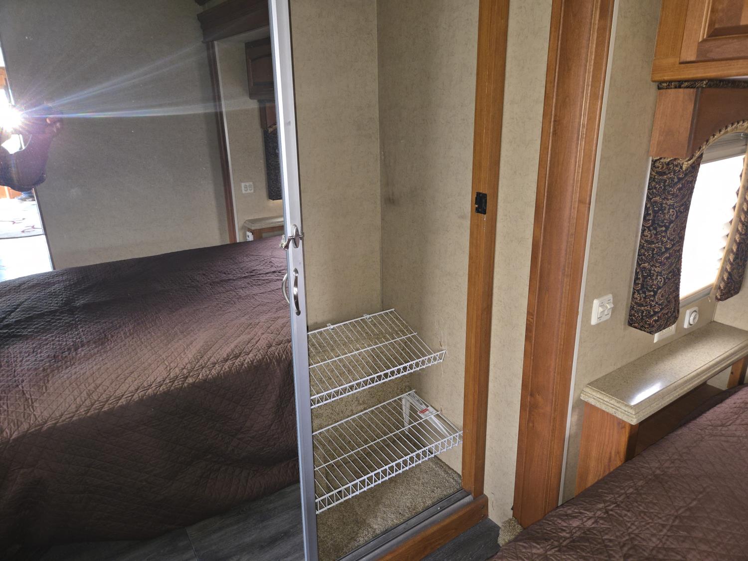 Cummins 400 HP engine, Allison transmission, (4) slides, (1) main awning, (4) smaller awning over windows and door, Onan 8000 watt quiet diesel generator with 2377 hrs, fridge with freezer, stove top, microwave, full washroom, rear bedroom with queen bad, vacuum, (2) AC units, (2) TV's, aluminum wheels, 11R22.5 tires