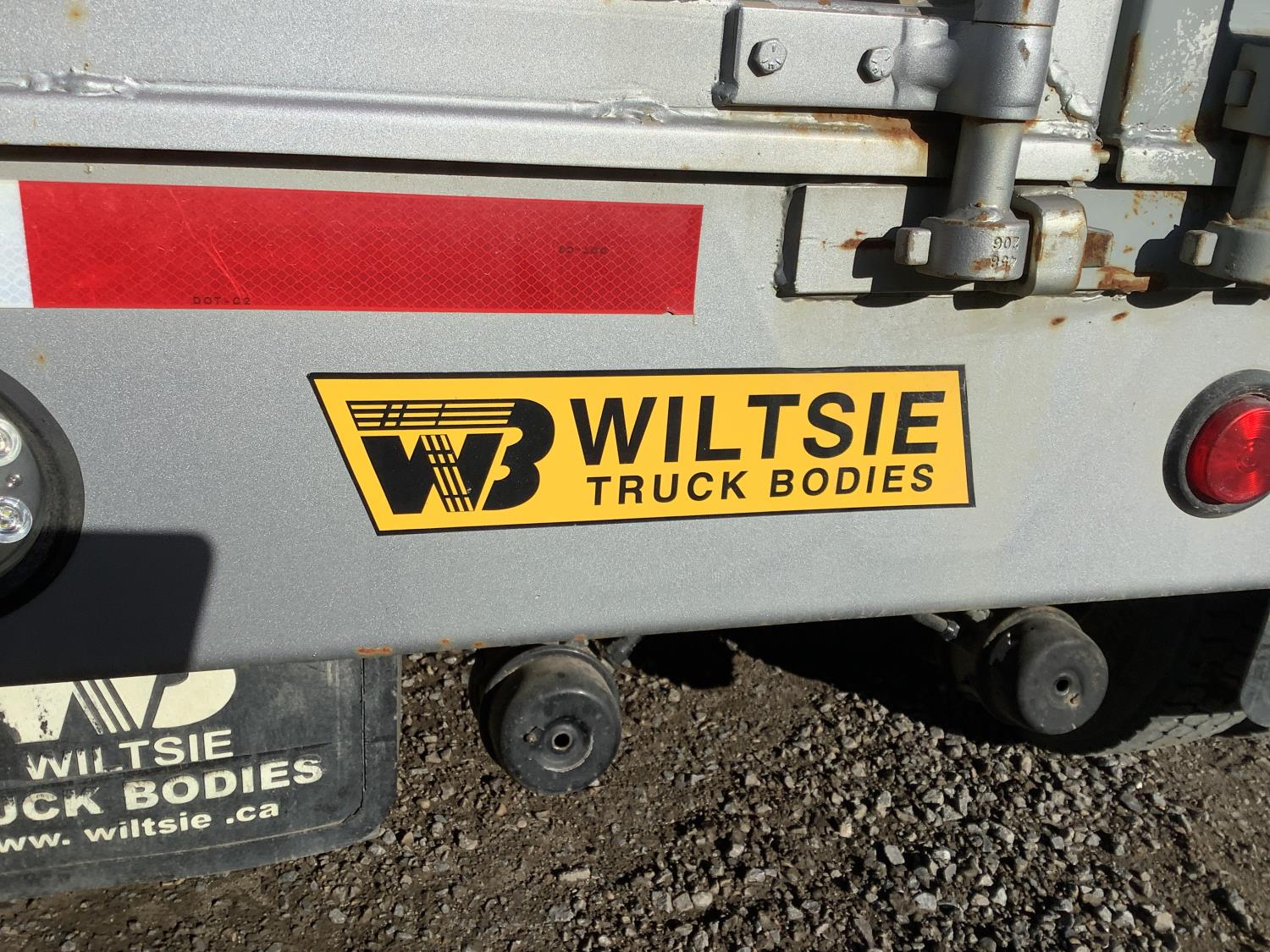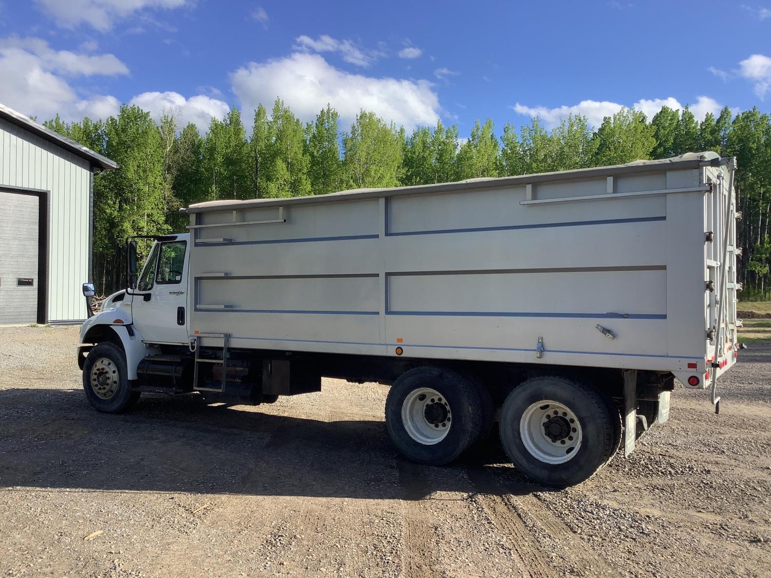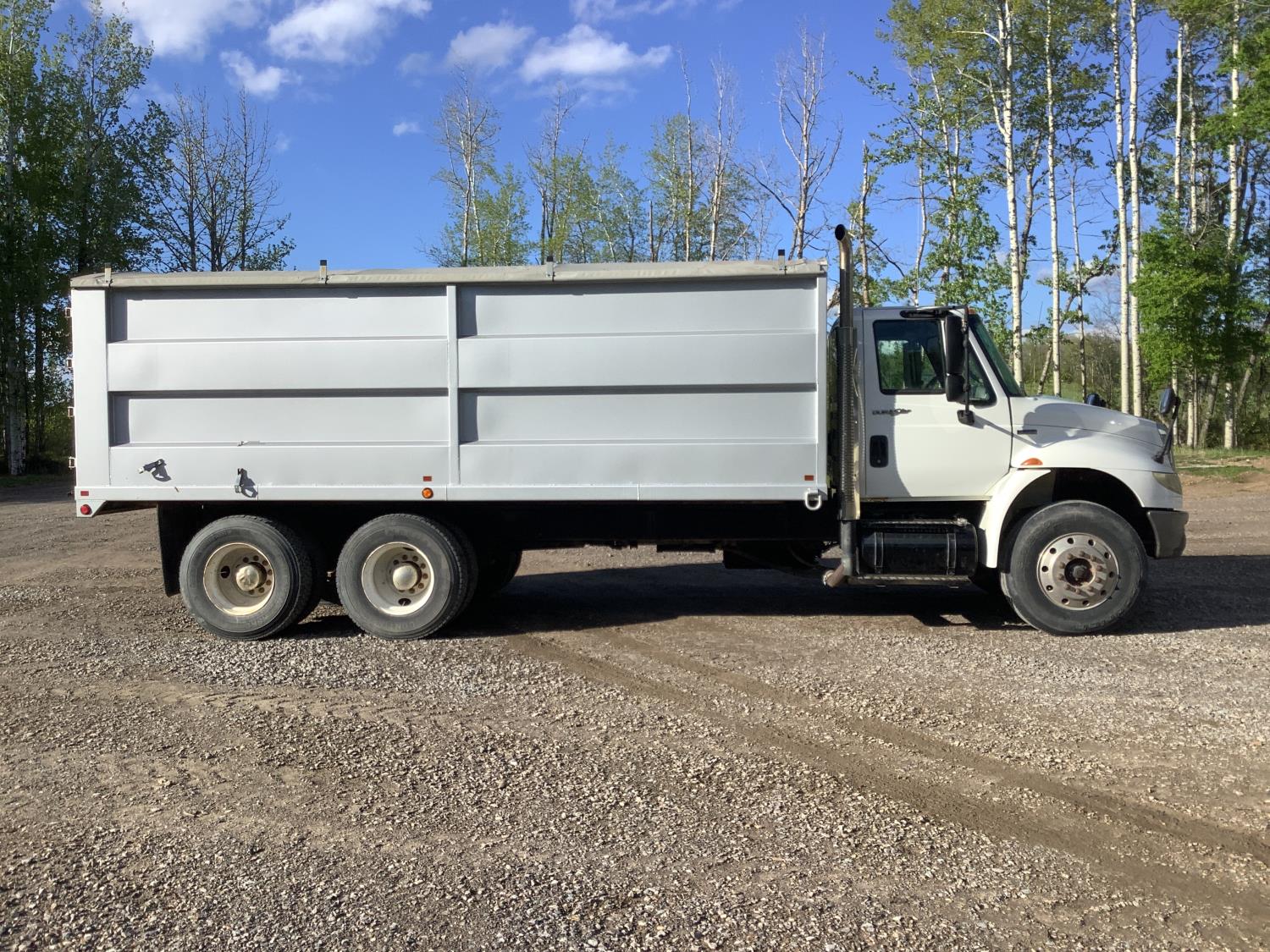 International 9 L 6 310 HP diesel engine, DEF deleted, engine brake, Fuller 10 speed manual transmission, A/C, air ride driver seat, P/W, P/L, 4 year old 20' Wiltsie grain box, 3 piece tailgate, hoist, PTO, roll tarp, single frame rail that has no rust, spring suspension, 14,000 lb front axle, 40,000 lb rear axles, full lockers, 11R22.5 tires