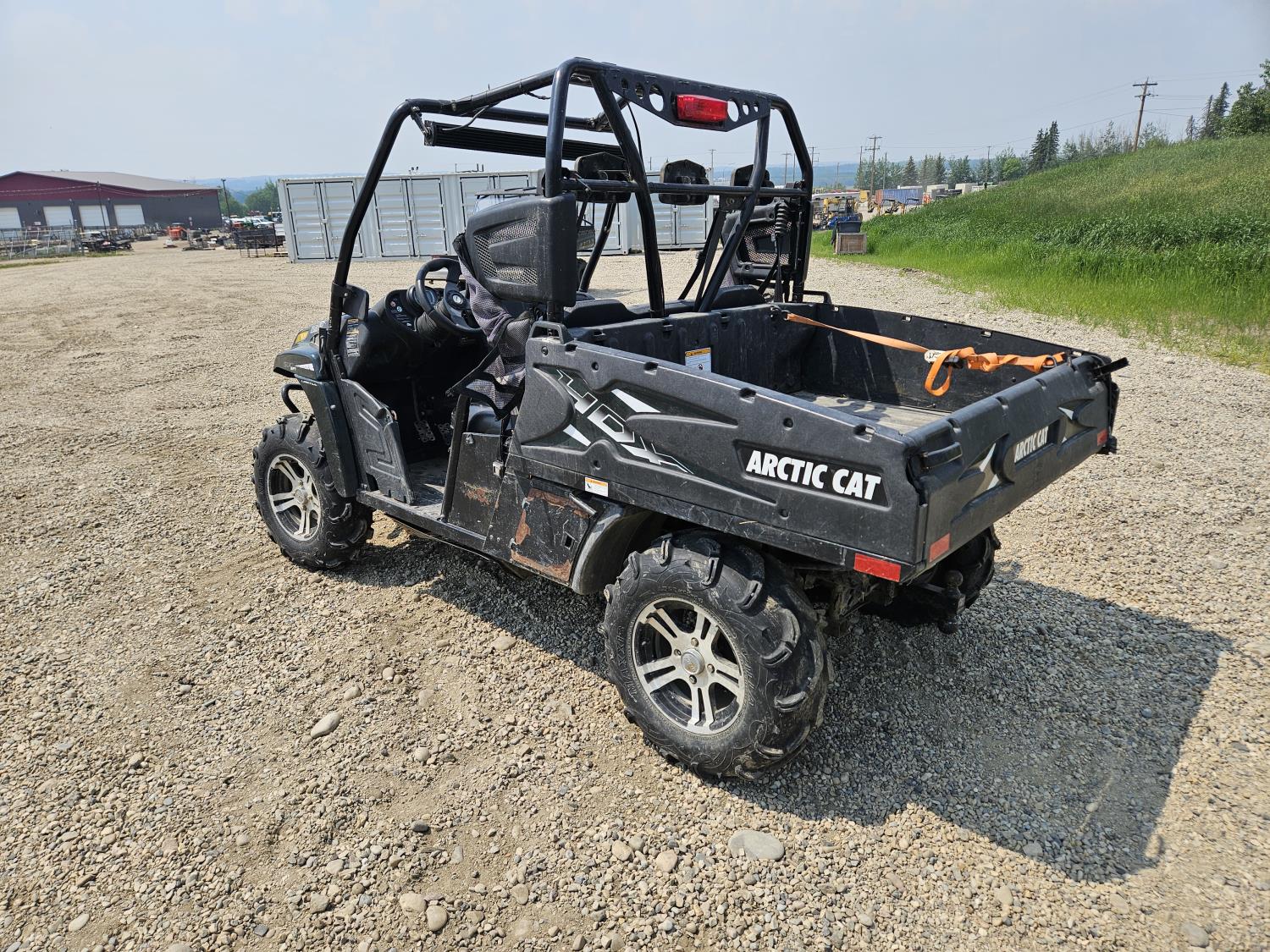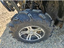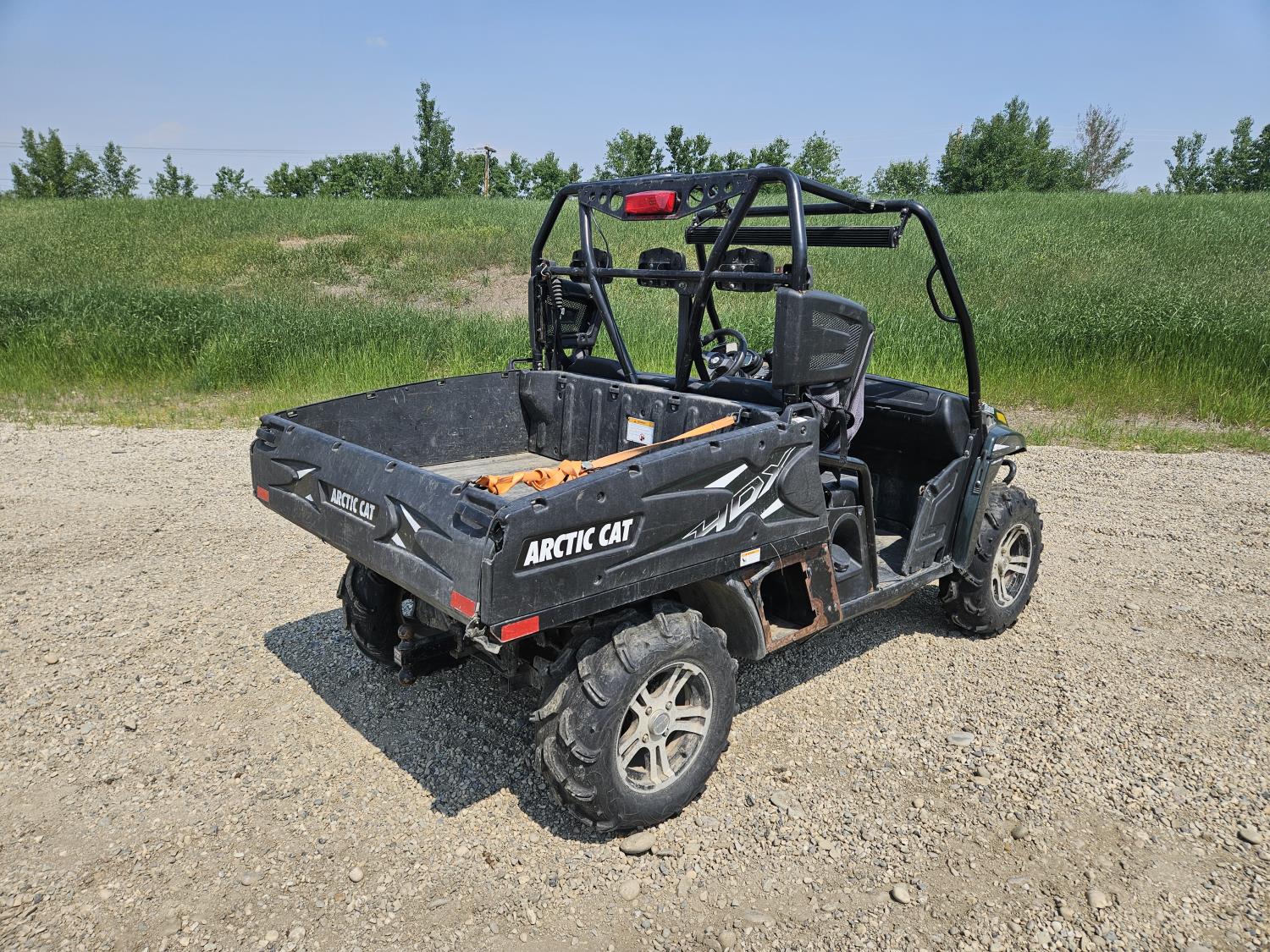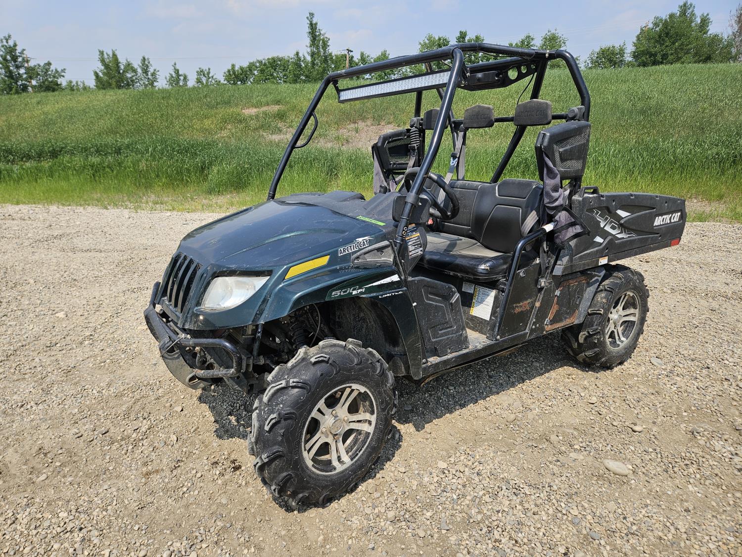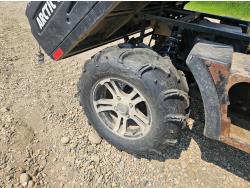 443 cc fuel injected engine, CVT transmission, Hi/Lo range, reverse, open canopy, 3 passengers, front winch, front brush guard, manual dump box, hitch, light bar, aluminum wheels, 28X9.00R14 front tires, 28X11.00R14 rear tires