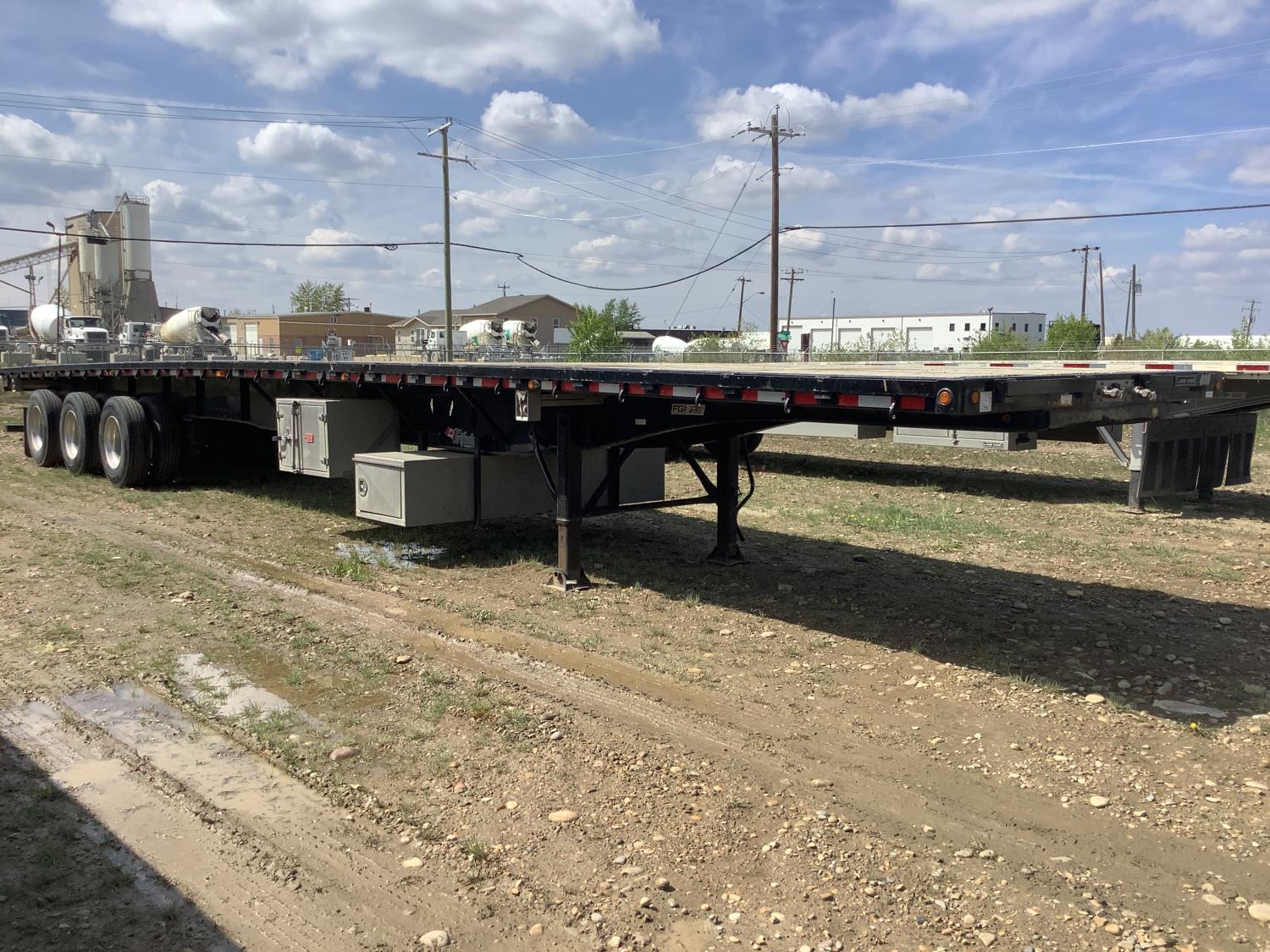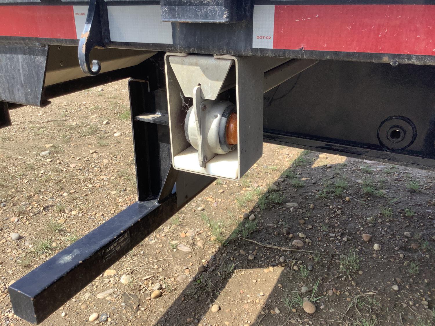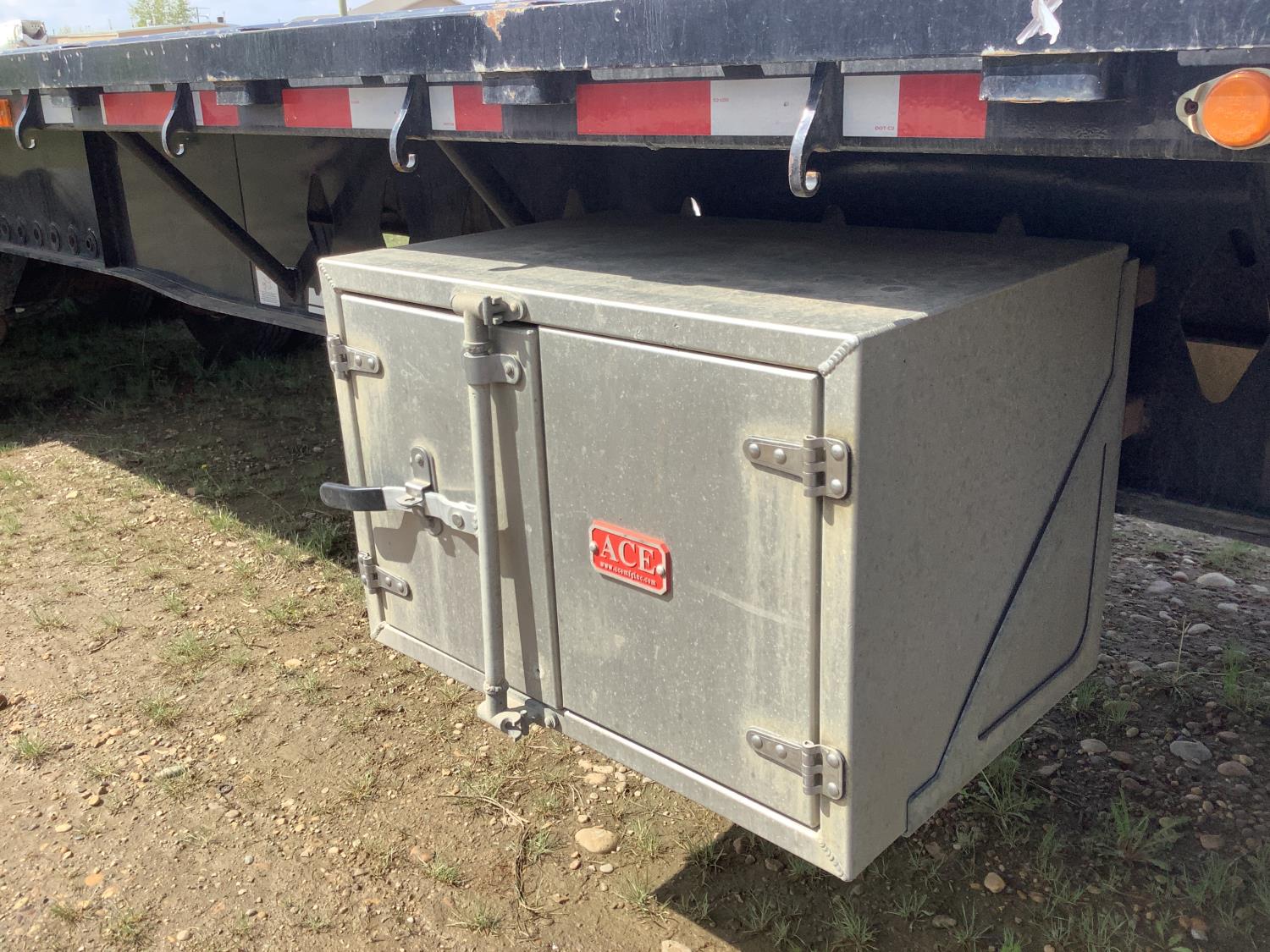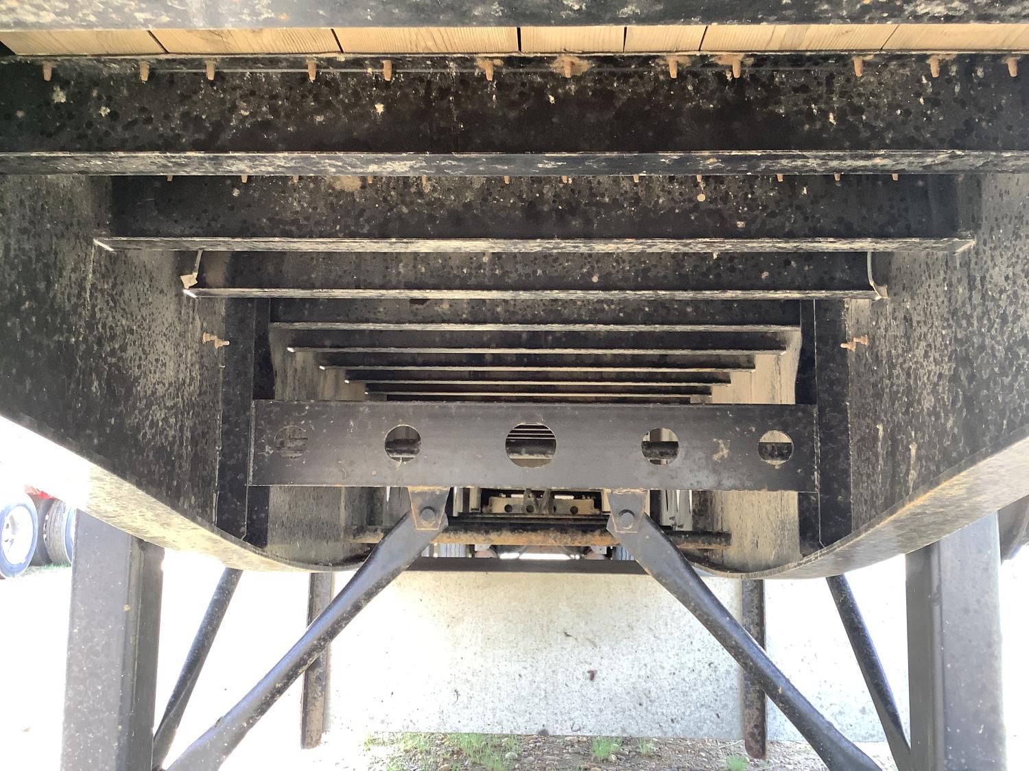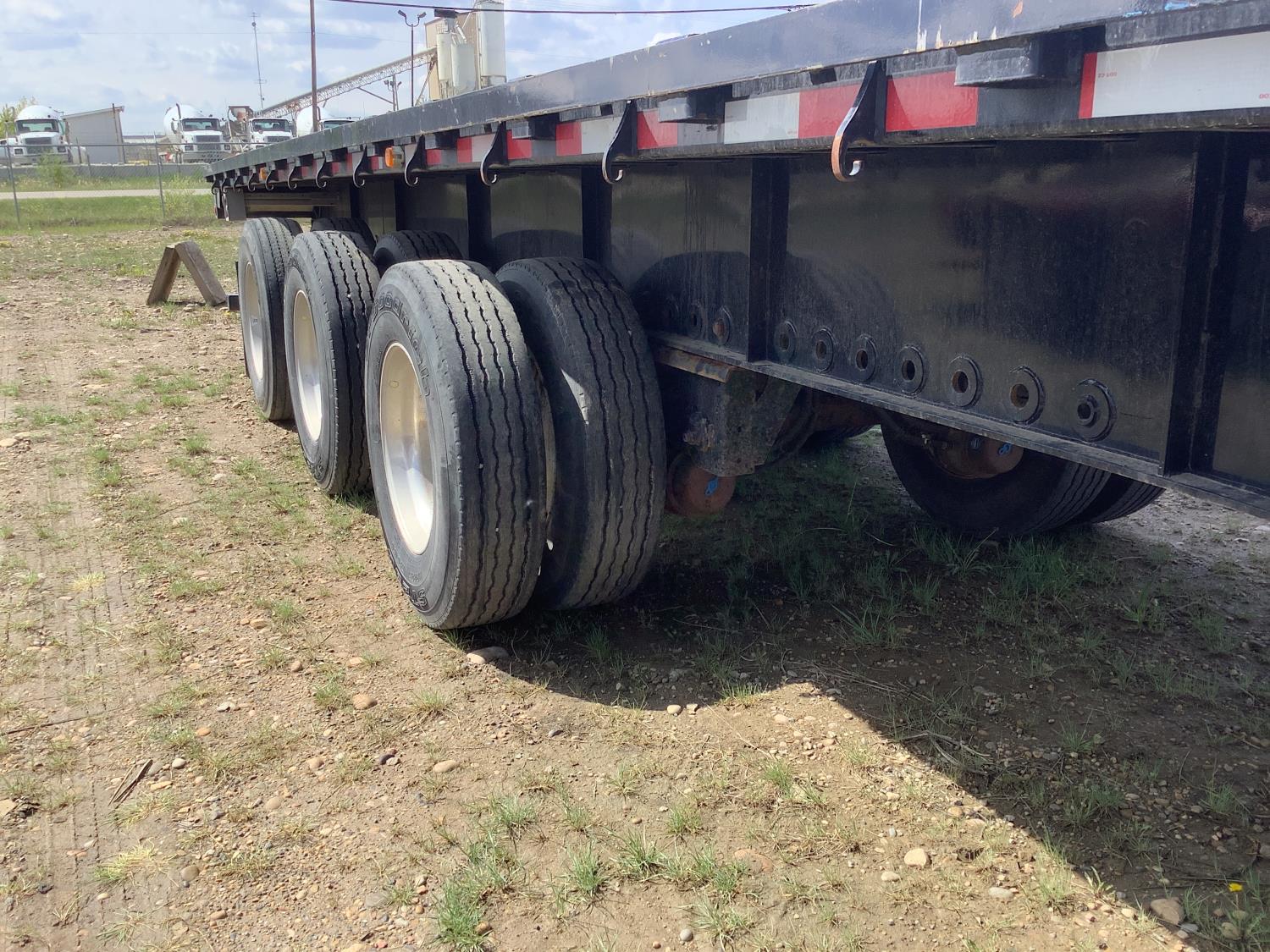 102 inch wide deck, stake pockets, rub rails, cargo winches, J hooks, wide load lights, rear strobe lights, aluminum dunnage box, (2) aluminum tool box's, air load gauge, air dump valve, full sliding rear suspension, air ride suspension, all aluminum wheels, 11R22.5 tires