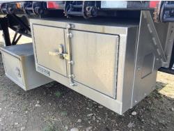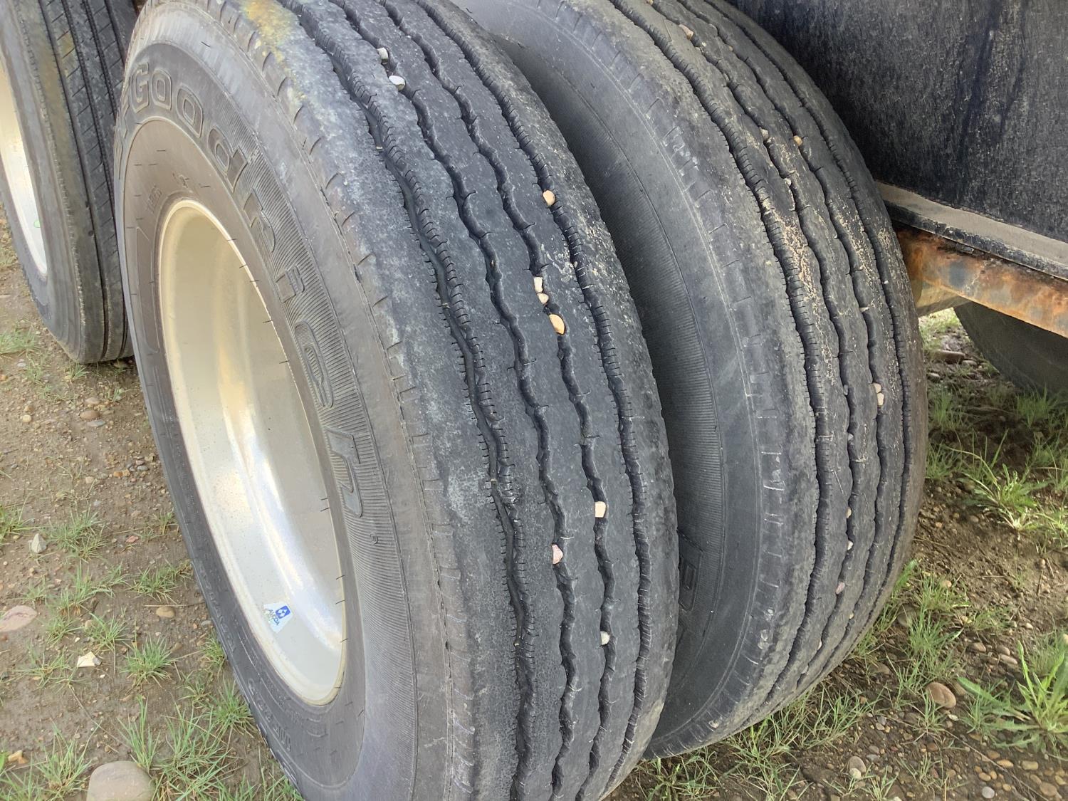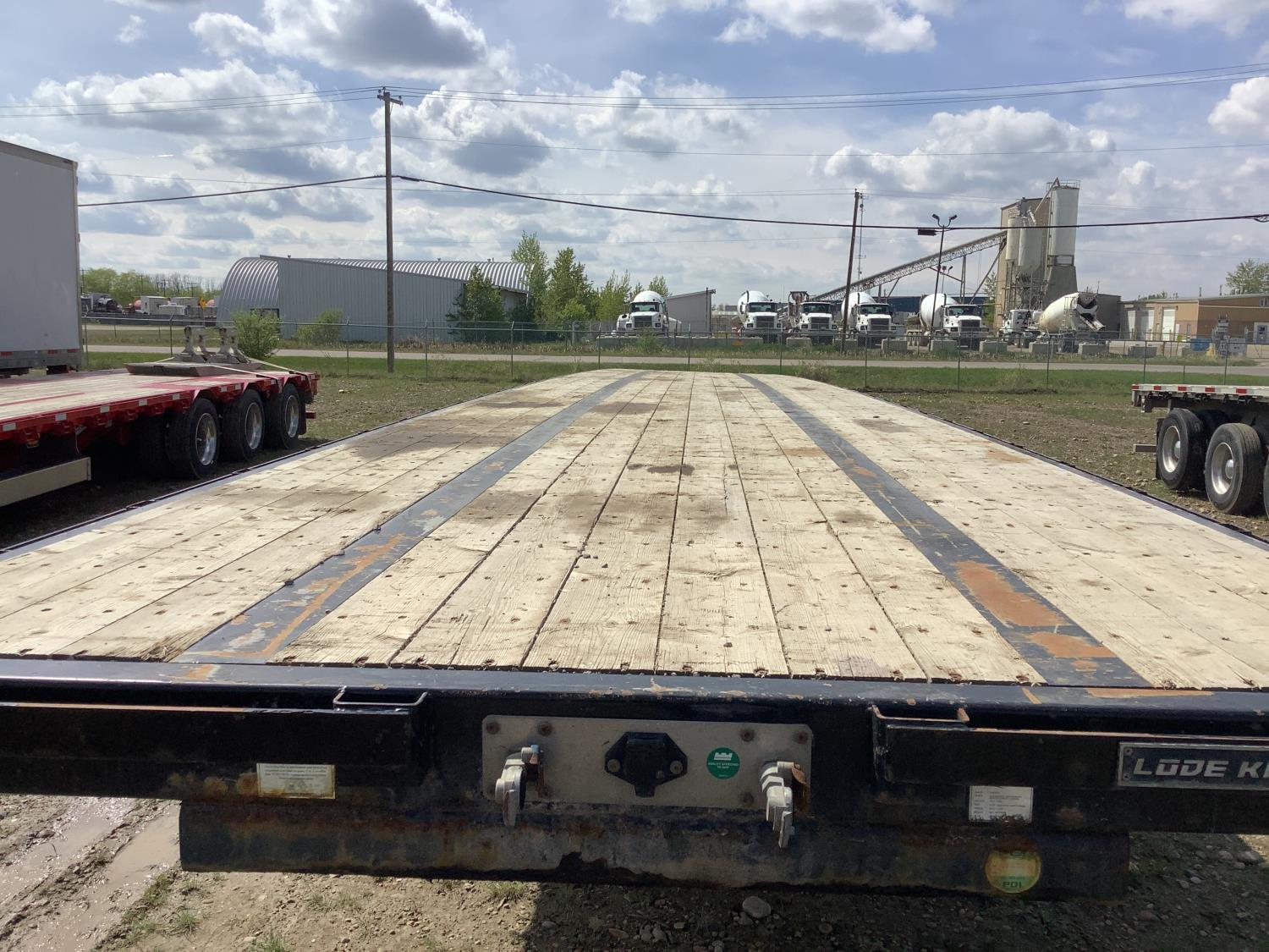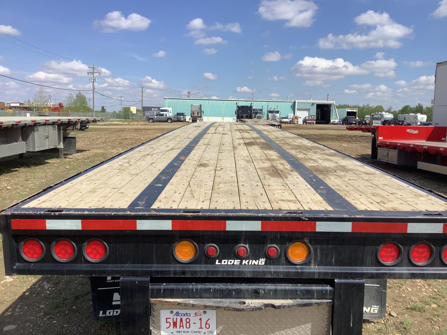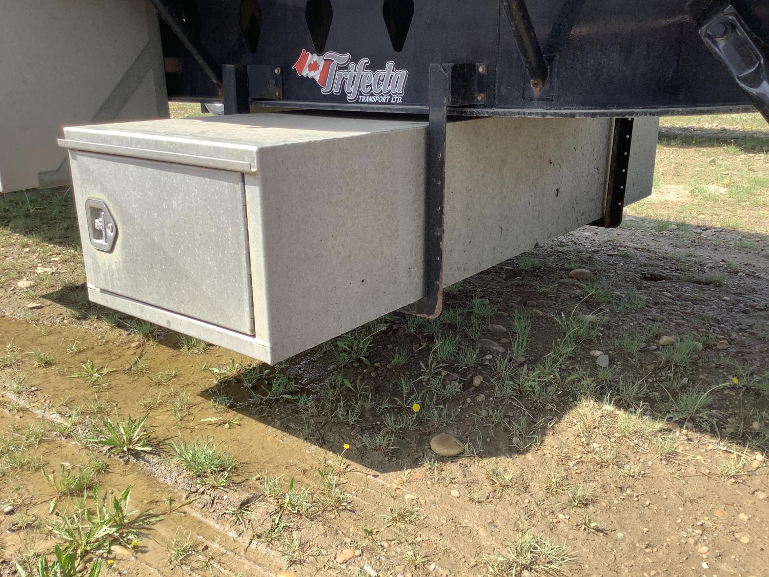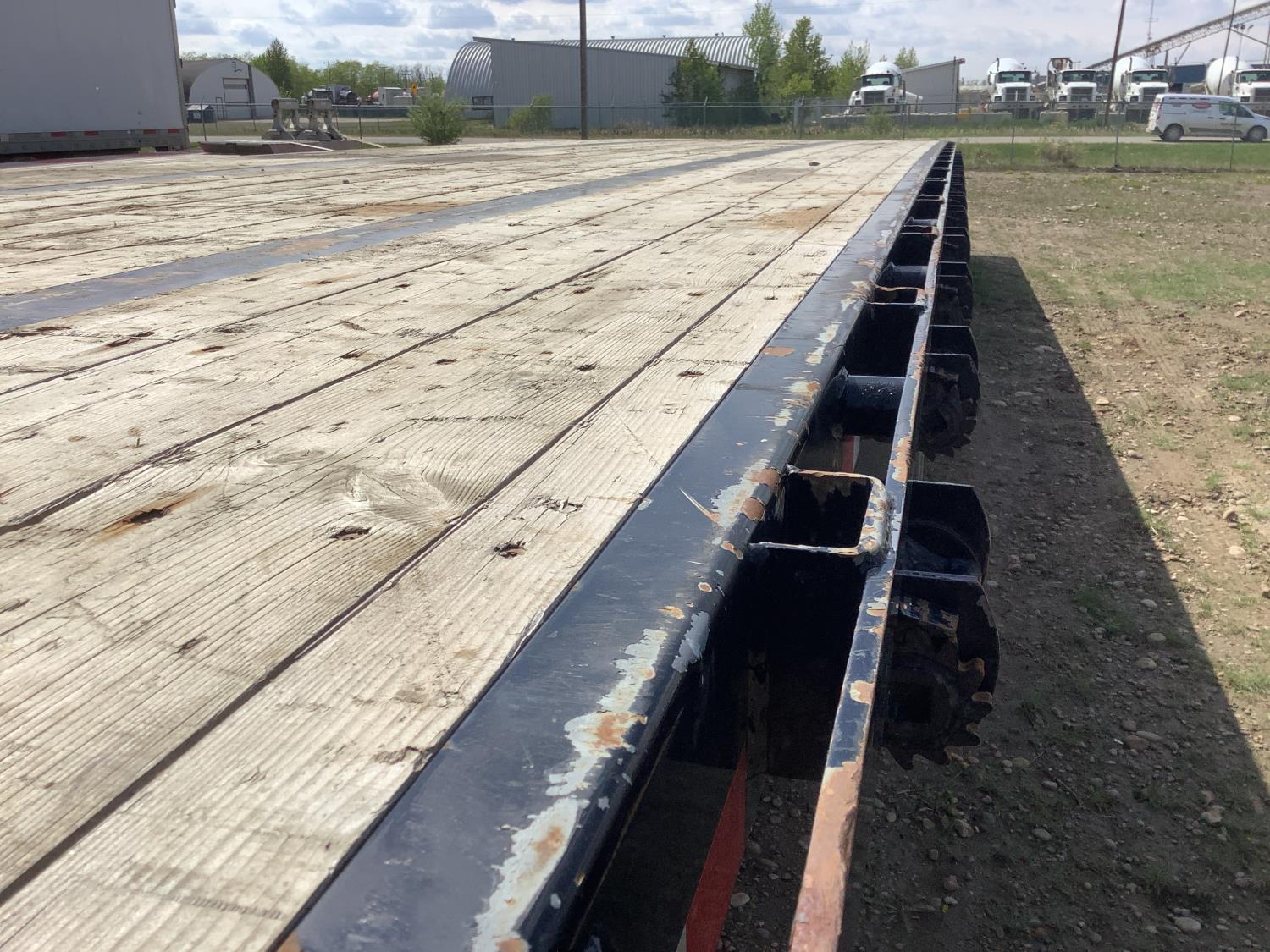 102 inch wide deck, stake pockets, rub rails, cargo winches, J hooks, wide load lights, rear strobe lights, aluminum dunnage box, (2) aluminum tool box's, air load gauge, air dump valve, full sliding rear suspension, air ride suspension, all aluminum wheels, 11R22.5 tires