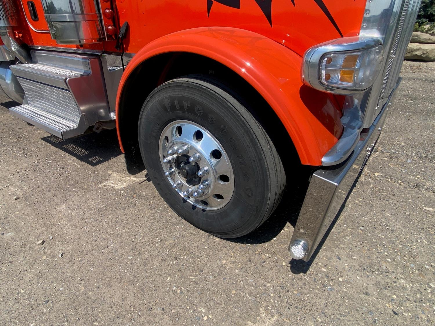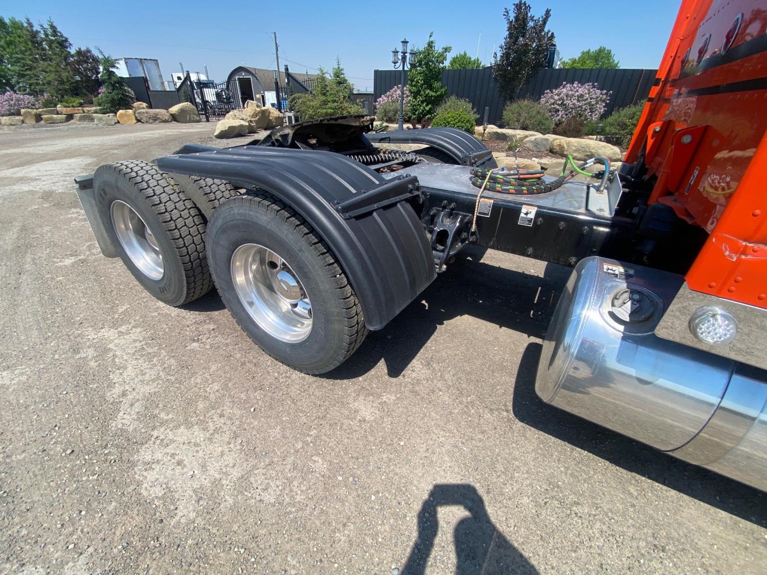 Cummins X15 565 HP engine, 18 speed manual transmission, mid rise 60 inch sleeper, fridge, microwave, A/C, cruise control, leather interior, air ride seats, radio, front air assist suspension, air ride suspension, 13,400 lb front axle, 40,000 lb rear axles, full lockers, all aluminum wheels, 11R22.5 tires