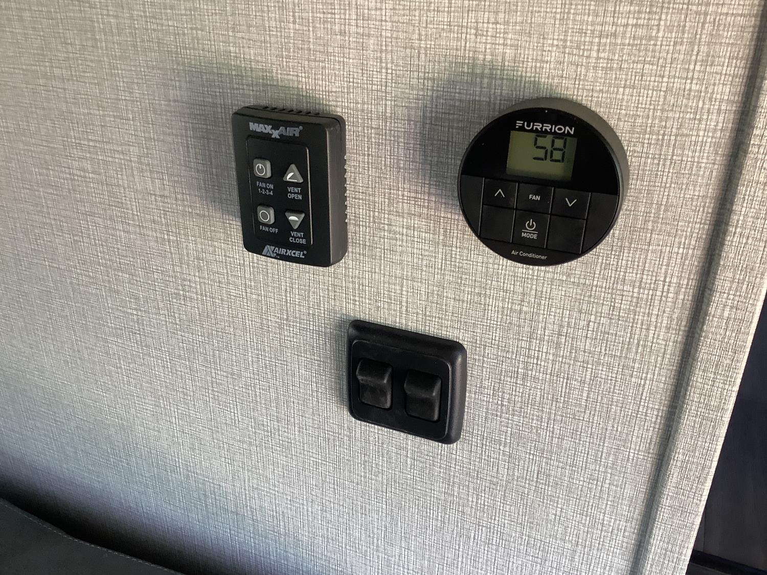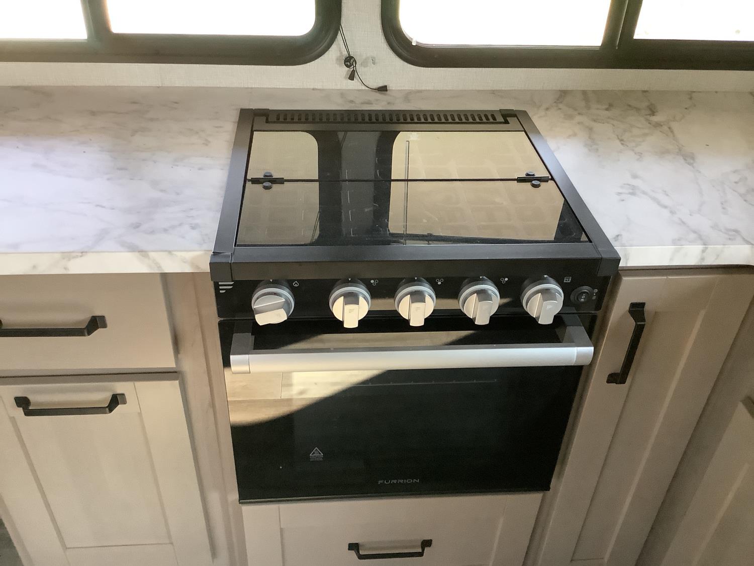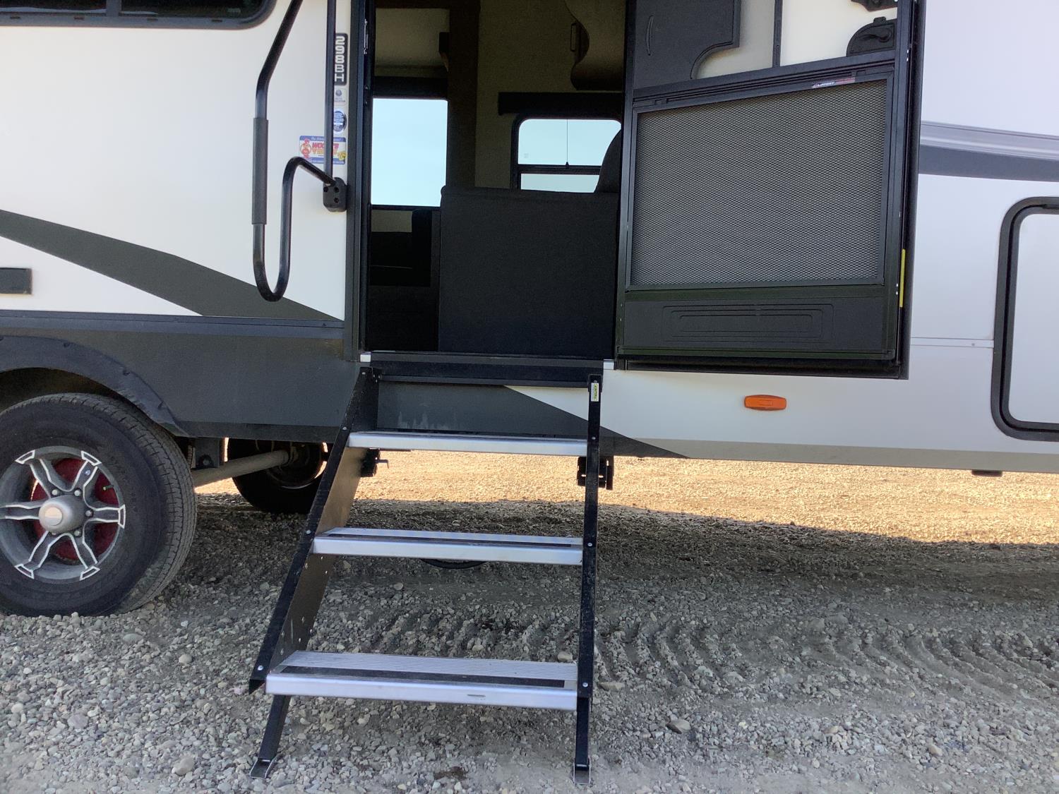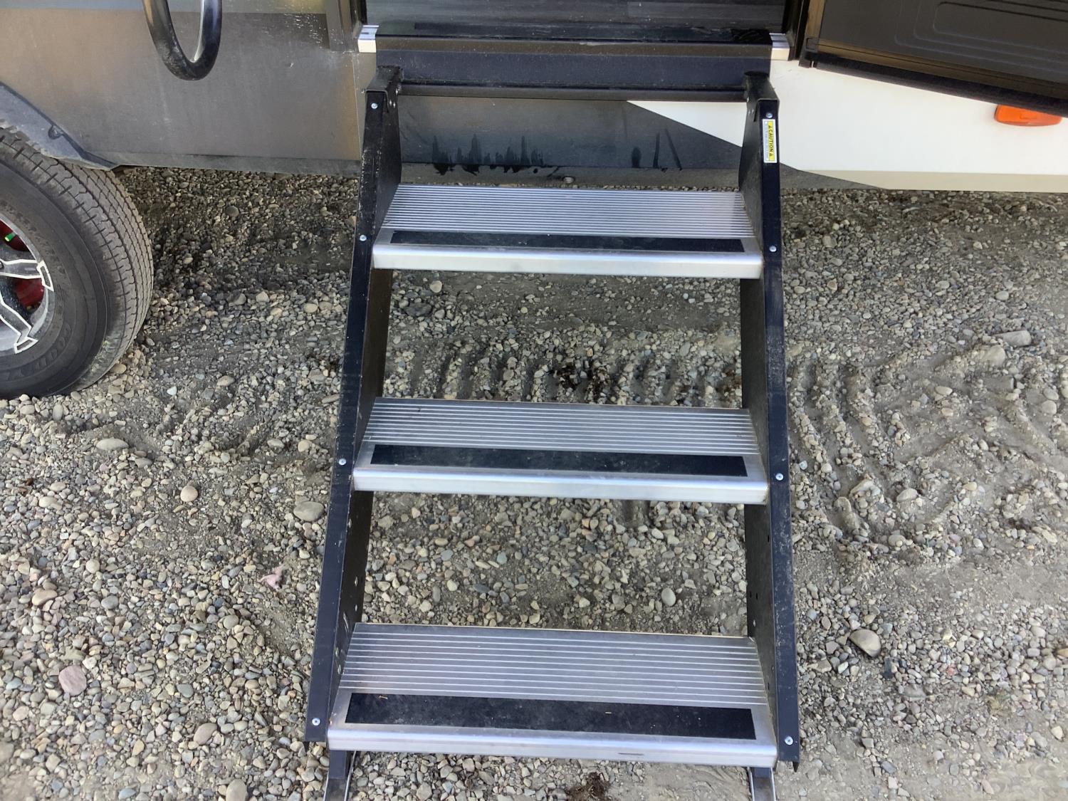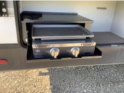 A/C, outdoor kitchen, power awning, Full size fridge with freezer, one TV, furnace, full size bathroom, one slide, (2) rear bunks, fresh water system station, electronic control for leveling jacks, rear tow hitch, tire line control, roof mount solar charging system, (2) propane tanks, 225/75R15 tires