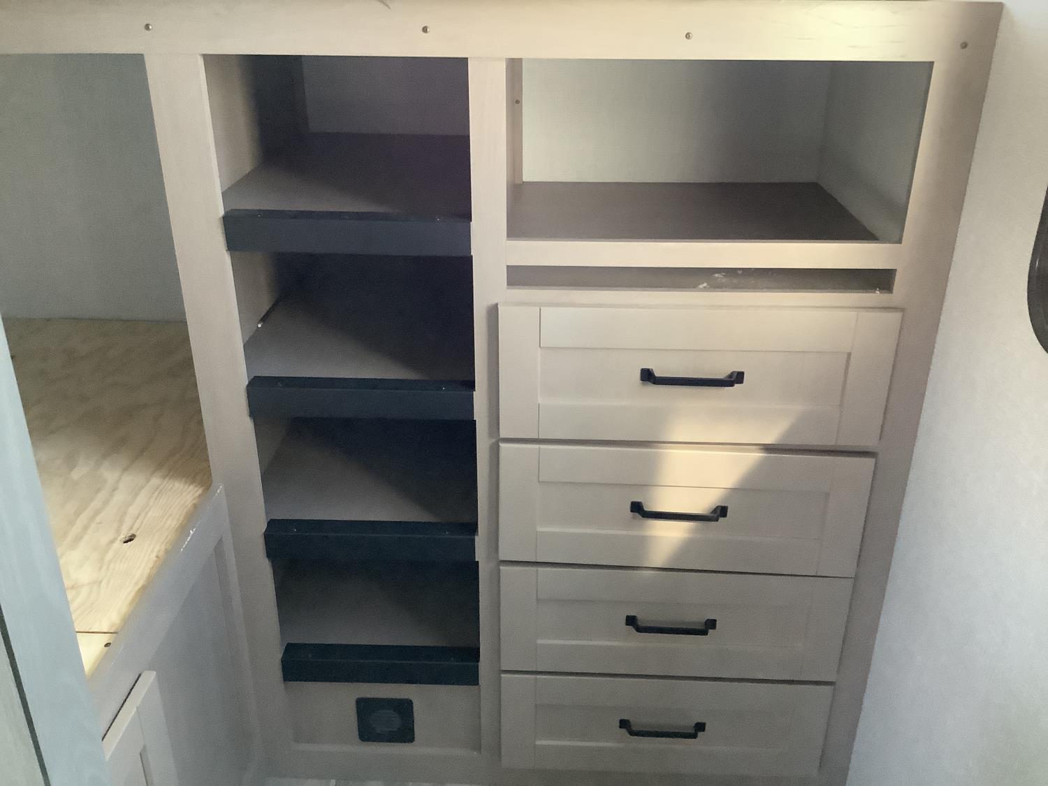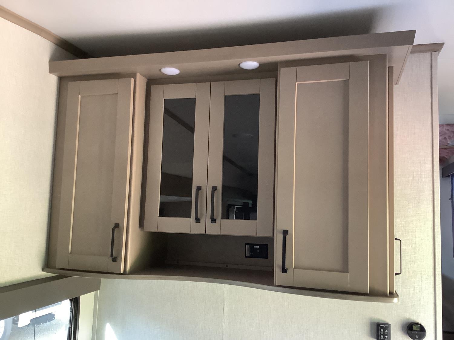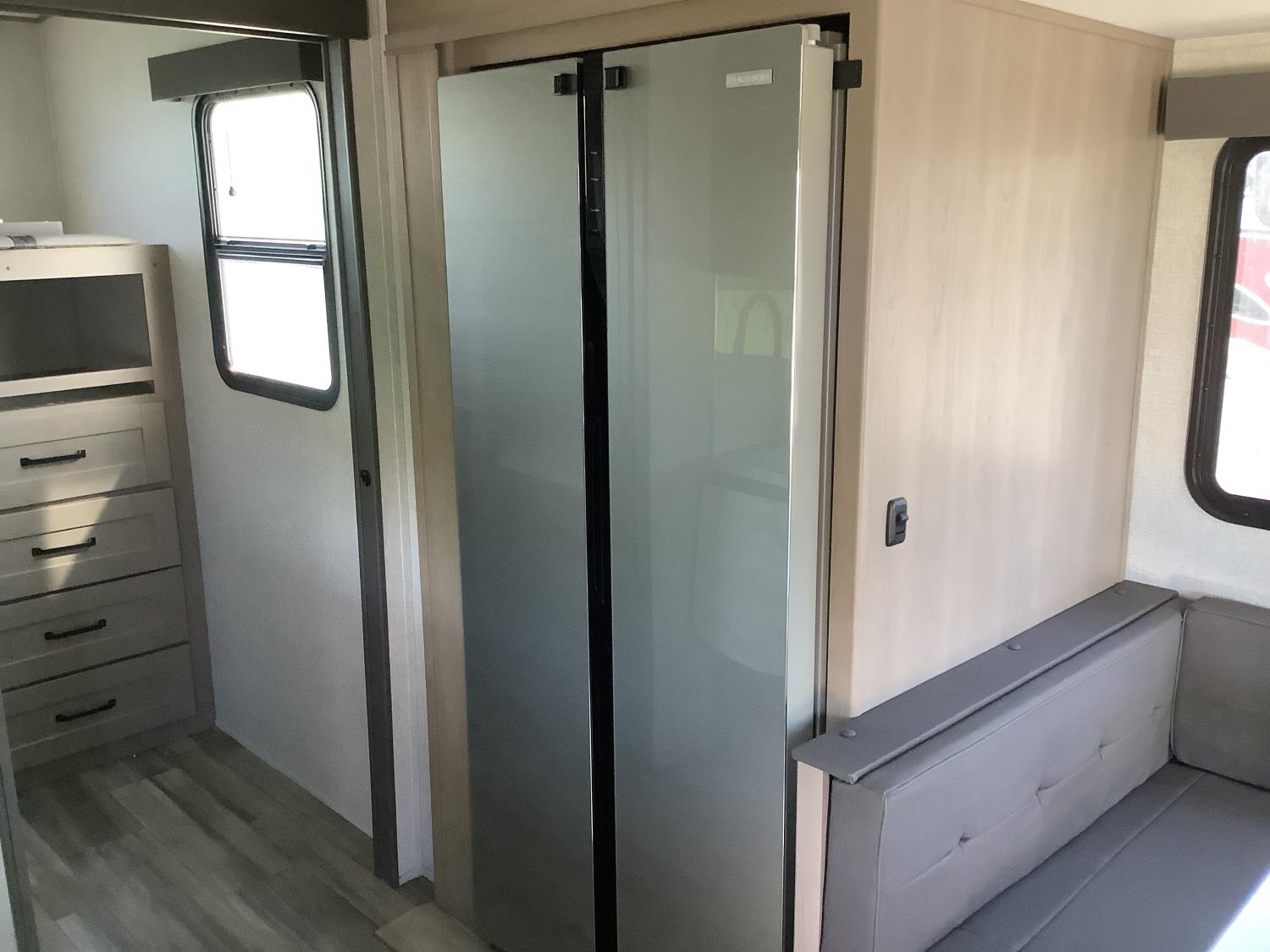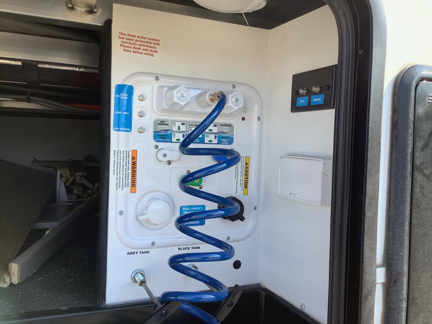 A/C, outdoor kitchen, power awning, Full size fridge with freezer, one TV, furnace, full size bathroom, one slide, (2) rear bunks, fresh water system station, electronic control for leveling jacks, rear tow hitch, tire line control, roof mount solar charging system, (2) propane tanks, 225/75R15 tires