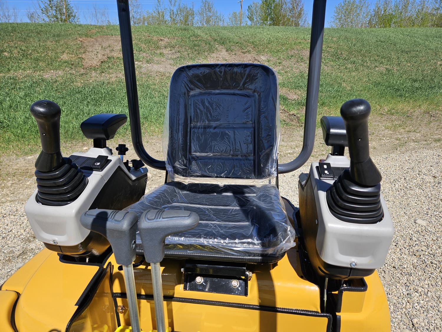 Open station, pilot controls, 420cc gas engine, 15 inch dig bucket, manual thumb, 2 Ft 8 inch stick, backfill blade, 7 inch rubber tracks