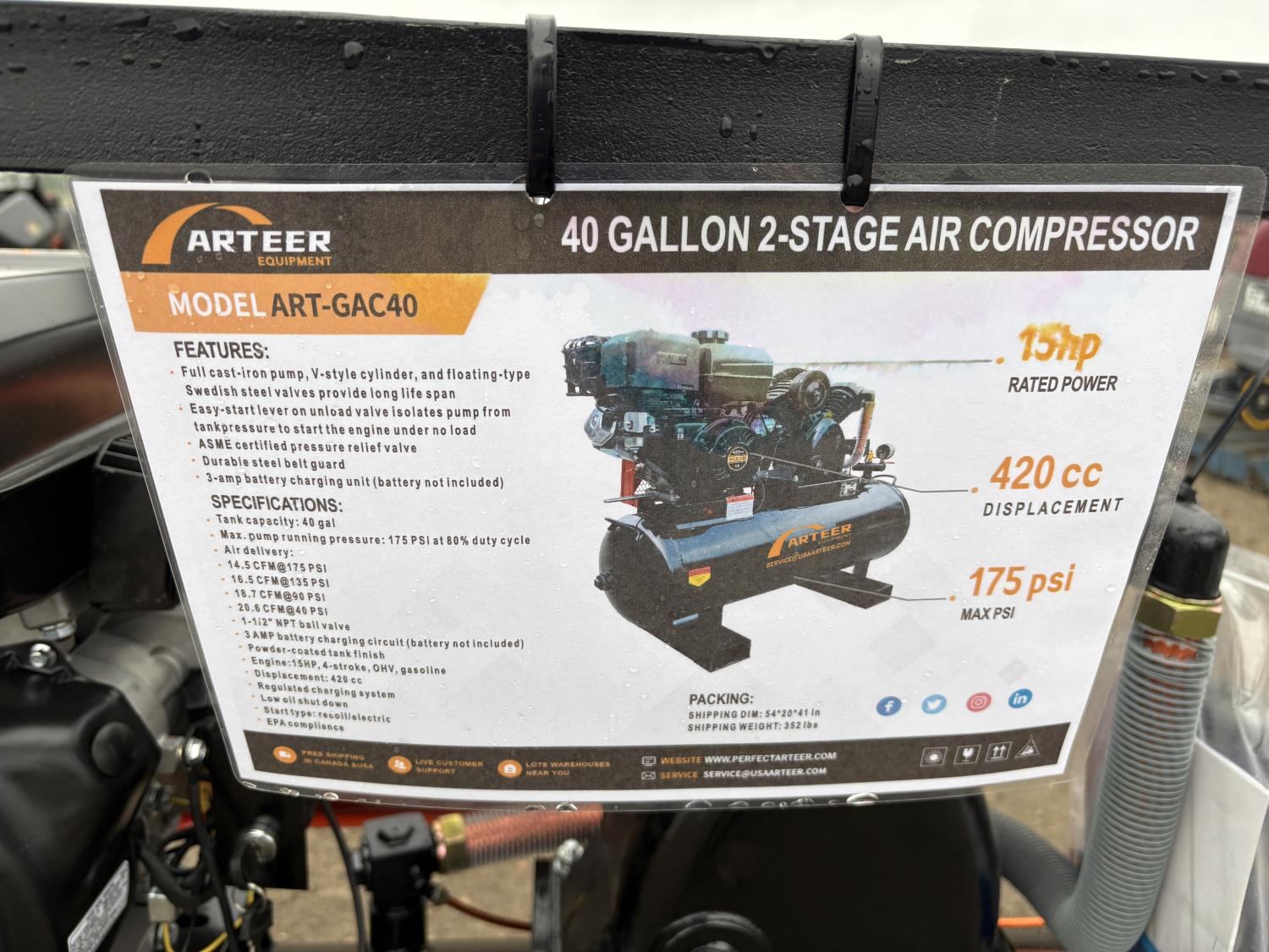 38 2025 Arteer ART-GAC40 Air Compressor (Unused)