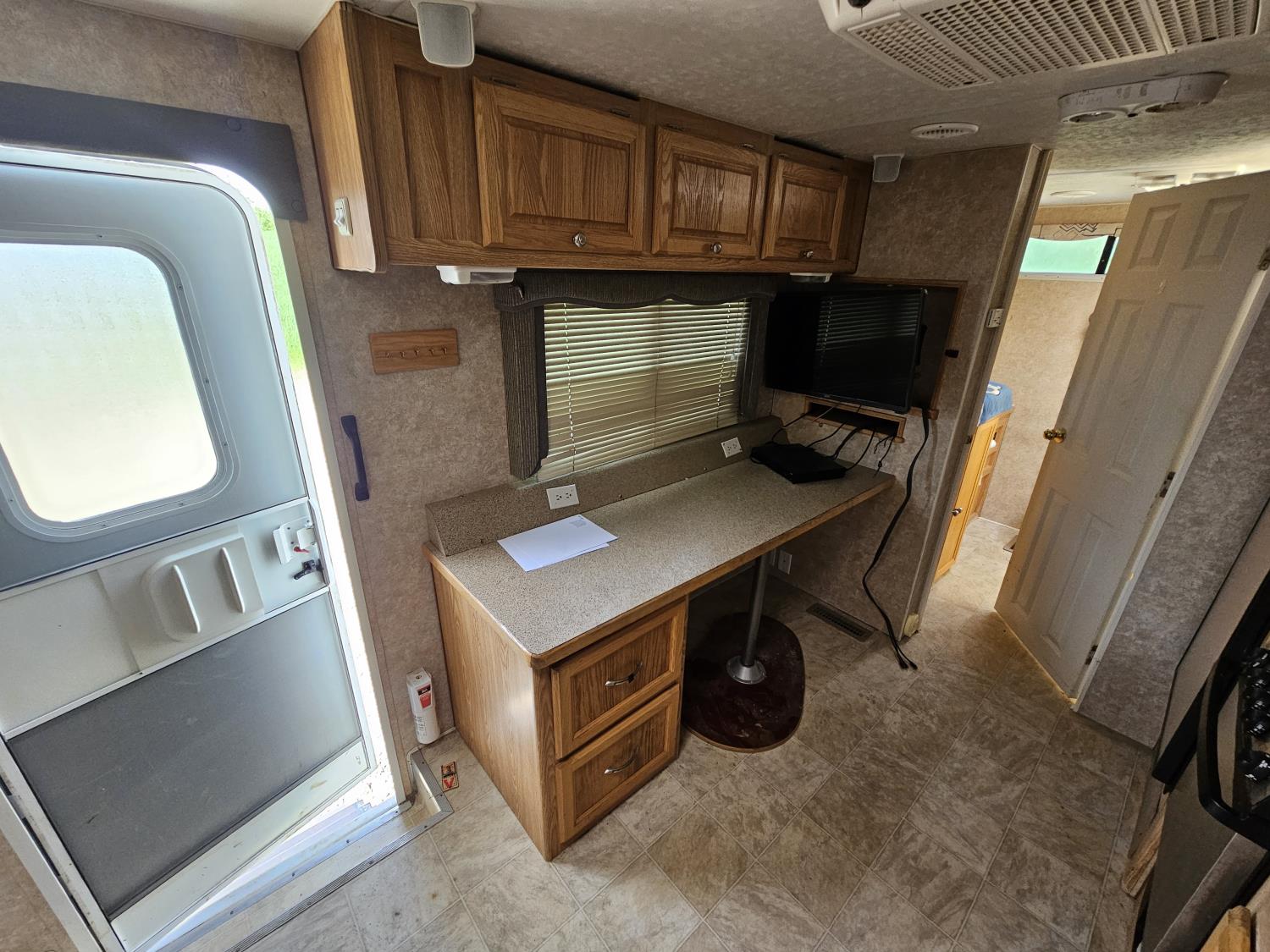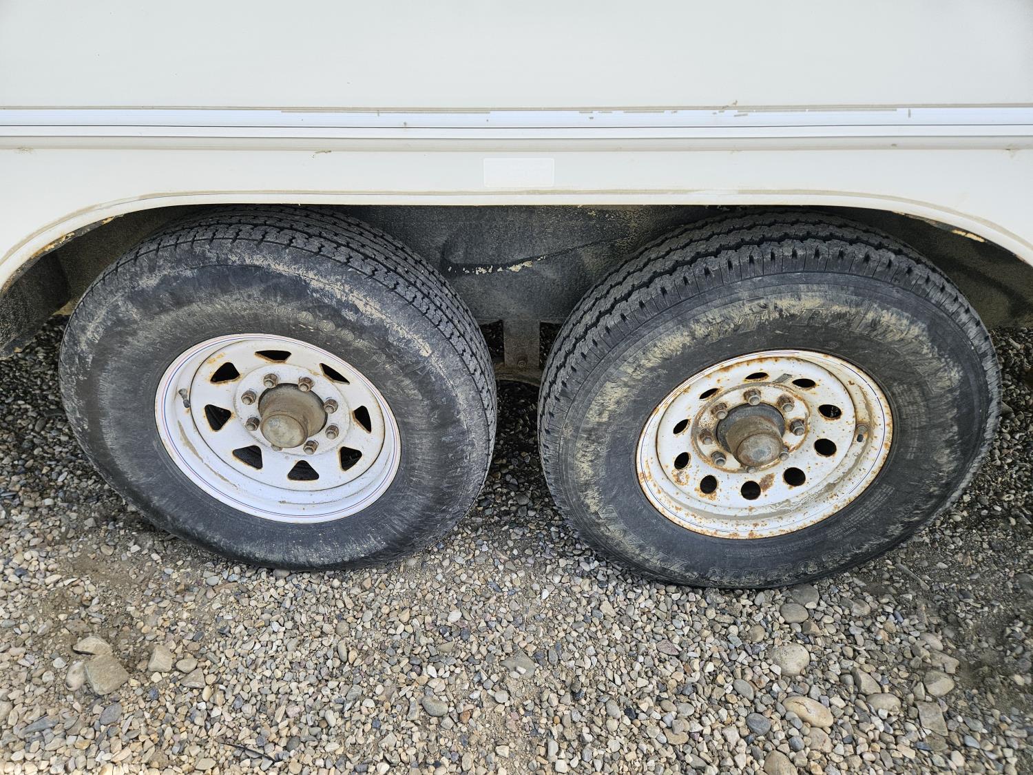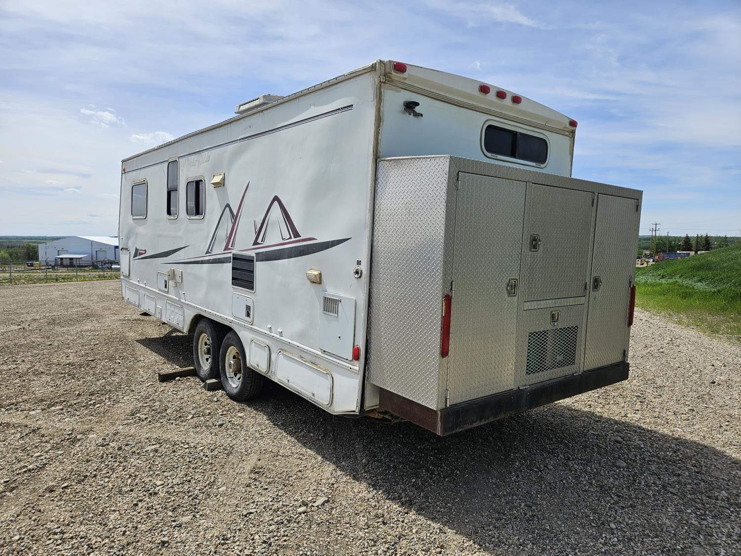 stove, fridge, microwave, full bath, A/C, manual awning, Onan 3600LP generator, spring suspension, electric brakes, rear tool box, dual propane pigs, dual furnace, winter package, hd axles, 235/80R16 tires