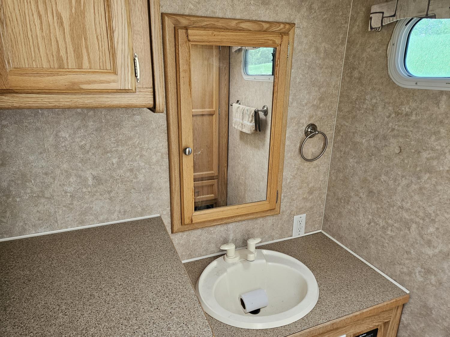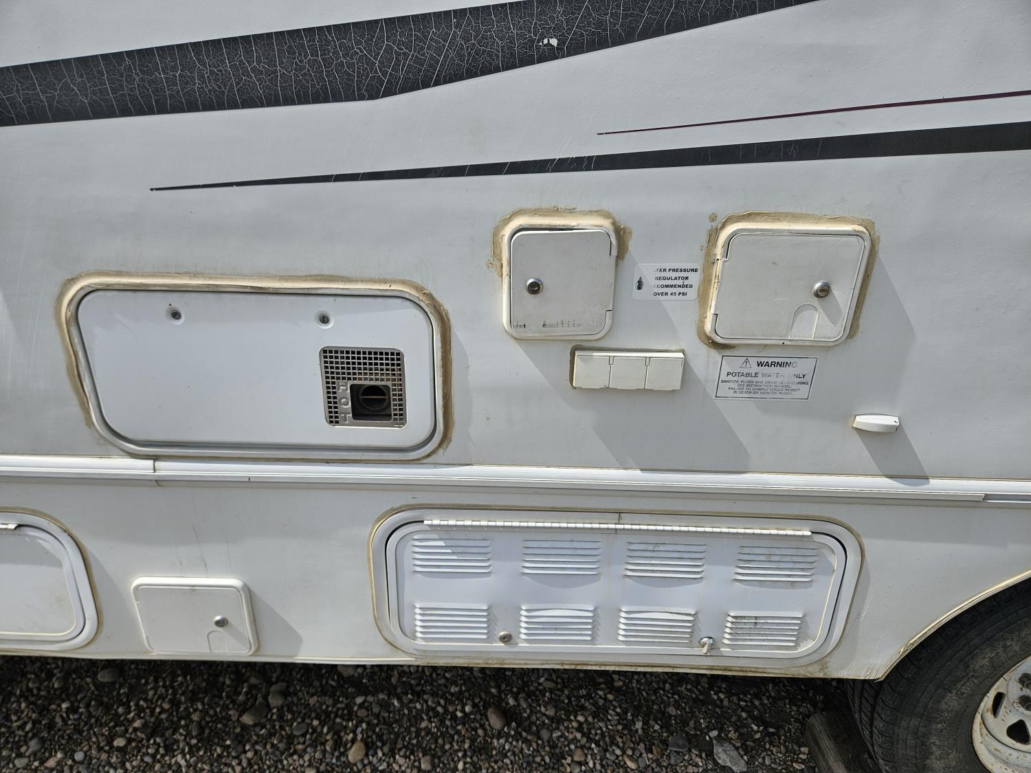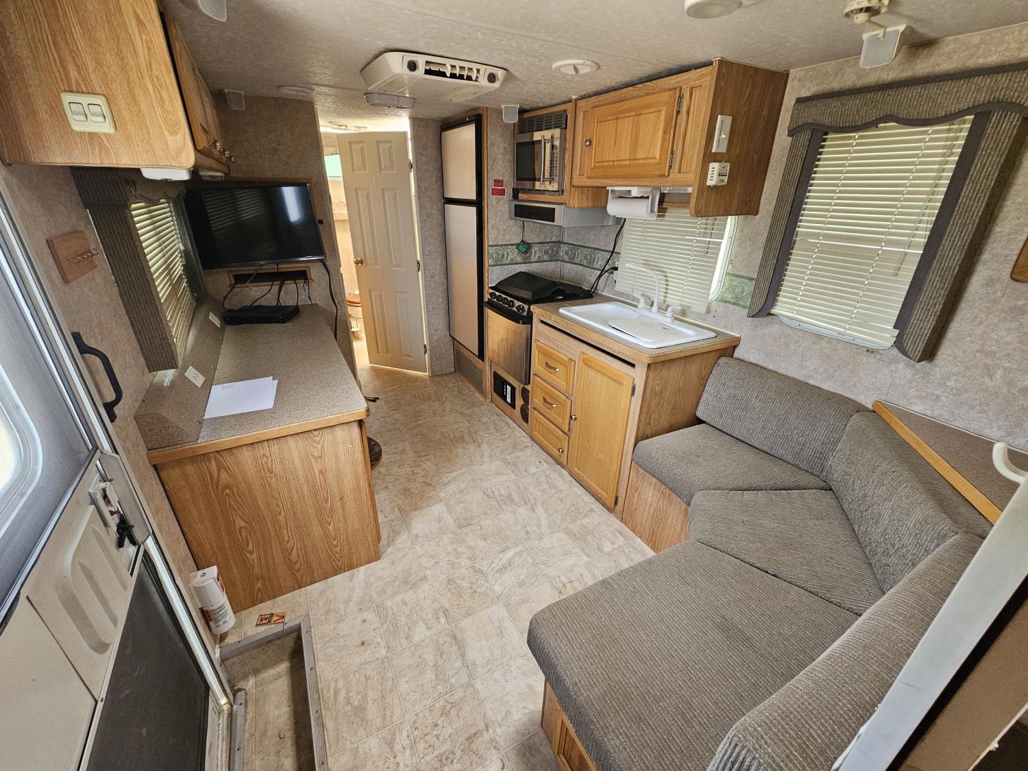 stove, fridge, microwave, full bath, A/C, manual awning, Onan 3600LP generator, spring suspension, electric brakes, rear tool box, dual propane pigs, dual furnace, winter package, hd axles, 235/80R16 tires