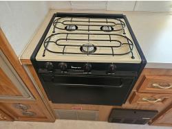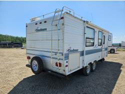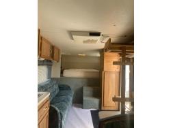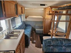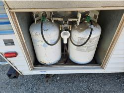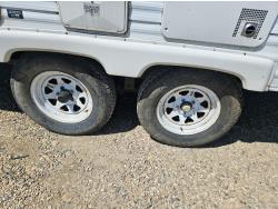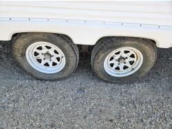 Sleeps 4, stove, fridge, microwave, full bath, A/C, outdoor shower, manual awning, spring suspension, electric brakes, back wall repaired, extra laminate flooring, 205/75R16 tires