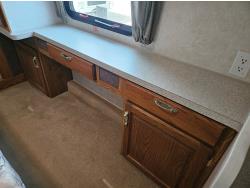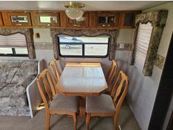 Sleeps 4, stove, fridge, microwave, full bath, master bedroom, A/C, outdoor shower, 2 slides, manual awning, power levelling jacks, spring suspension, electric brakes, chairs, dinette, tv, wired for Onan generator , 235/85R16 tires
