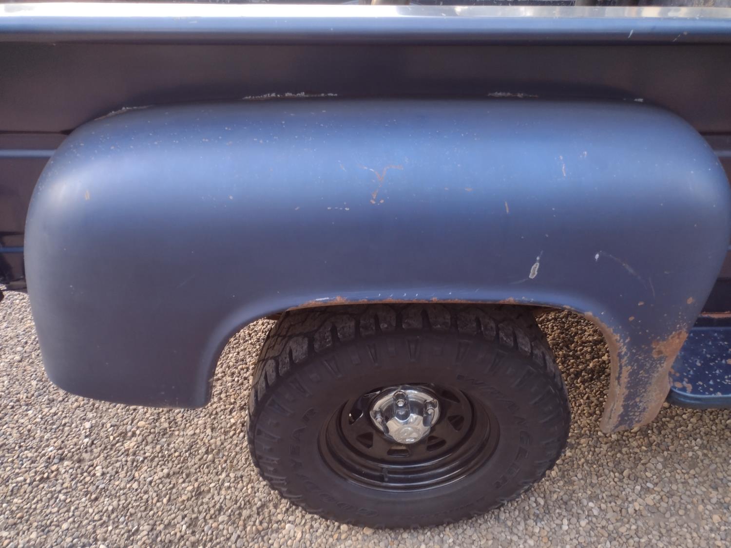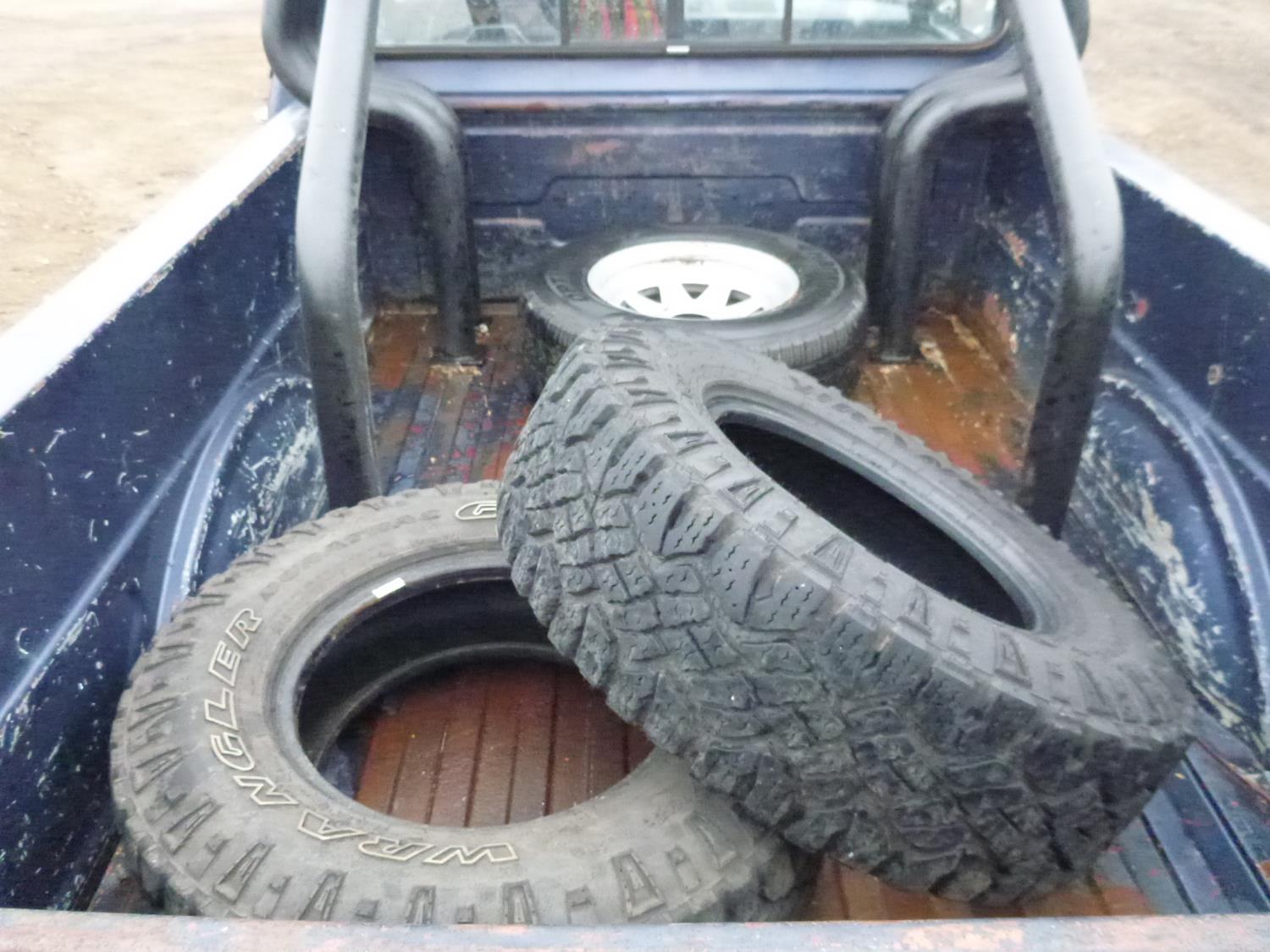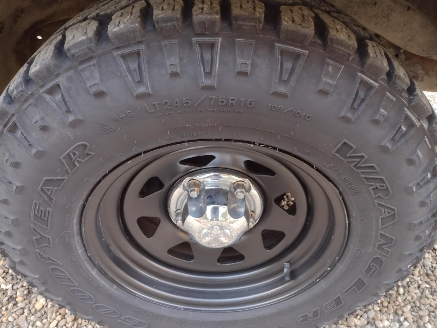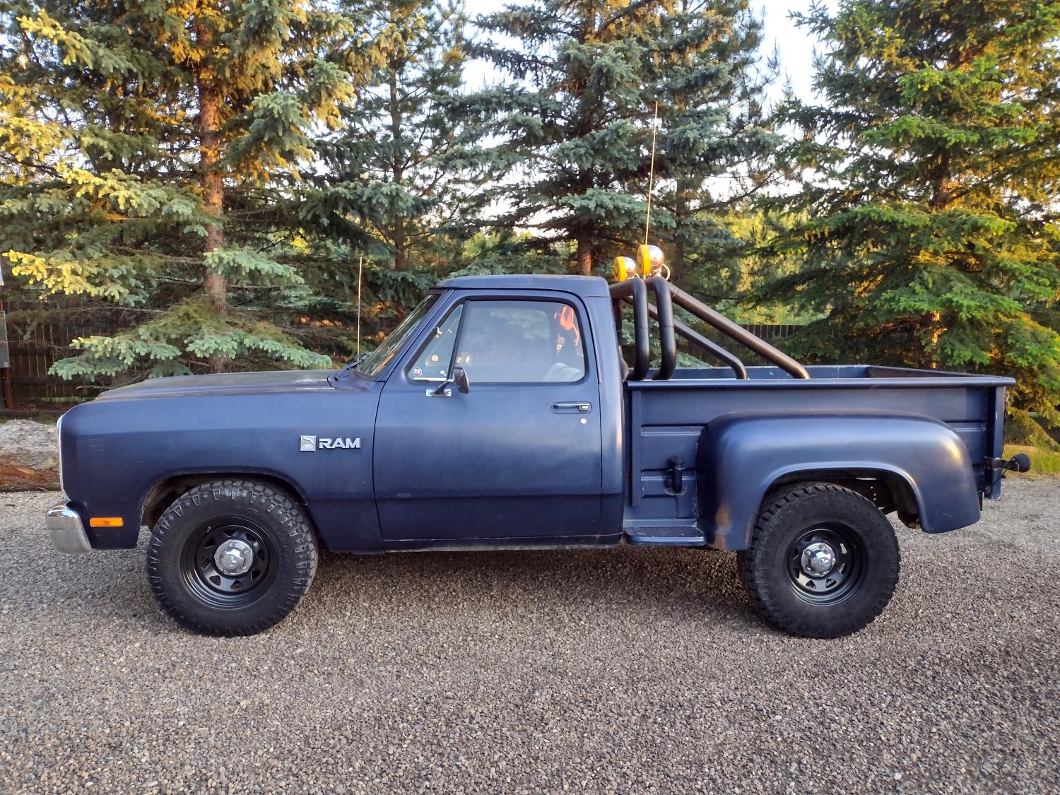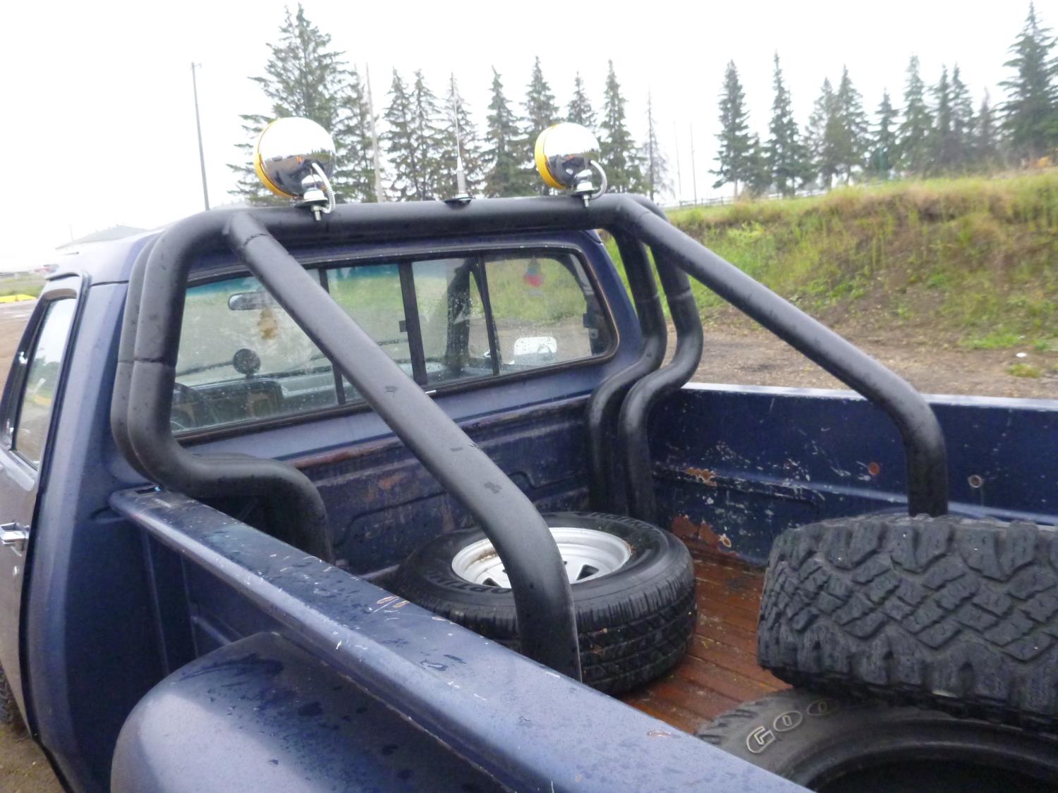 6 cylinder, 4 speed manual transmission, 6 1/2 ft box, factory rear sliding window, factory sport mirrors, roll bar easily removed, LT245/75R16 tires