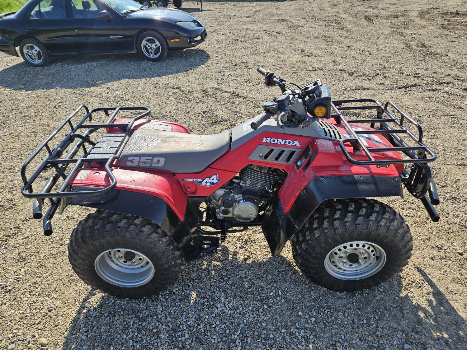 350 cc engine, manual transmission, reverse, hitch, front and rear racks, front winch, new battery and carb, 24X9-11 front tires, 24X9-11 rear tires