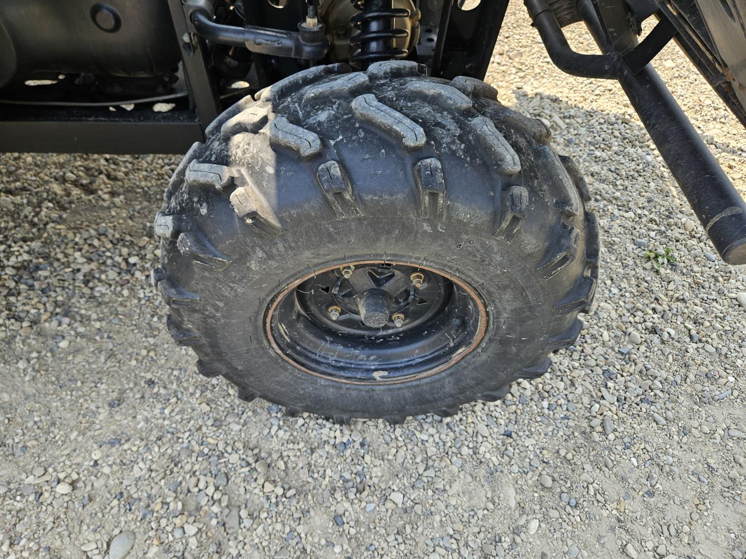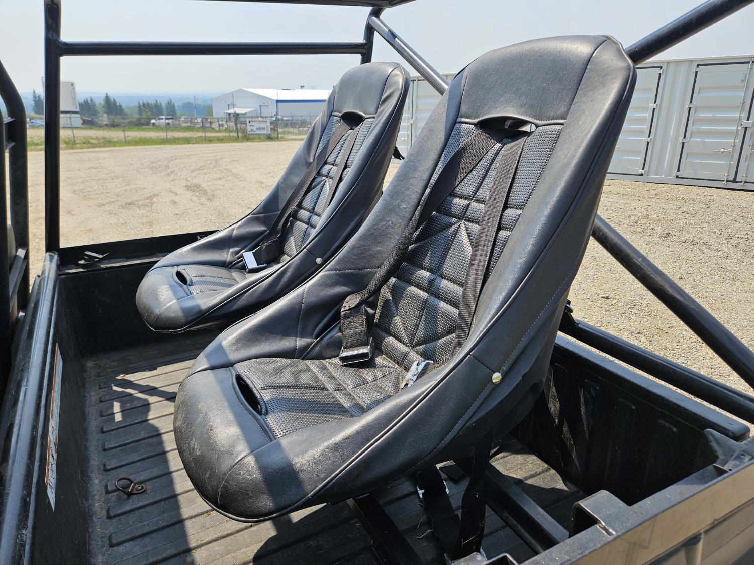 700 cc fuel injected water cooled engine, automatic transmission, Hi/Lo range, reverse, open canopy, 5 passengers, windshield, 72 inch front blade, front winch, electric dump box, receiver hitch, independent suspension, rear box roll cage, extra rear seats w/ 4 point harness, tilt steering, new battery, new front shocks, 4wd has intermediate issue, 26X8.00R12 front tires, 26X10.00R12 rear tires