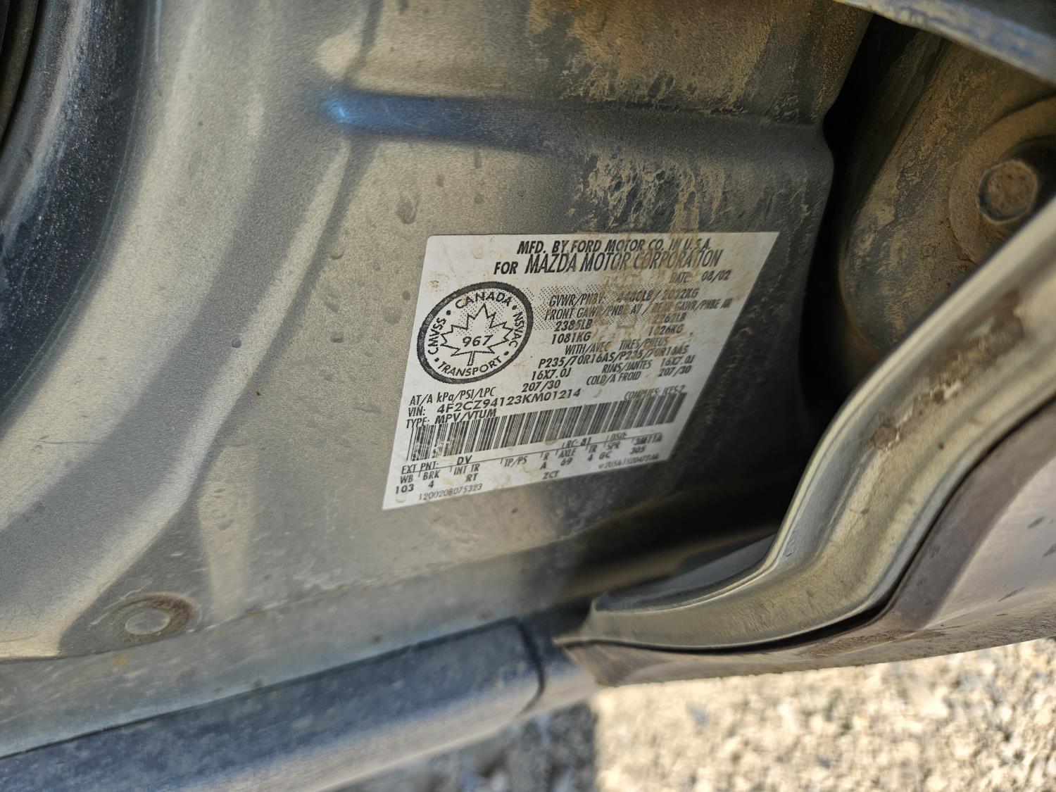 719 2003 Mazda Tribute 4X4 Sport Utility Vehicle