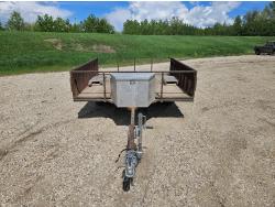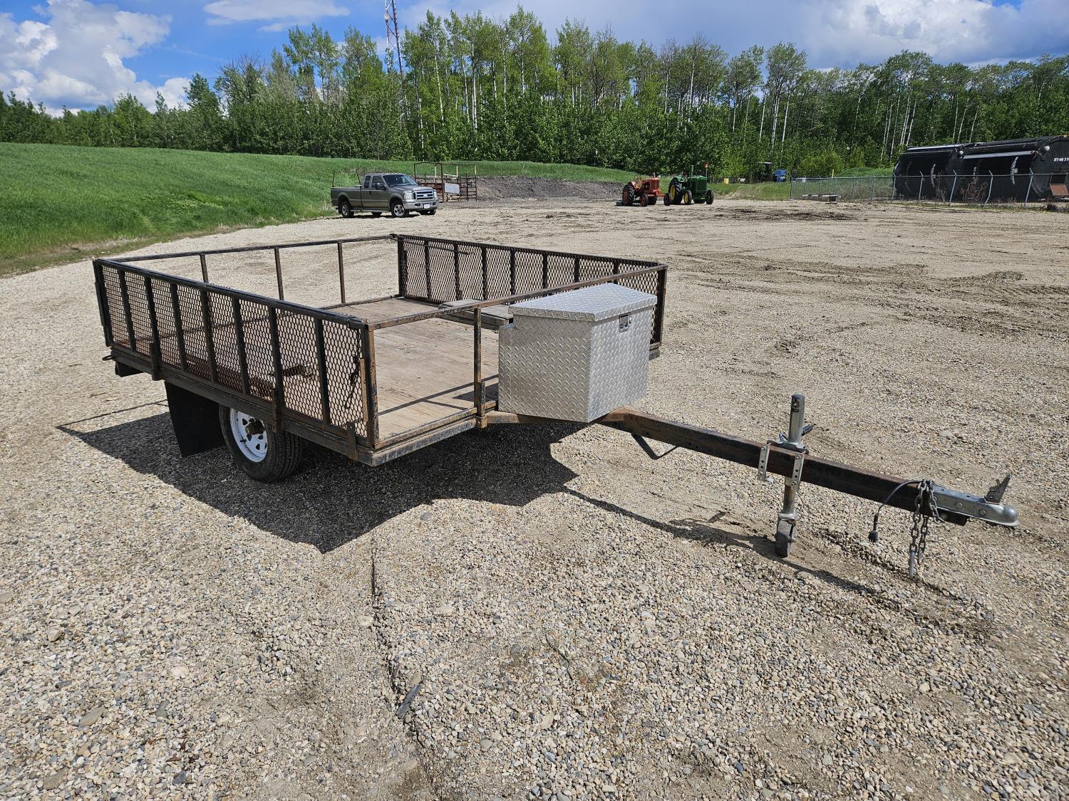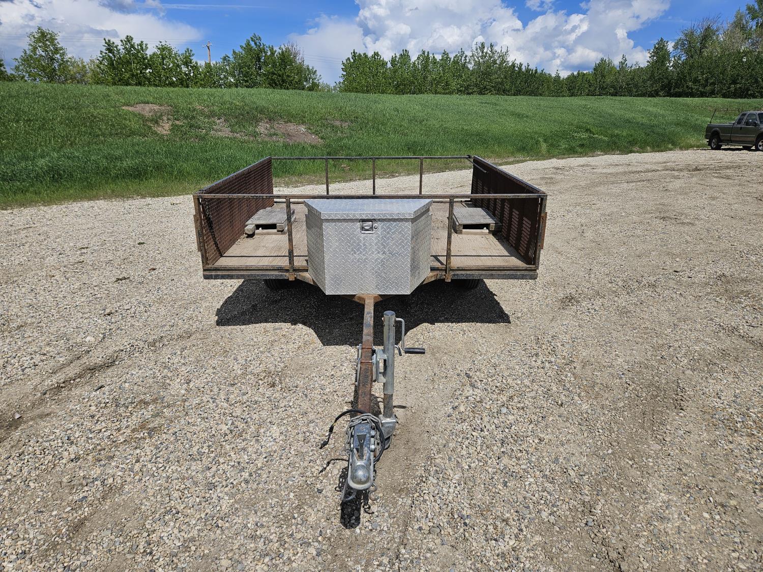 96 inch wide deck, wood deck, ball hitch, tool / storage box, 175/80R13 tires