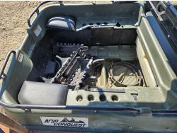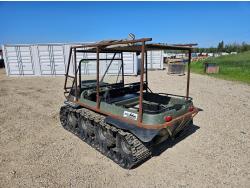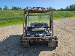 Kawasaki 20 HP gas engine, hydrostatic transmission with hi/lo reverse, front mount winch, twist throttle, enclosure canopy, tracks, spare track parts, receiver hitch, 22x10.00-8 tires