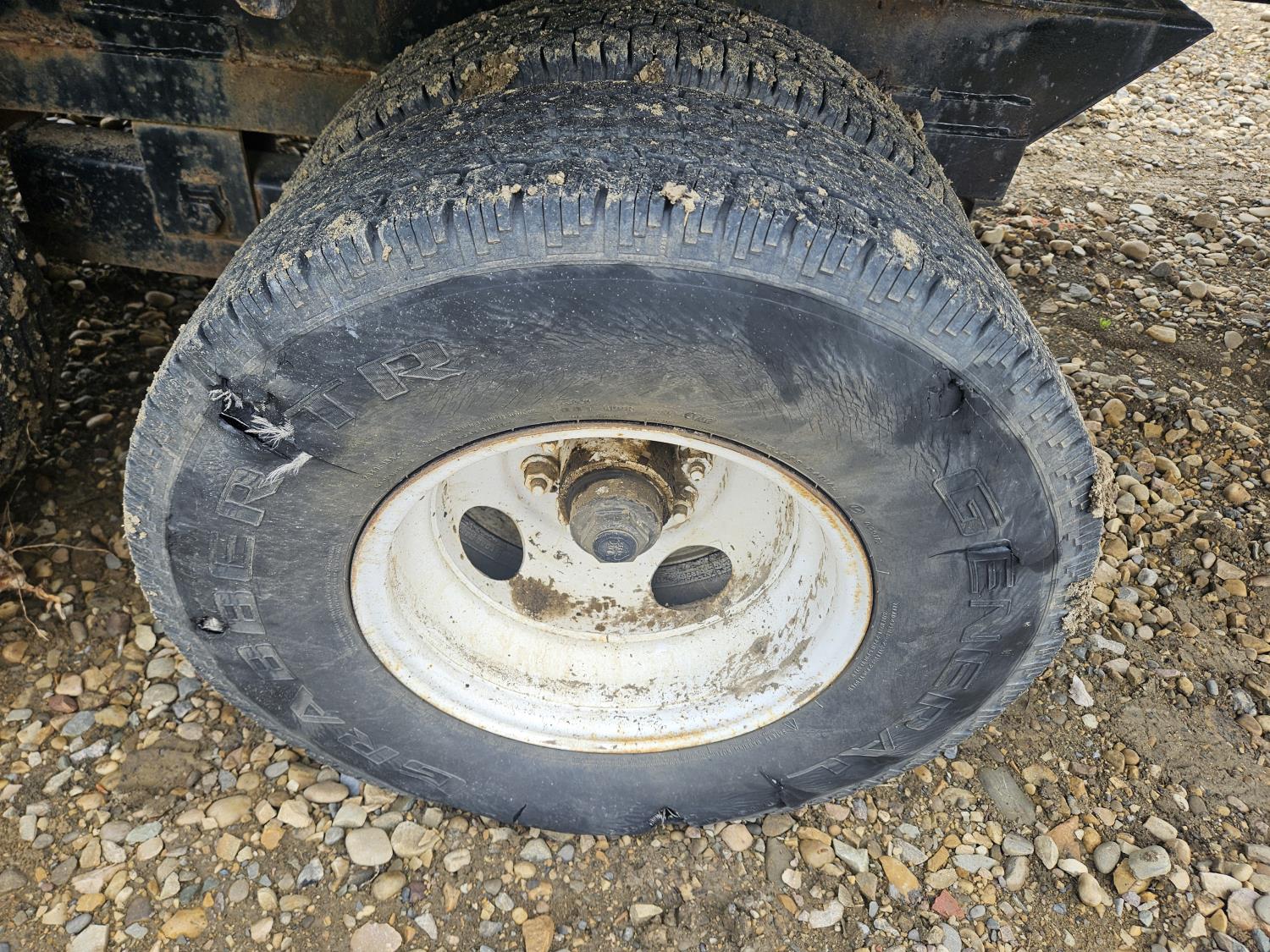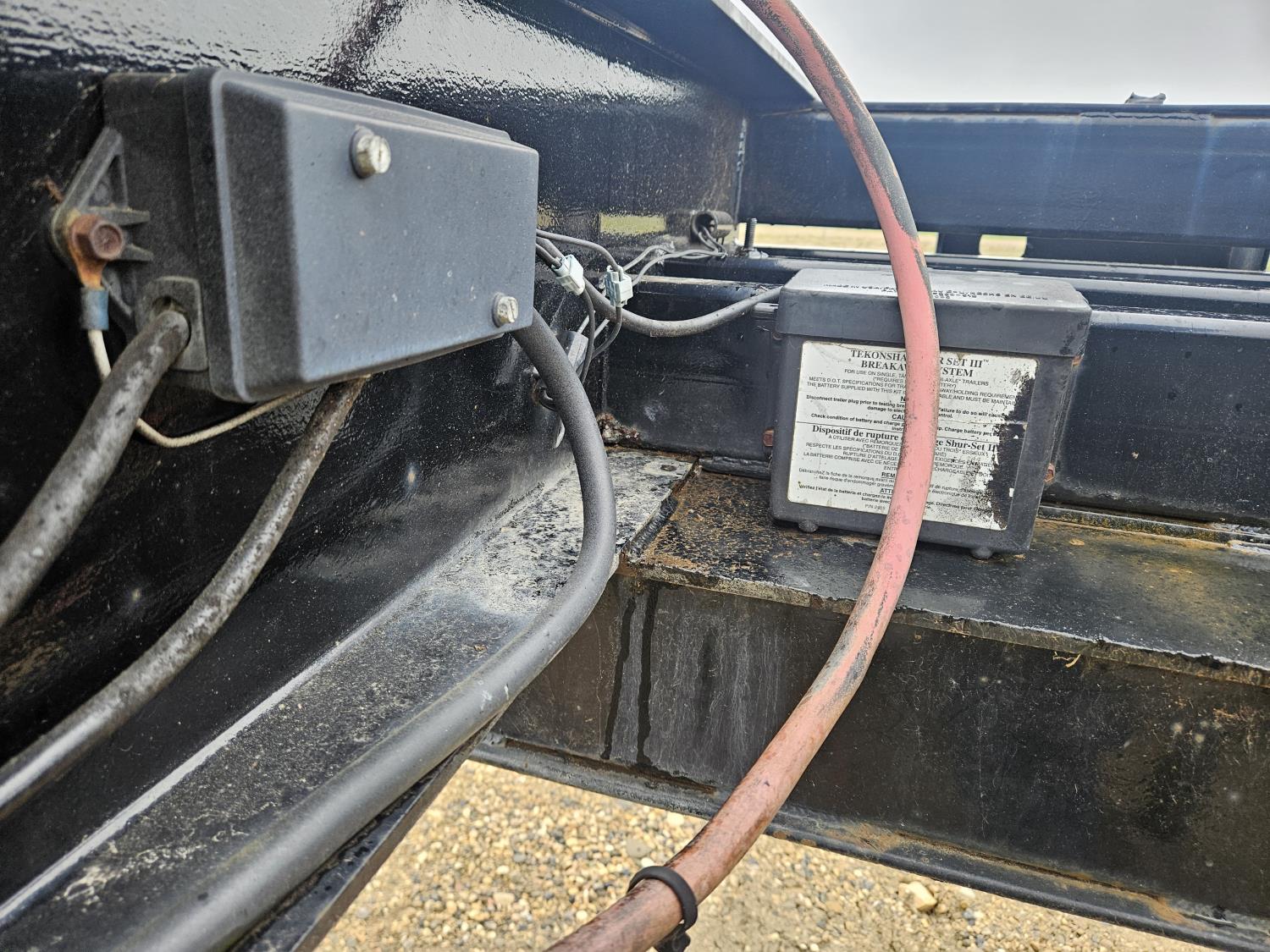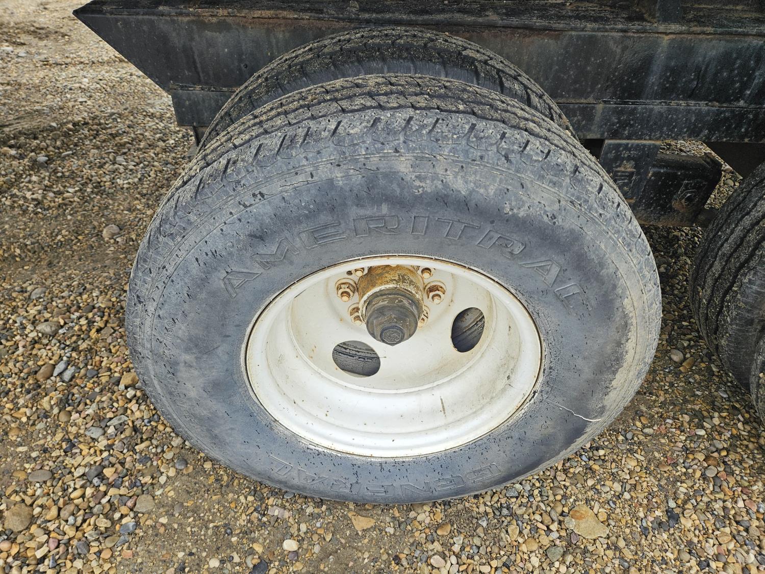 96 inch wide deck, wood deck, electric brakes, spring suspension, rub rails, stake pockets, 235/85R16 tires
