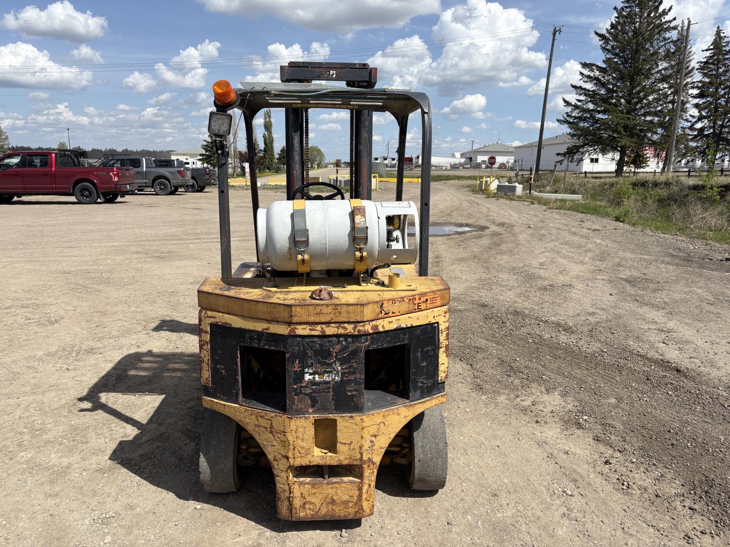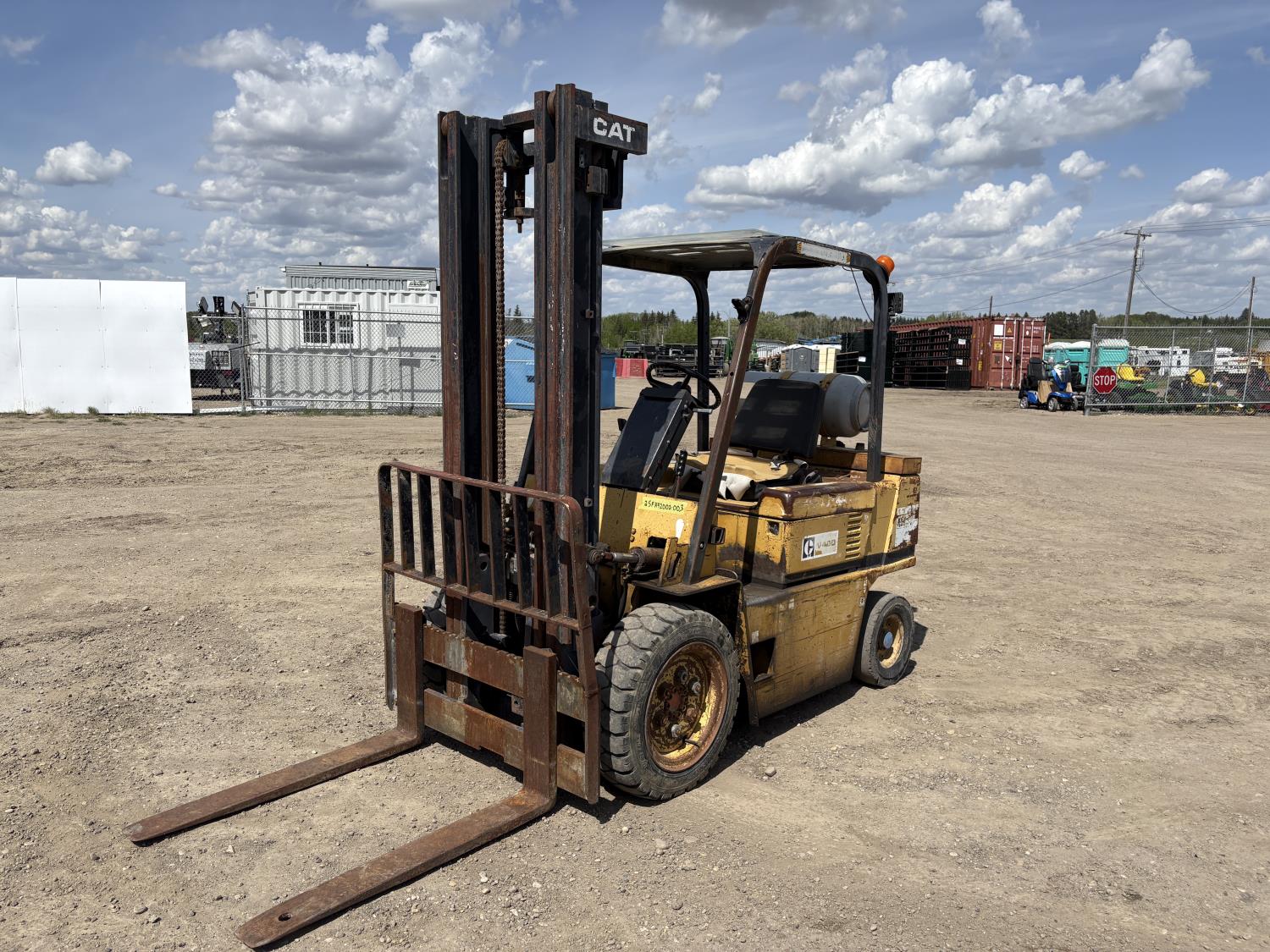 Open station with ROPS, propane, 1 speed hydro transmission, 2 mast stages, 40 inch pallet forks, 28X9-15 front tires, 8.00-9 rear tires