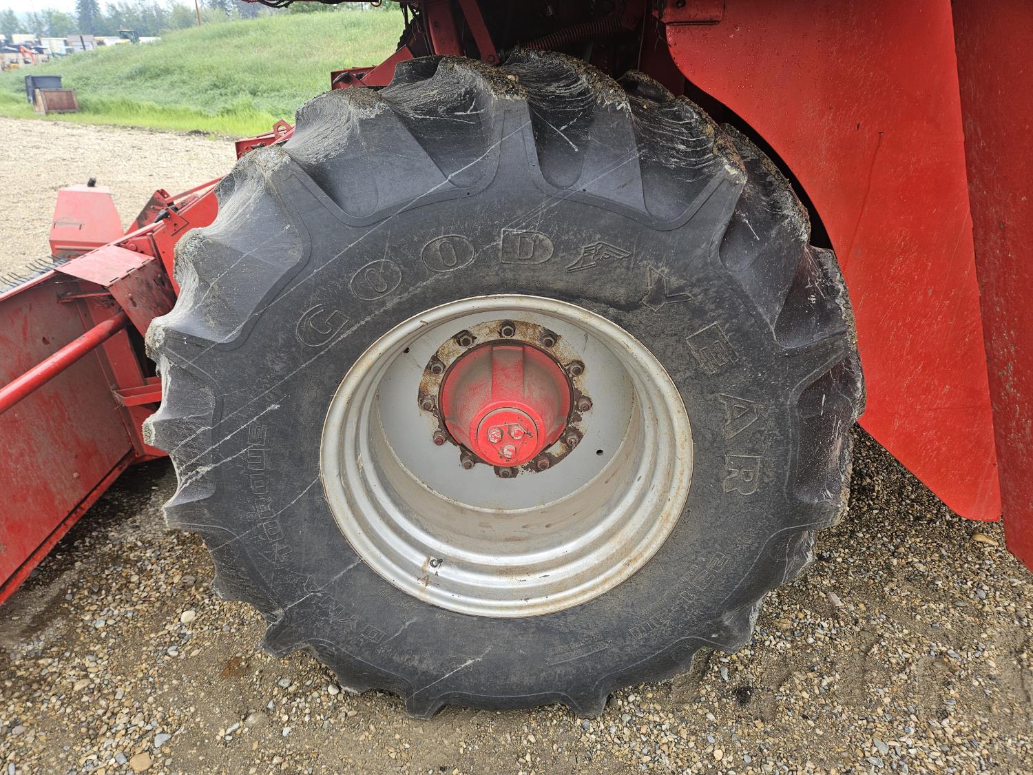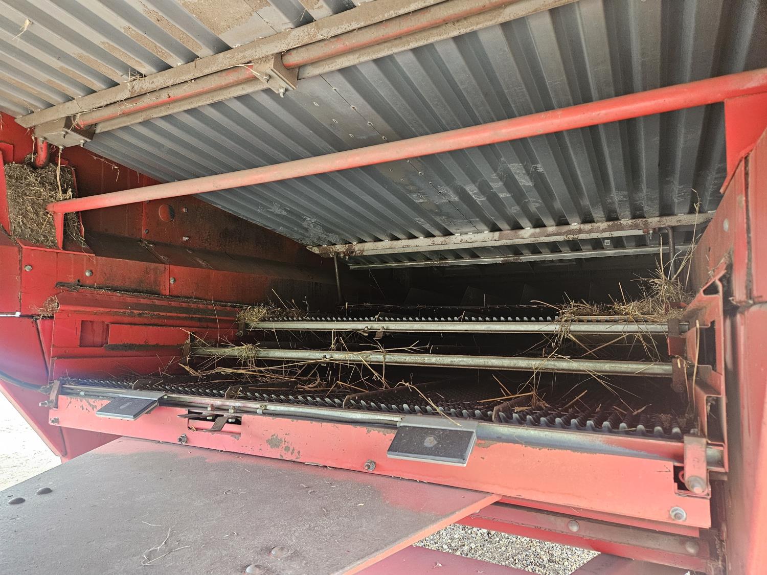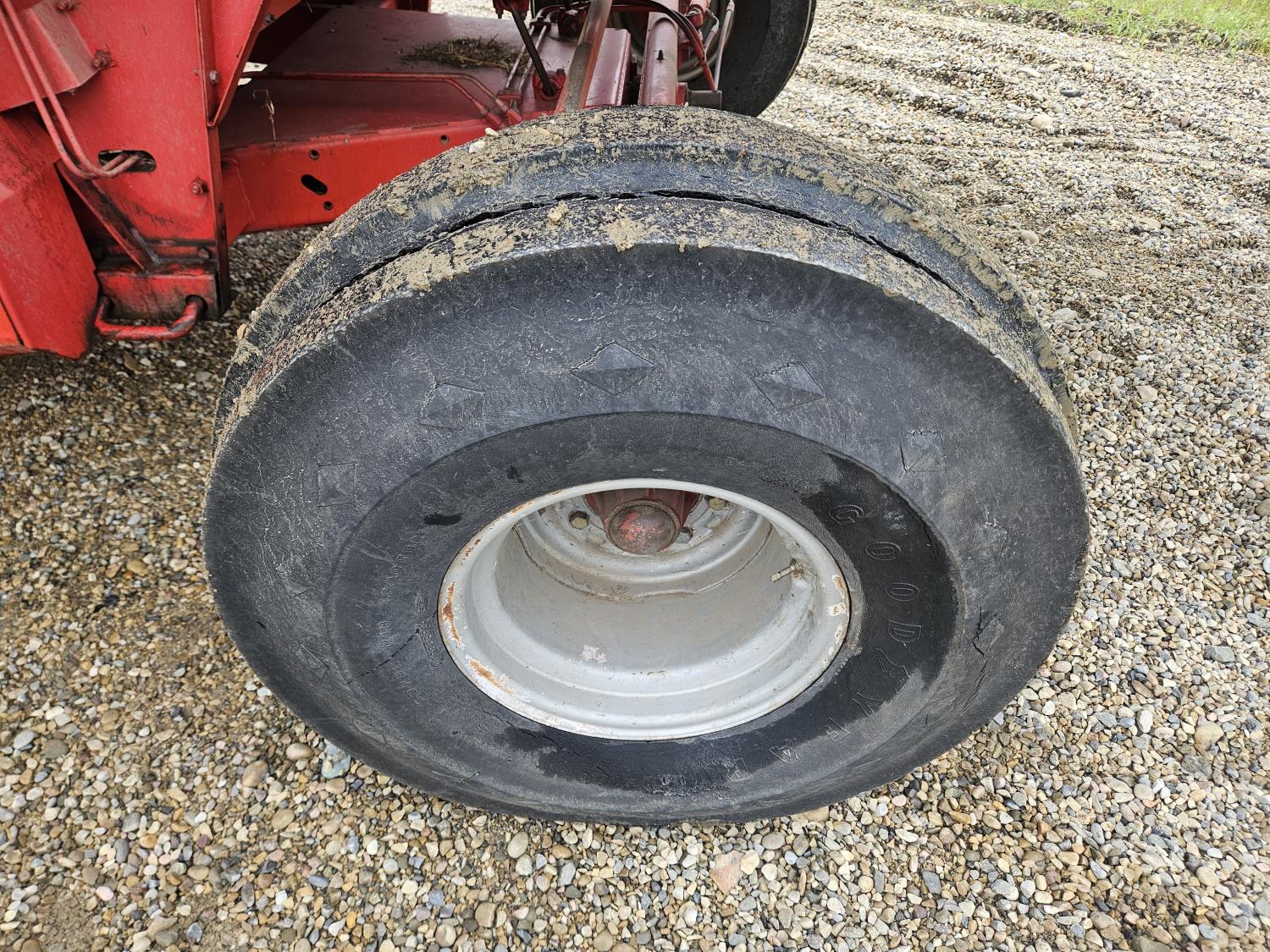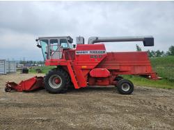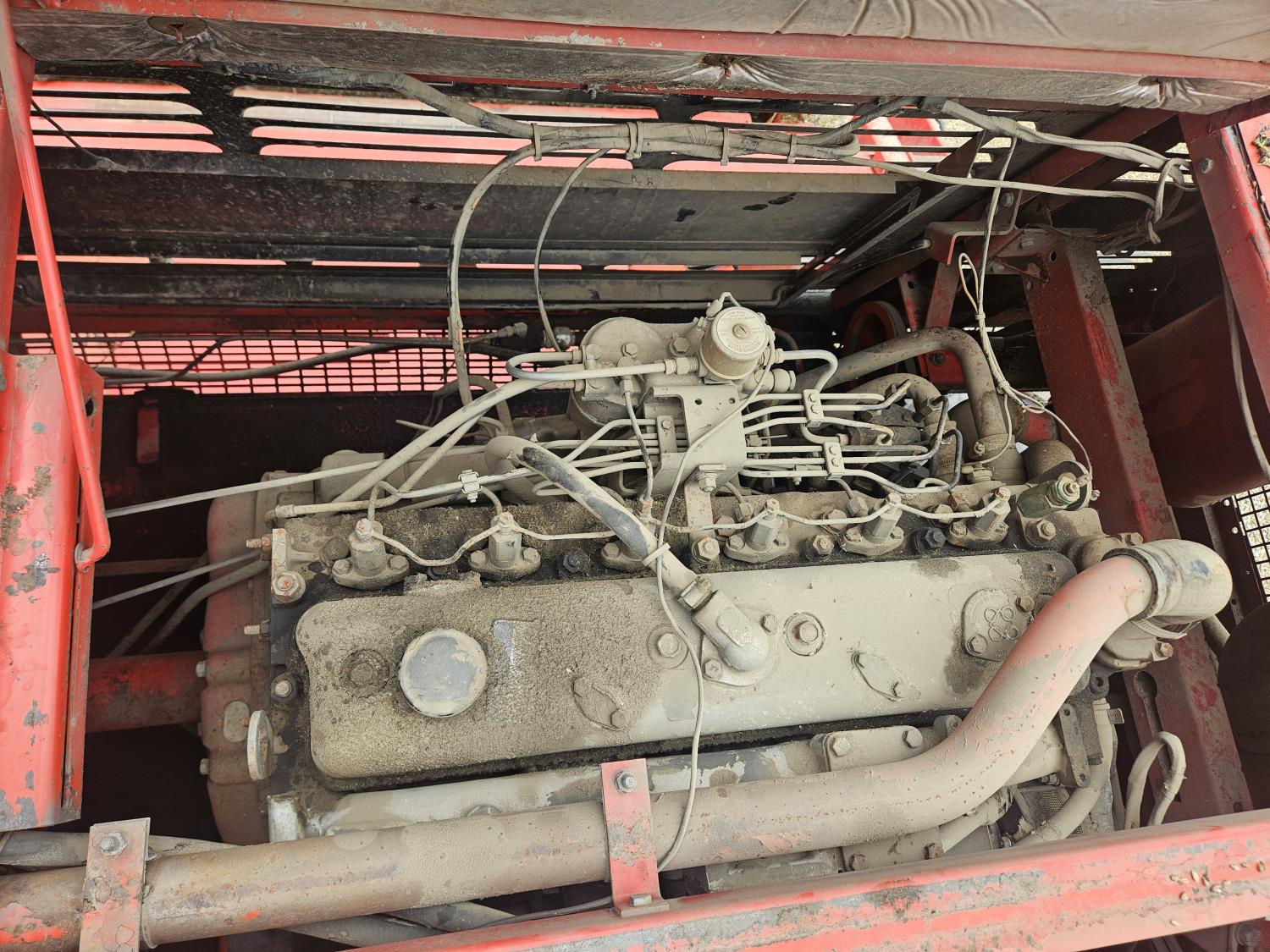 Melroe 388 10 ft pick-up header, Perkins 6 cylinder diesel engine, 2 speed Hi/Lo hydrostatic transmission, variable speed reel, chopper, A/C, radio, 23.1-30 front tires, 14-16.1 rear tires