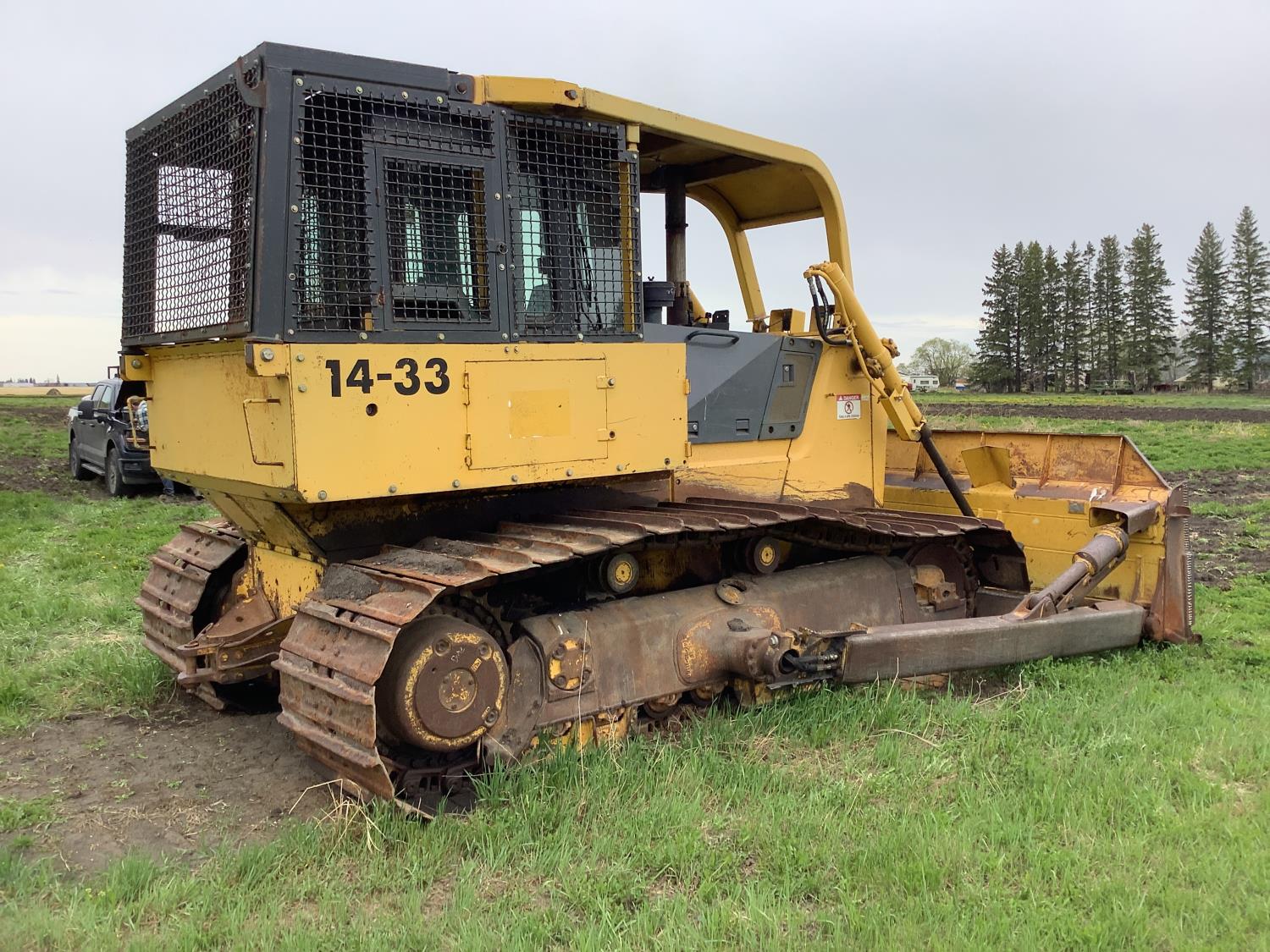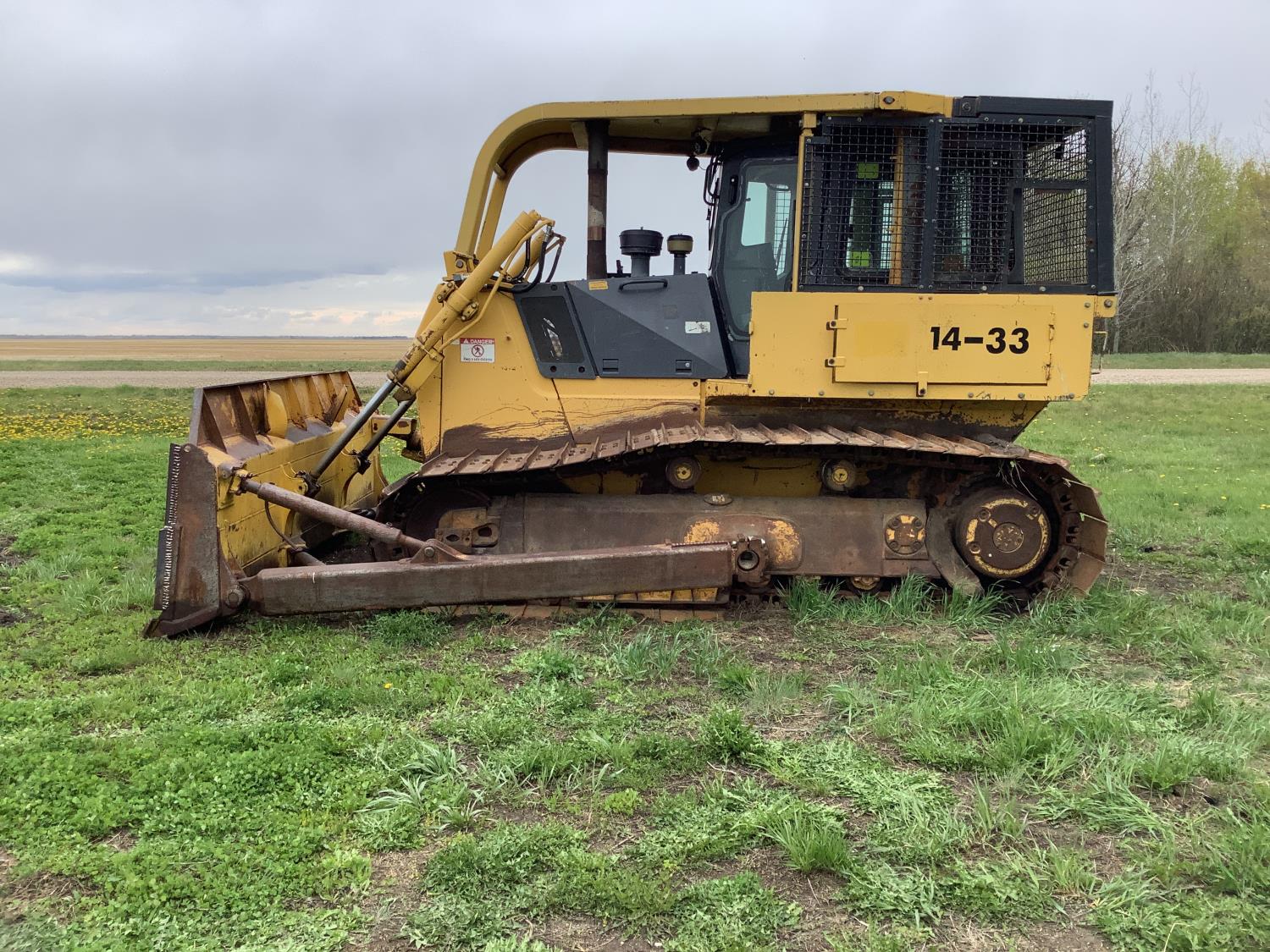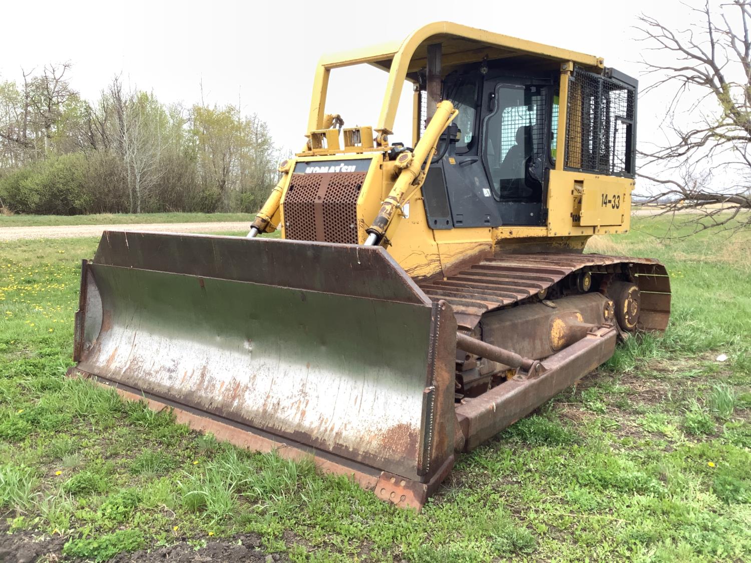 Enclosed cab, A/C, brush sweeps, cab screens, heat, radio, side guards, dozer, drawbar, hydraulic tilt