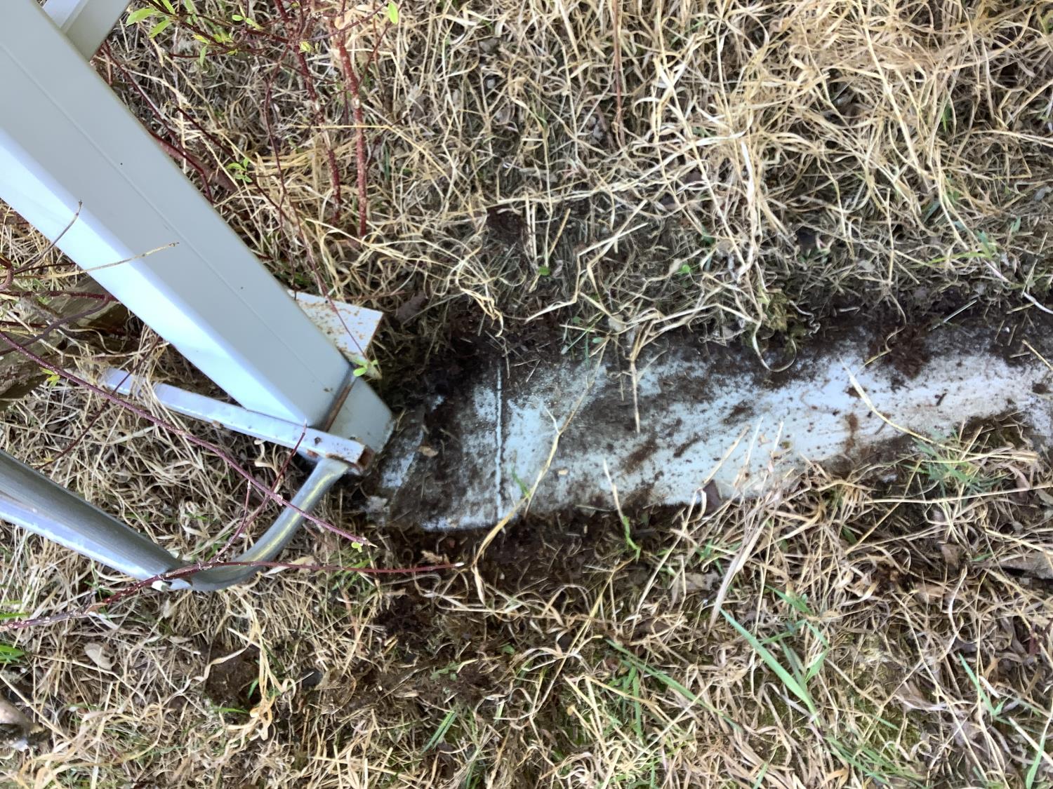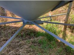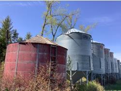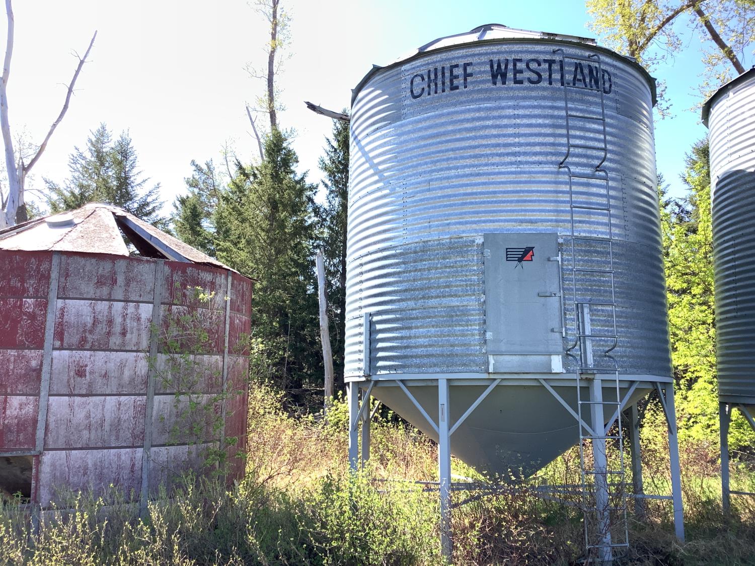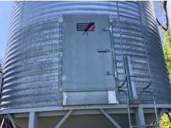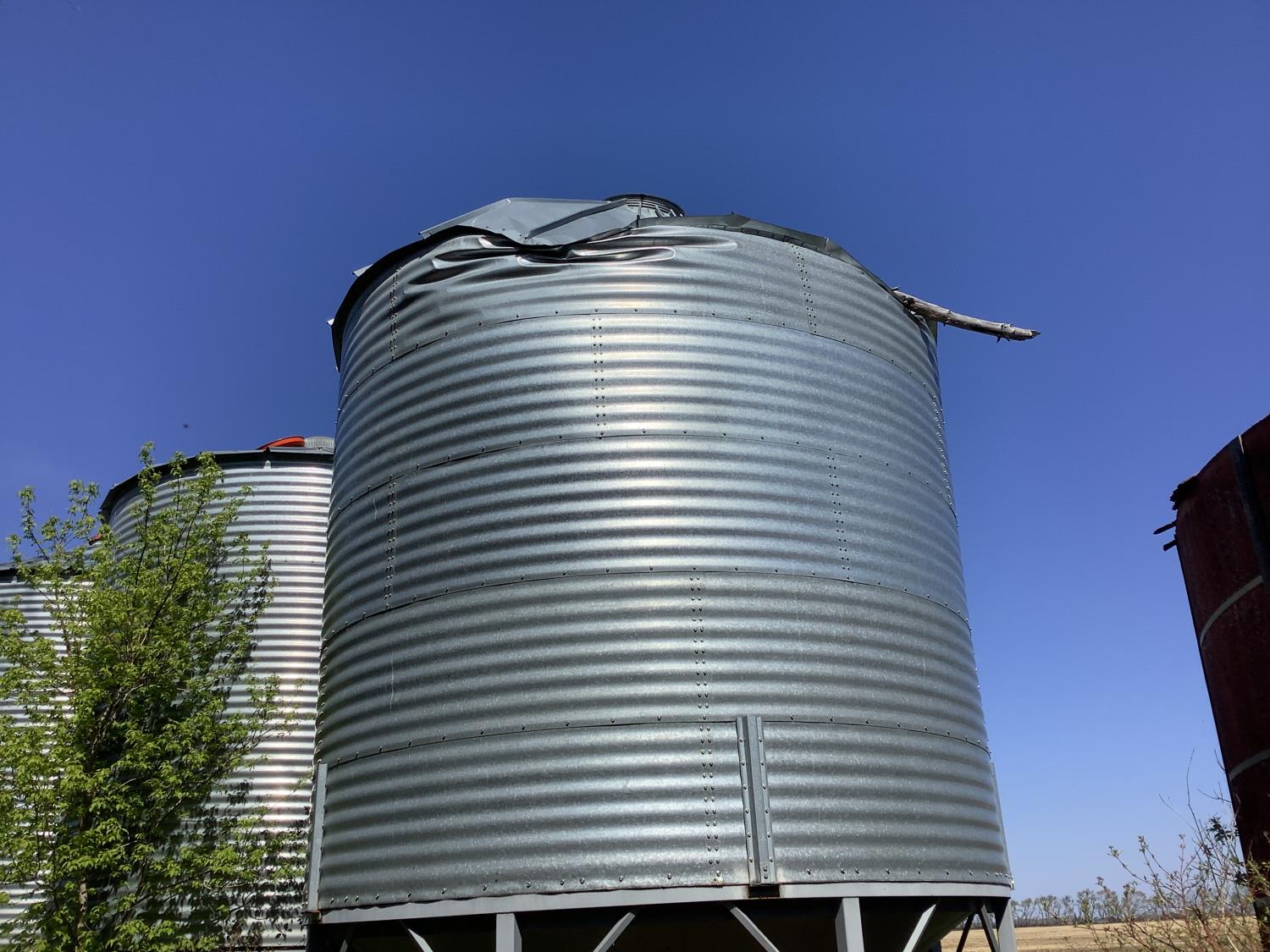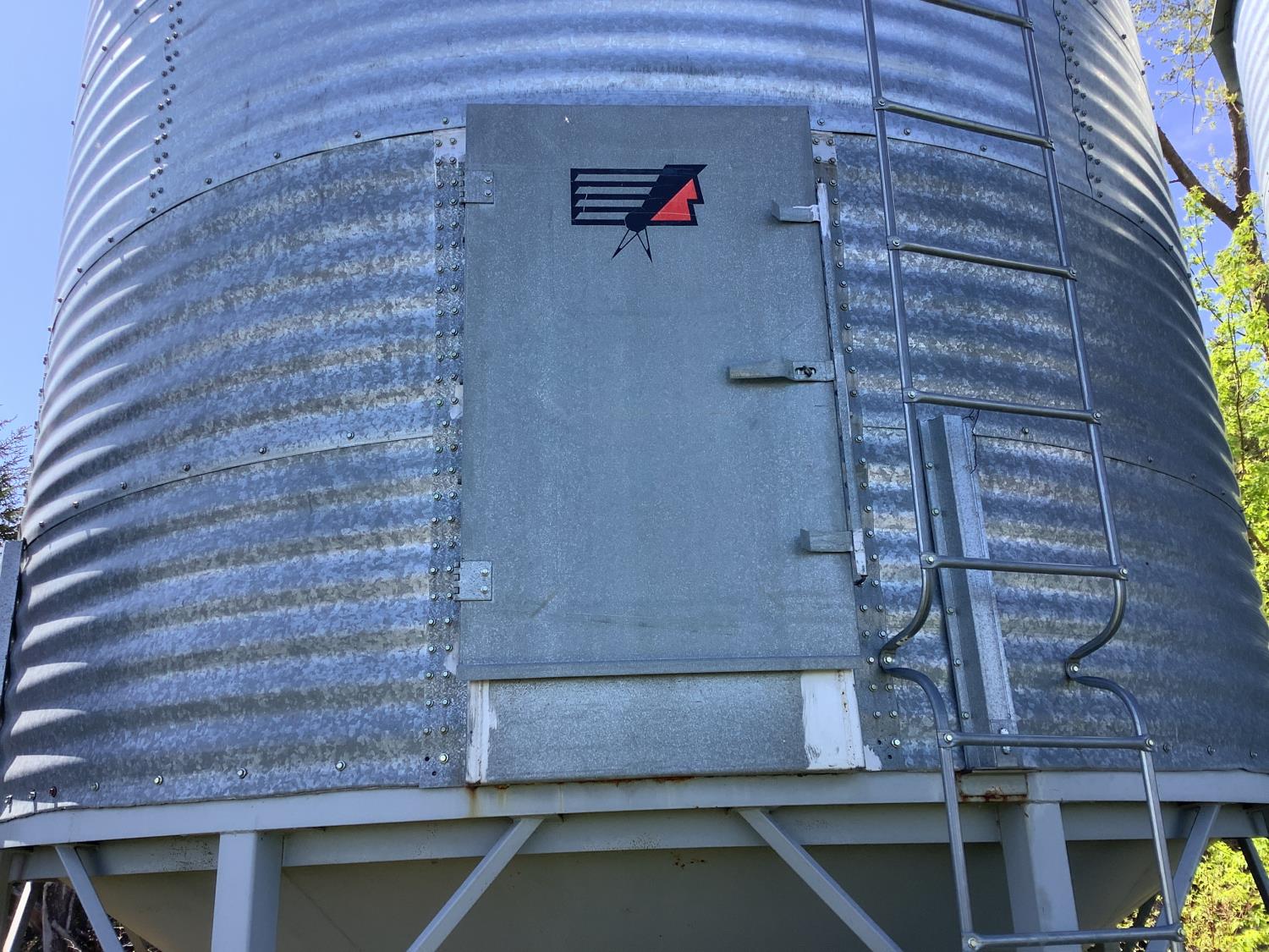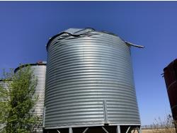 single steel foundation ring, ladder, Bin # 1. Note: roof damage as seen in pictures