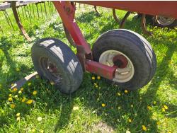12 inch spacing, spikes, spring tooth harrows, walking axles on main frame, walking axles on wings, 9.5L-14 main frame tires, 7.60-15 wing tires