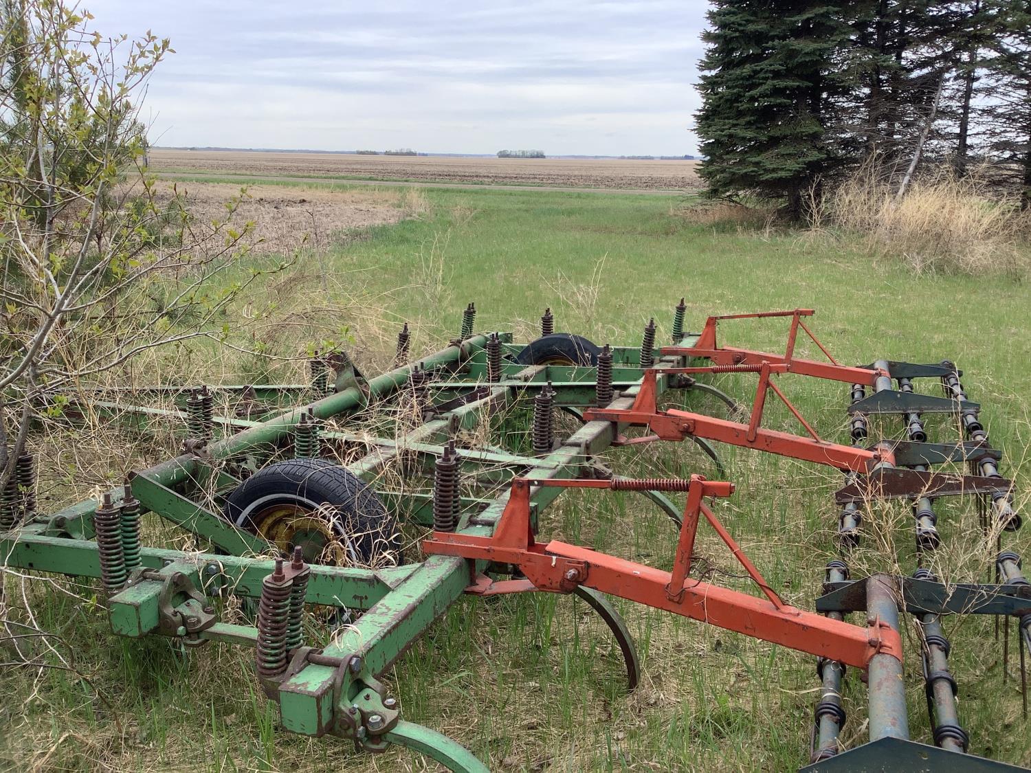 The cultivator will be moved and locked in transport before the sale. Note tires are old. This deep tillage cultivator is in good shape.