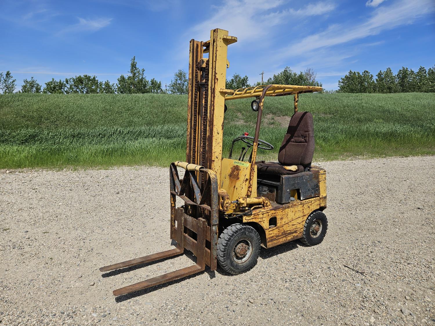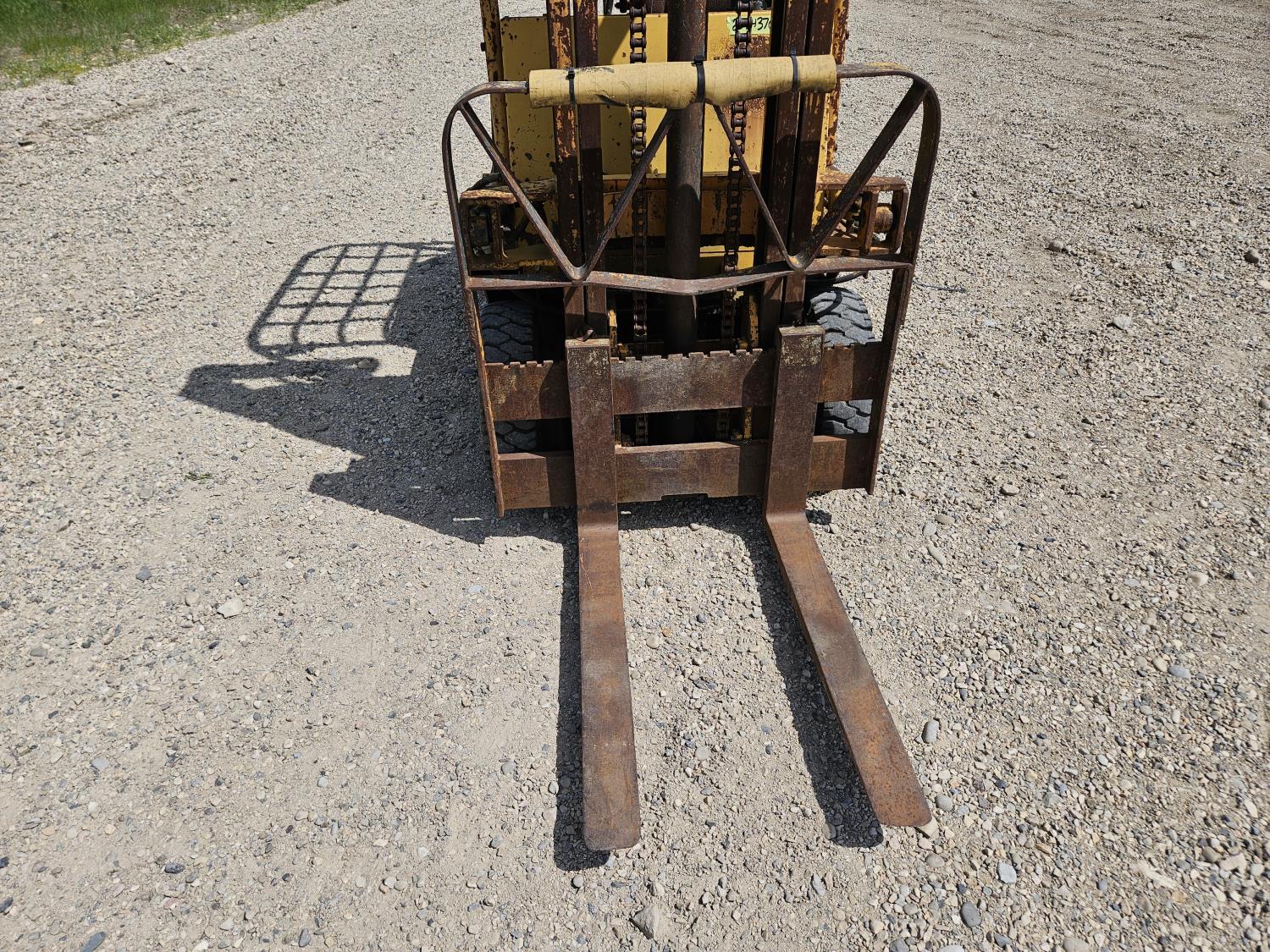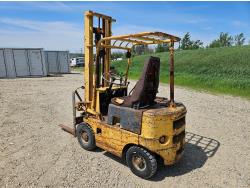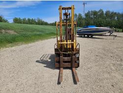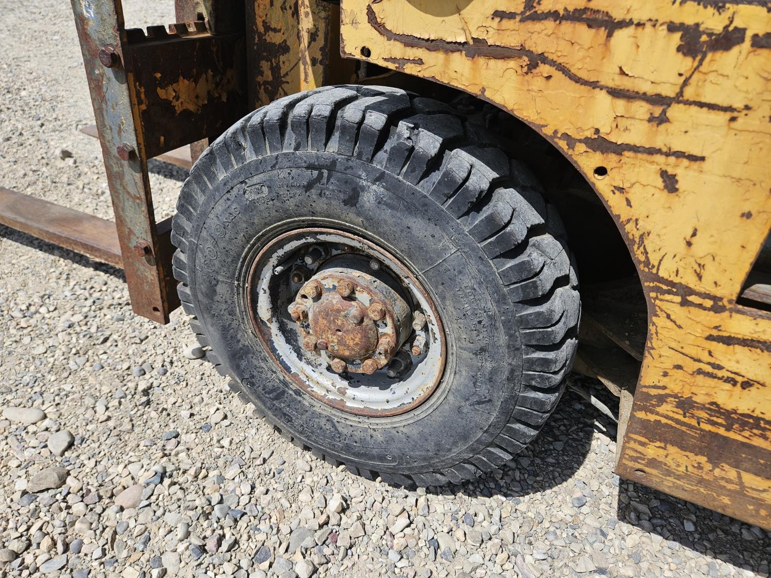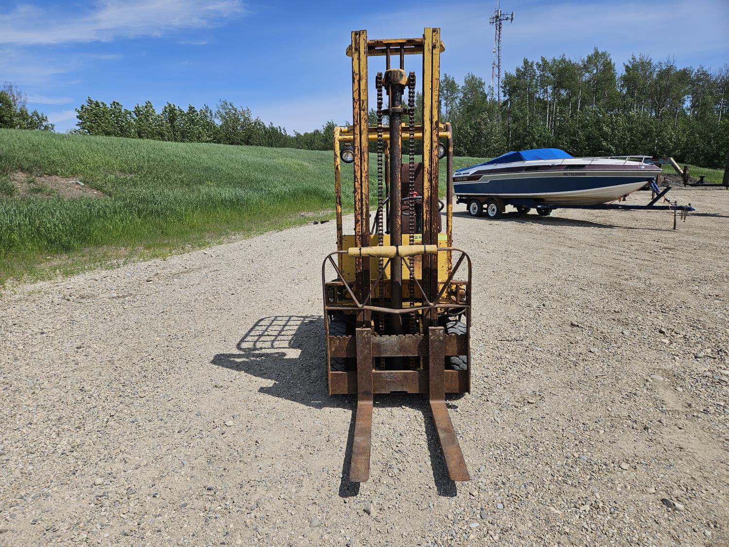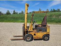 Open station with ROPS, gas, 2 speed manual transmission, 12 ft max lift height, 2 mast stages, 46 inch pallet forks, 6-9.00 front tires, 5-8.00 rear tires