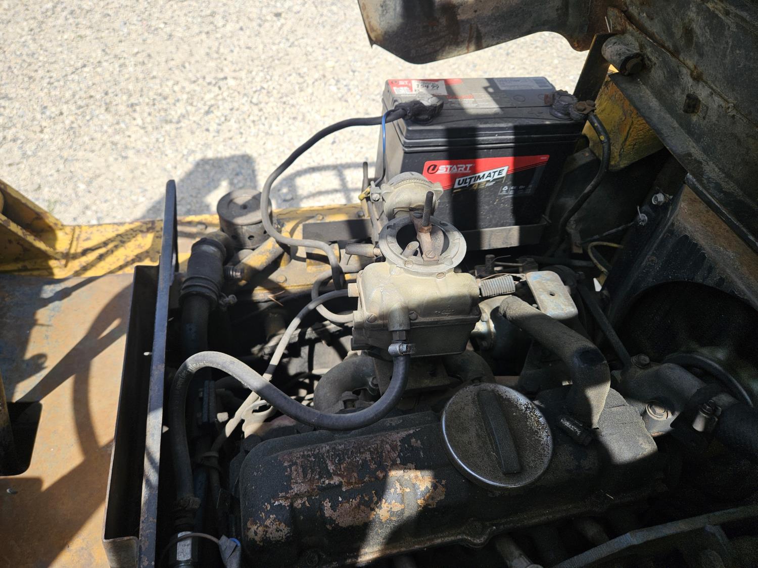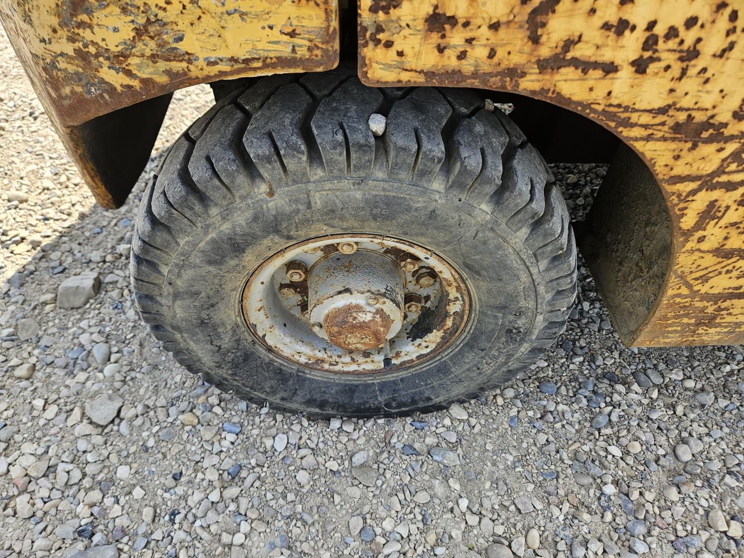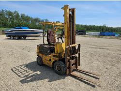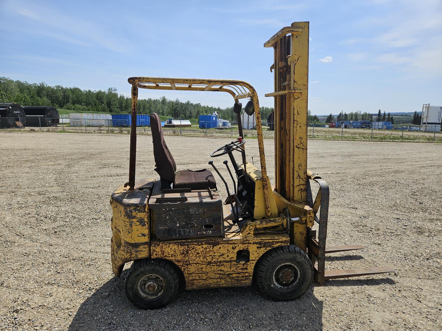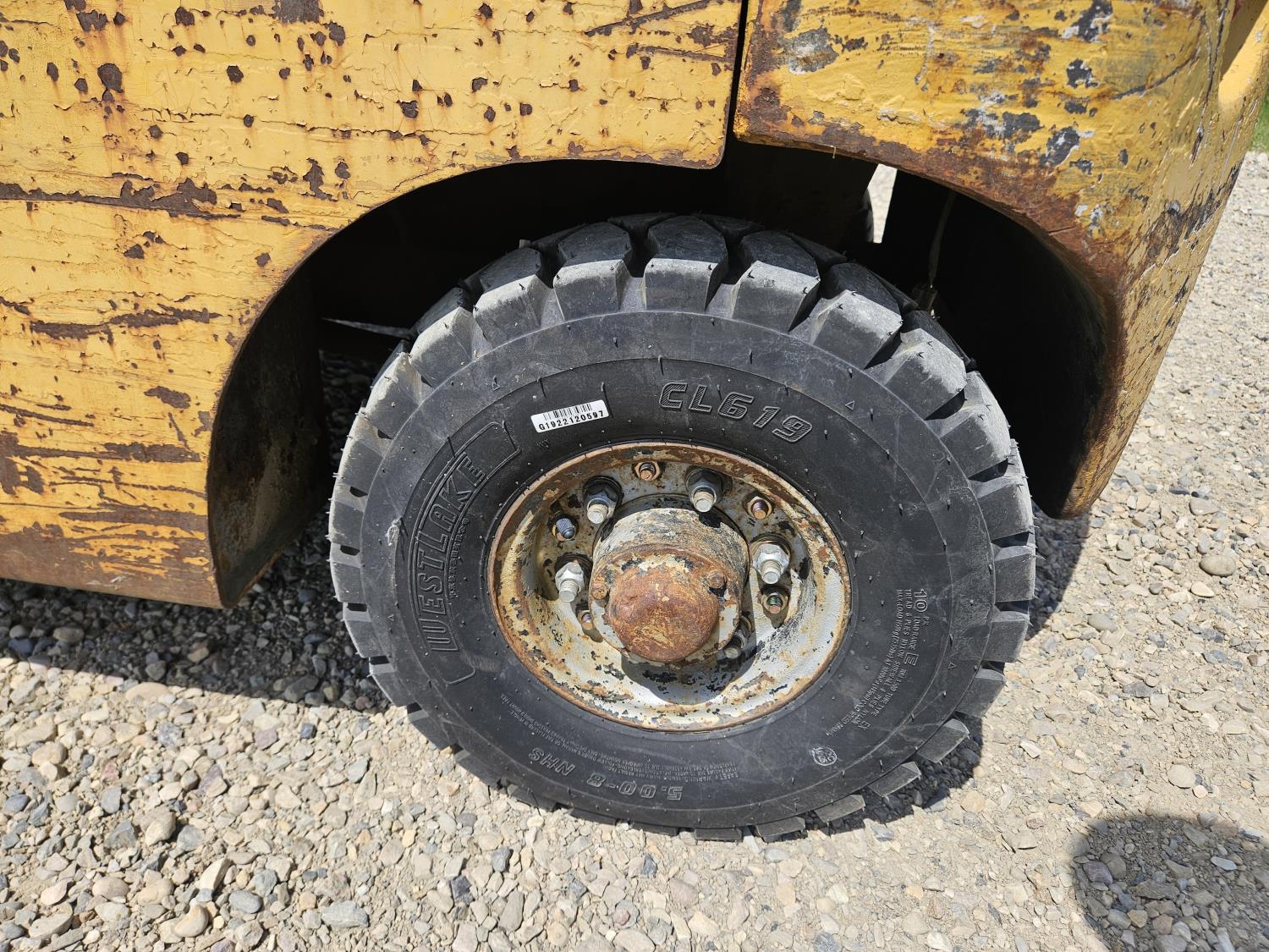 Open station with ROPS, gas, 2 speed manual transmission, 12 ft max lift height, 2 mast stages, 46 inch pallet forks, 6-9.00 front tires, 5-8.00 rear tires